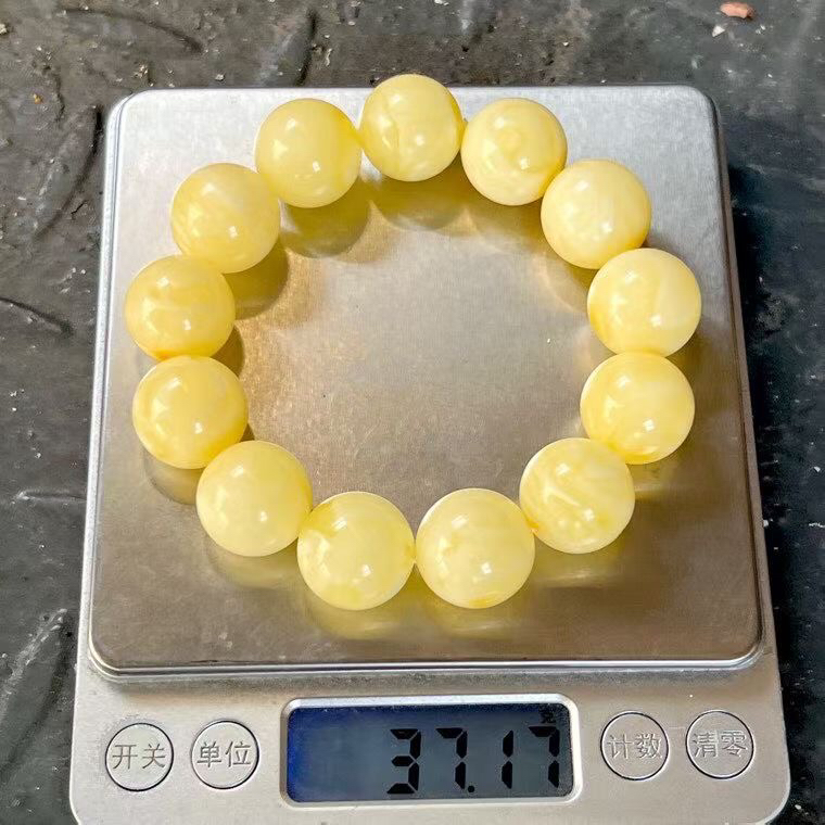 【青山特惠】17.4mm*13颗 精品原矿俄料 满蜡白花圆珠蜜蜡手串,37.17g m256