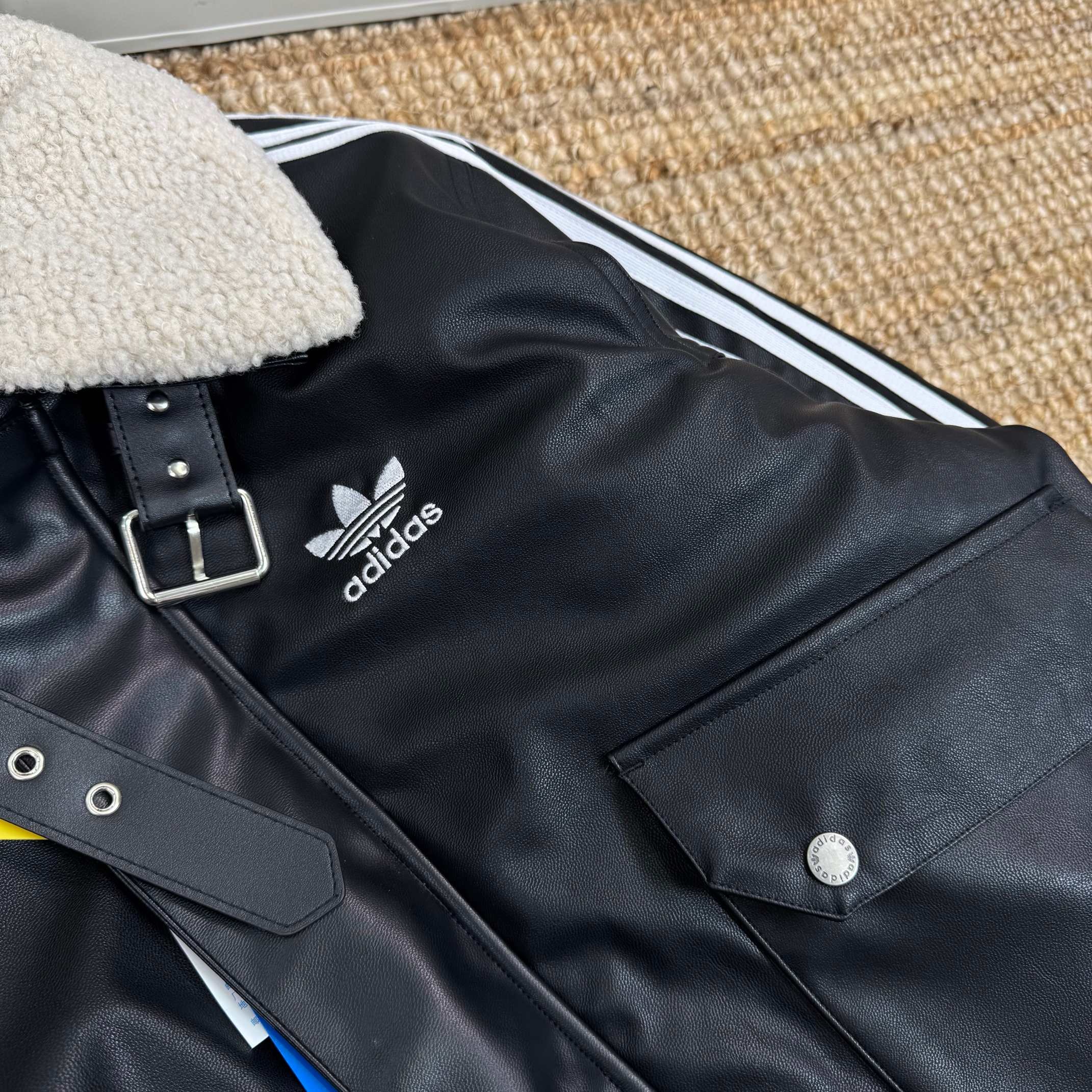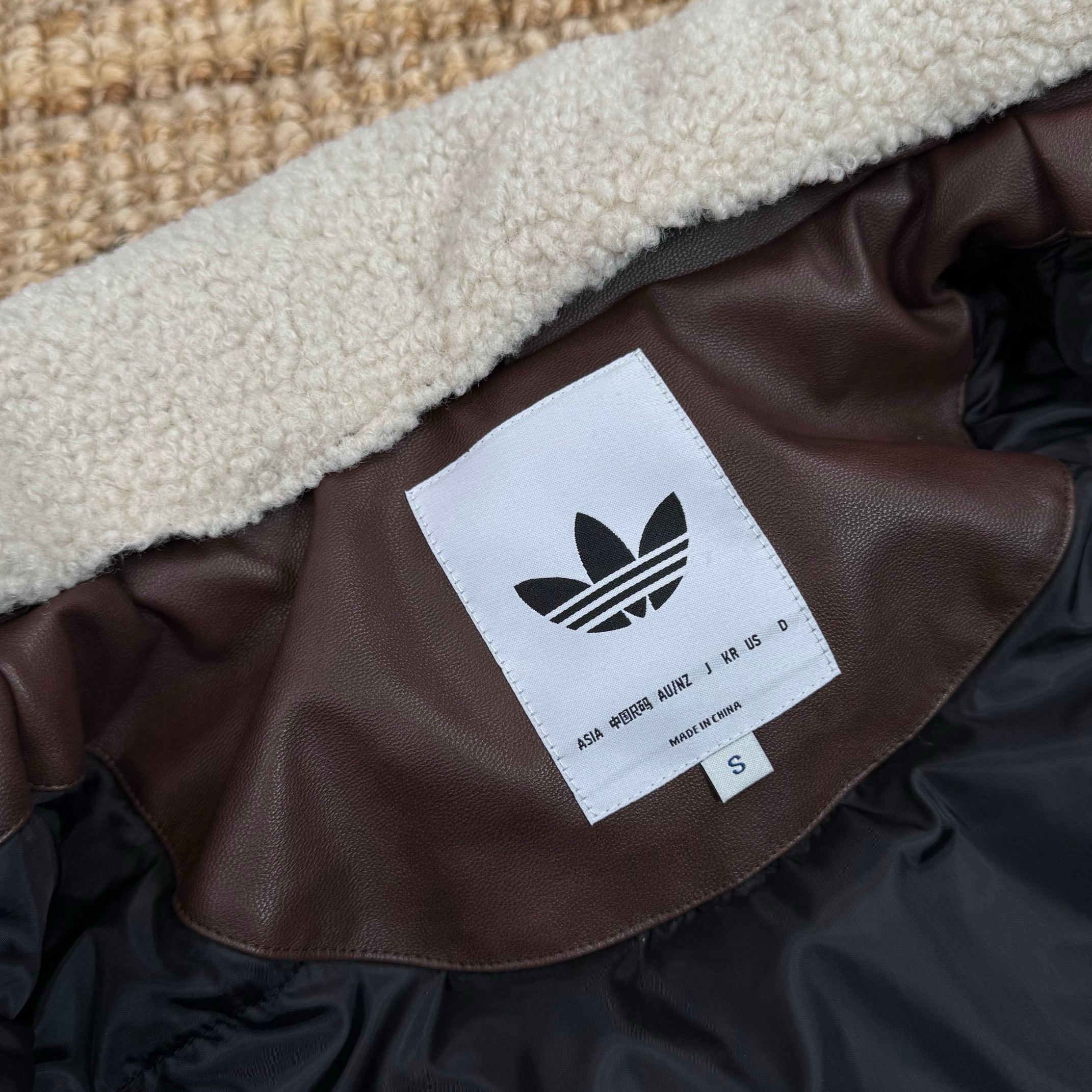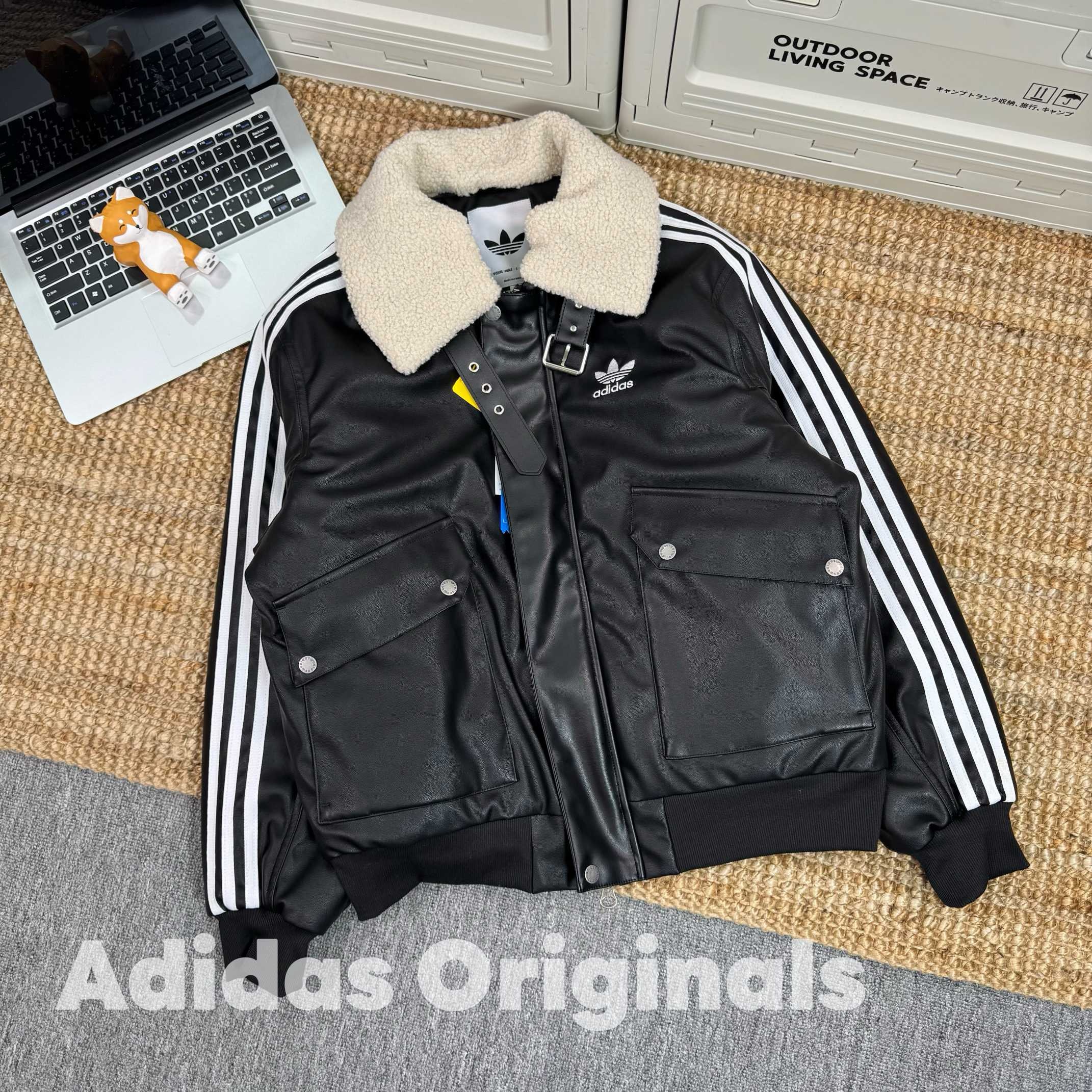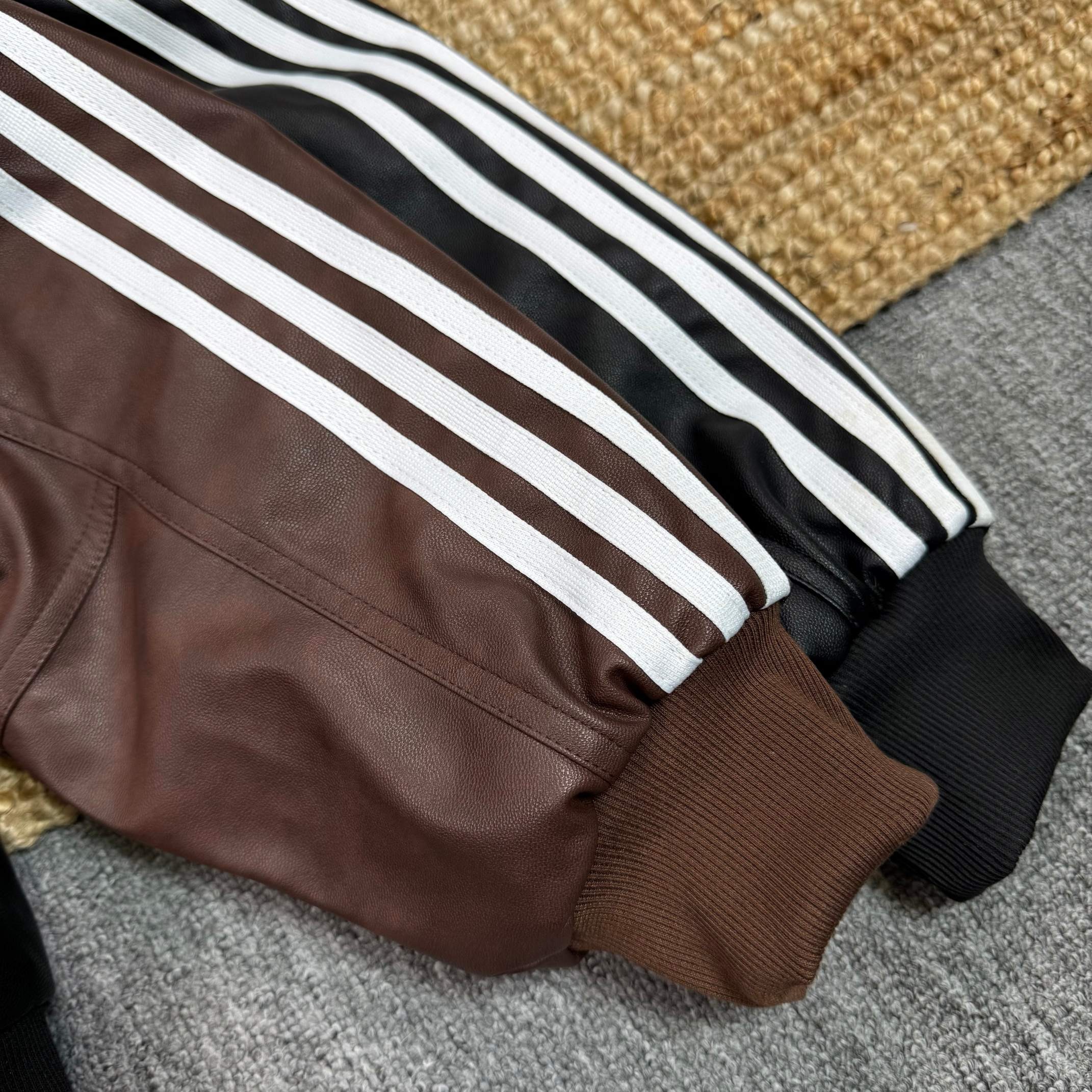 酷飒炸街,皮质软而有质感。棕皮+羊羔领+经典三道杠,把复古运动、甜酷机车、休闲日常这几个风格都捏稳了,搭牛仔裤是街拍感,搭黑裤是酷飒风