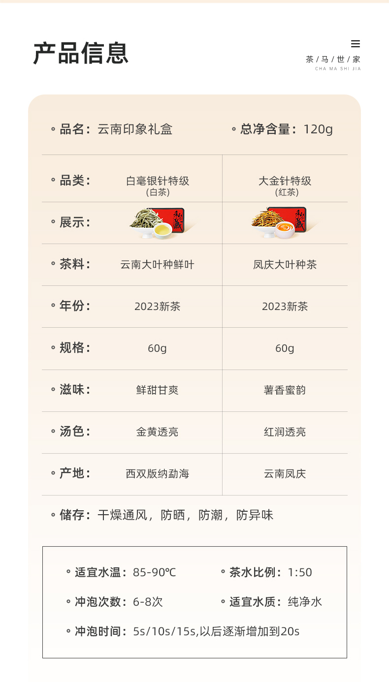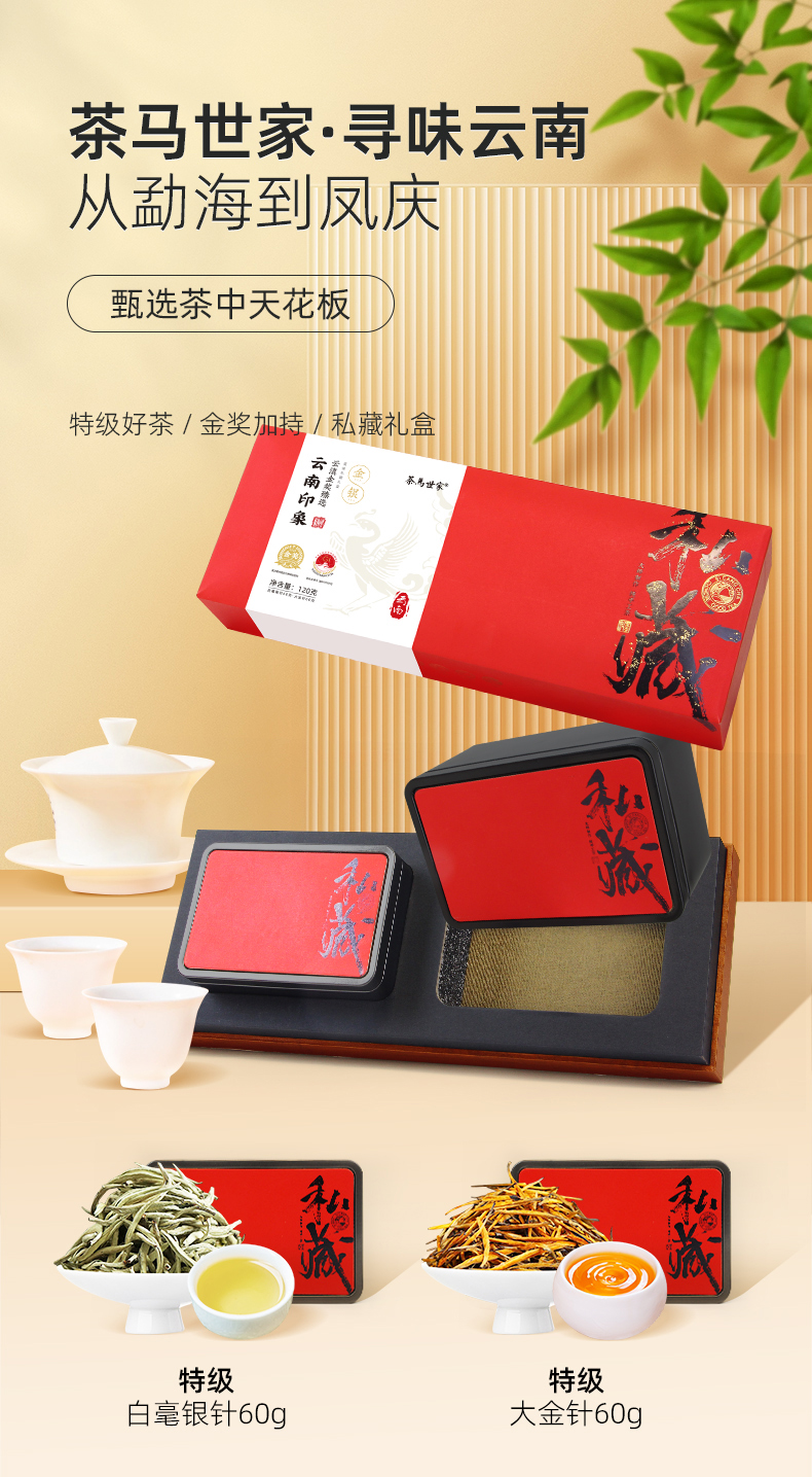 【年货礼盒】【金奖组合】茶马世家云南印象金银礼盒(大金针60g+白毫银针60g)120g