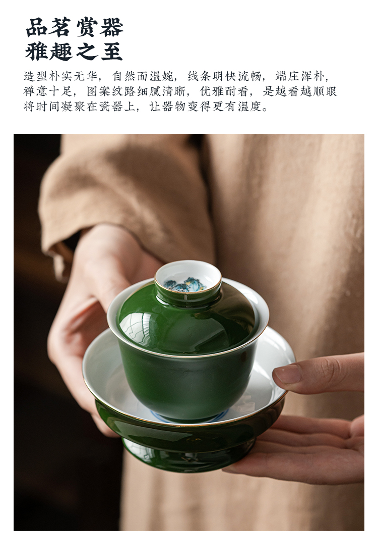 永利汇三才盖碗家用套装陶瓷茶杯绘画单个女功夫壶承茶具泡茶碗