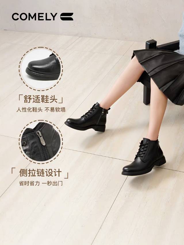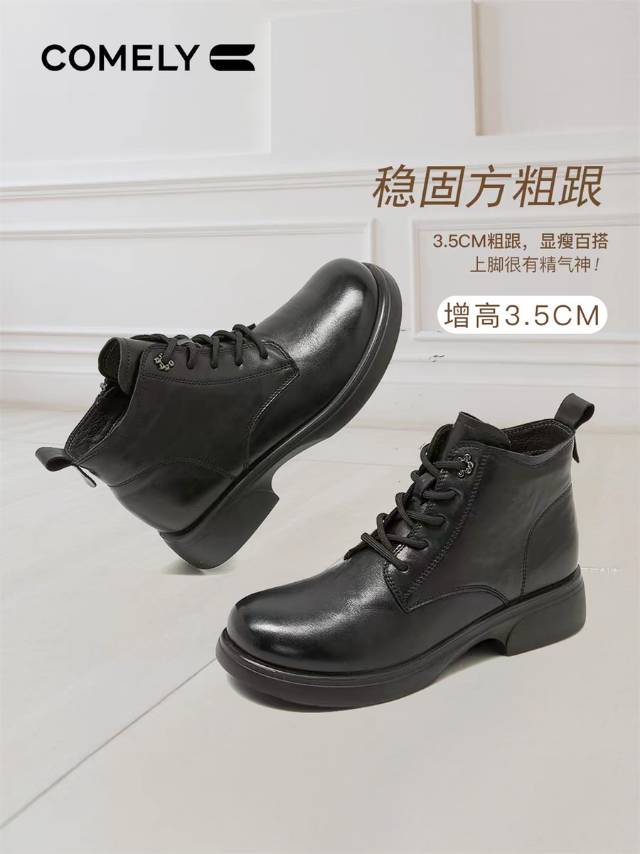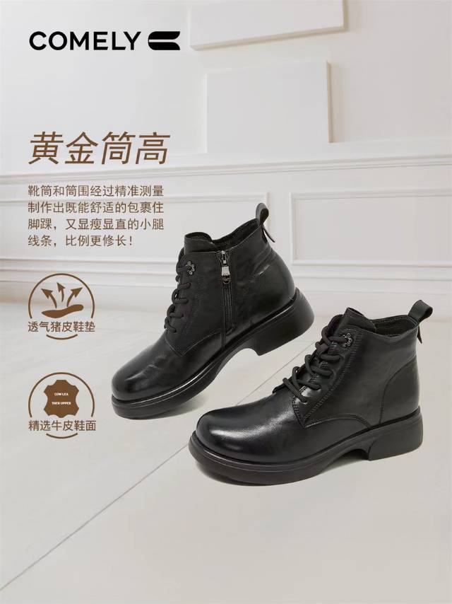 【云粉节】BF楼低跟马丁靴女2025新款秋冬英伦风真皮厚底舒软短靴子KHM58689B 吊牌价1380 活动价699