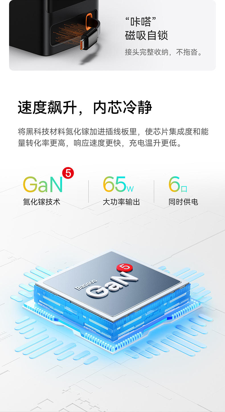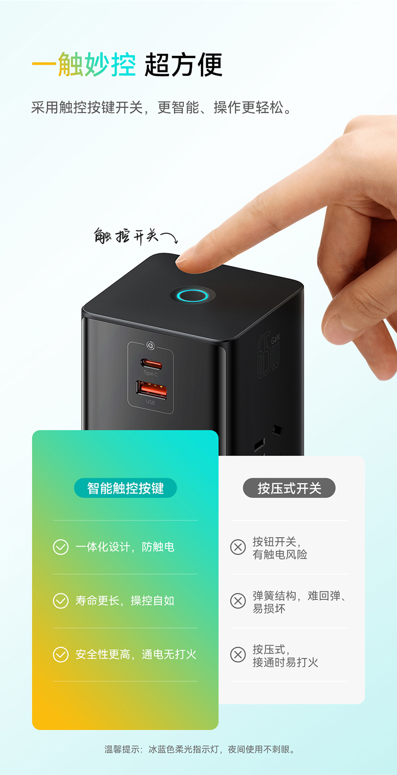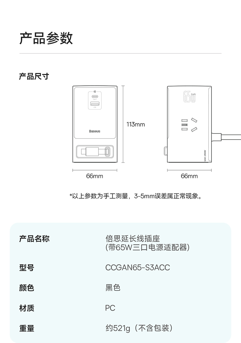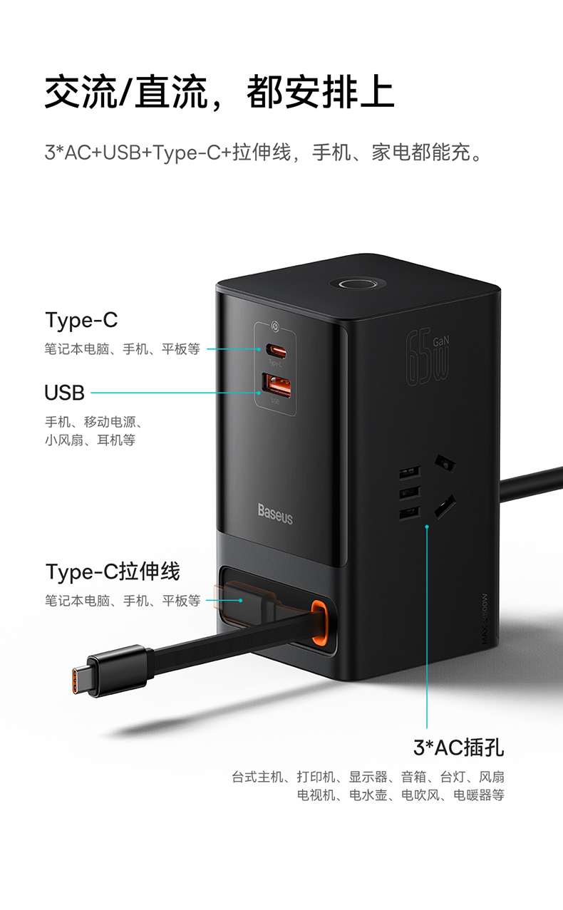 灵睿系列 数字式插线板 3AC+1U+1C+拉伸线C 65W 1.5m电源线