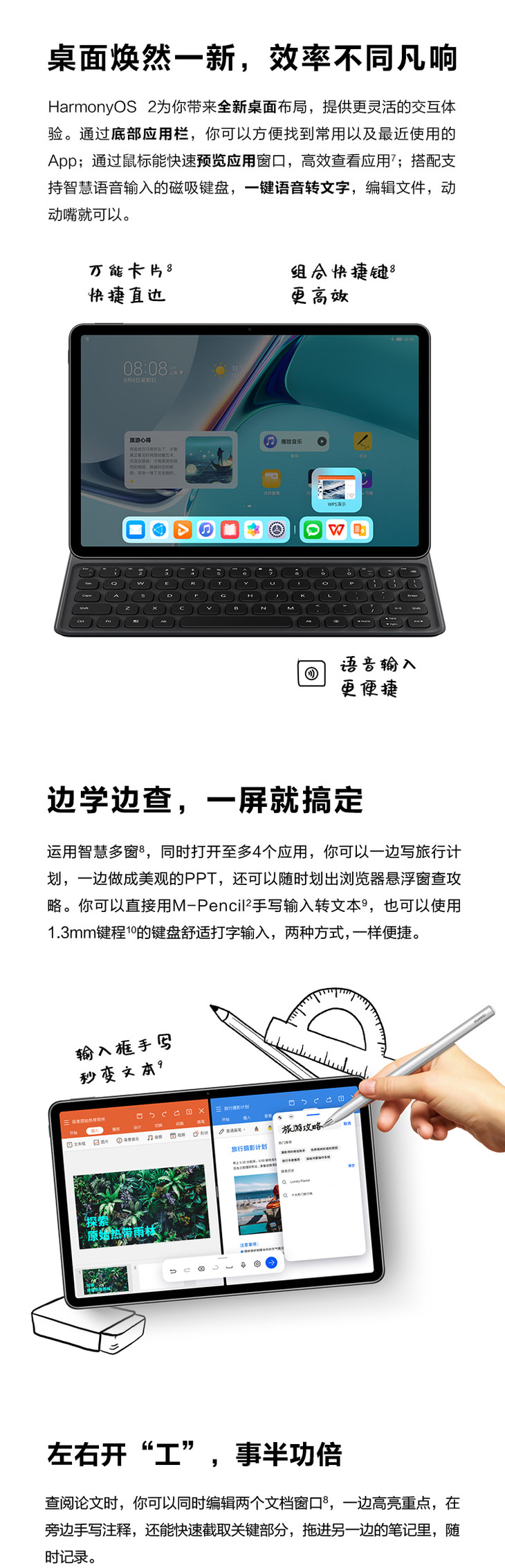 平板(电池内置) X 1、充电器 X 1、Type-C 数据线 X 1、快速指南 X 1、取卡针 X 1、三包凭证 X 1、三联标签 X 1
