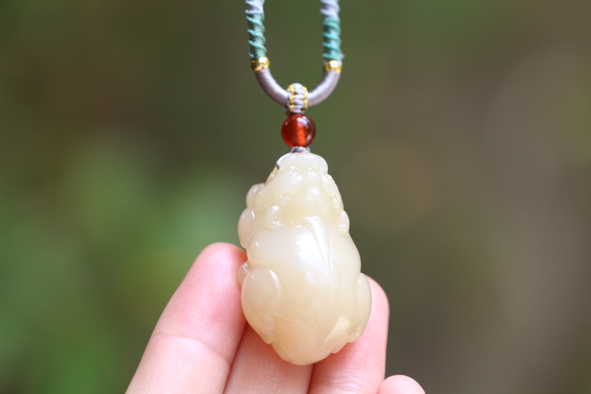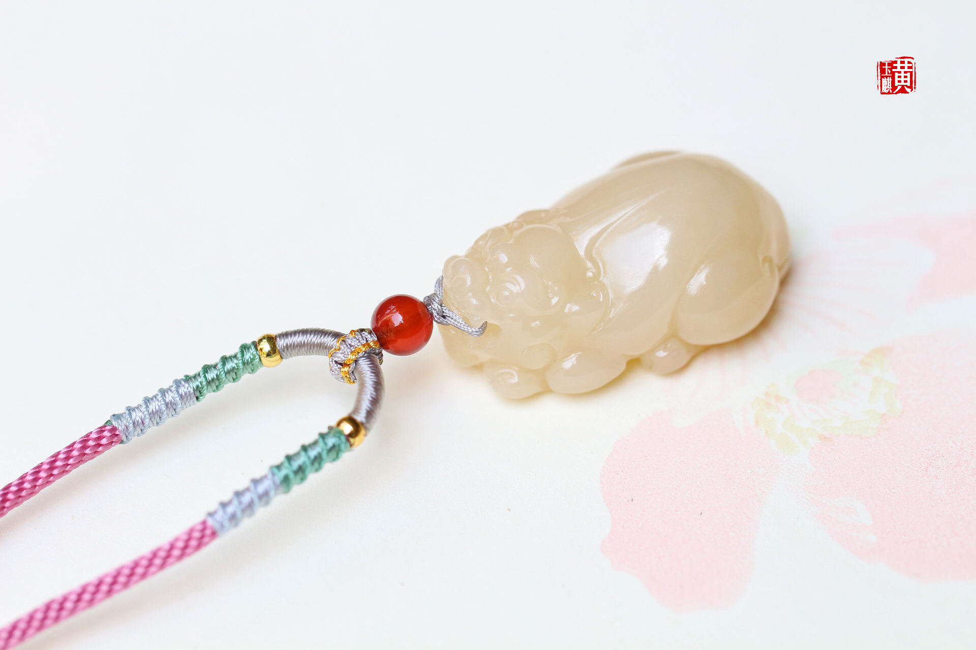 和田玉粉糖玉【貔貅】吊坠 配精美挂绳