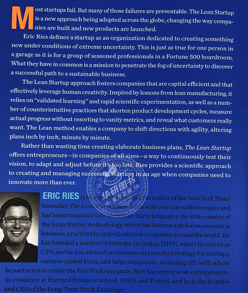 埃里克·莱斯,IMUV联合创始人及CTO,哈佛商学院驻校企业家,其“精益创业”的理念被《纽约时报》、《华尔街日报》、《哈佛商业评论》、《赫芬顿邮报》等多家媒体广泛报道。他还为多家新创企业、大型公司及风险投资公司提供商业及产品战略方面的咨询服务。