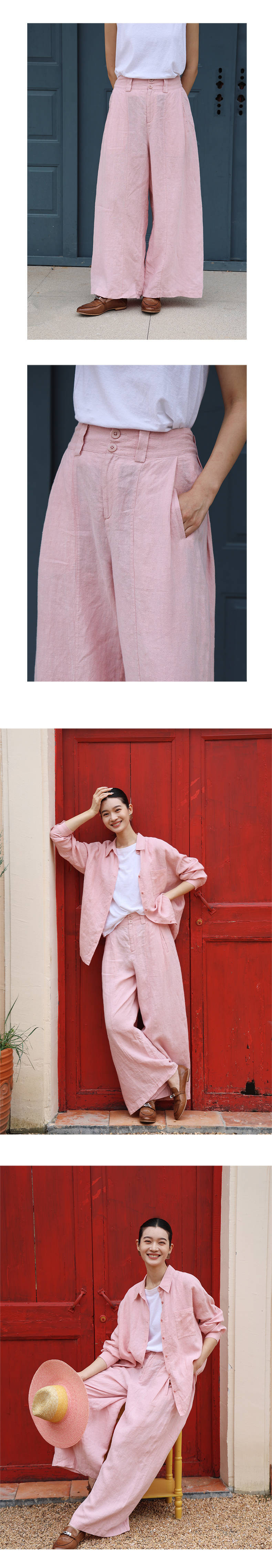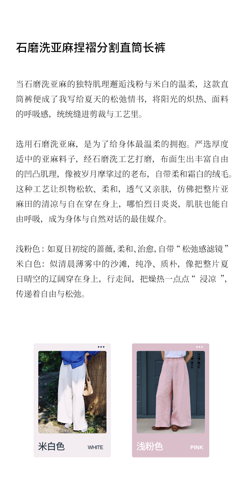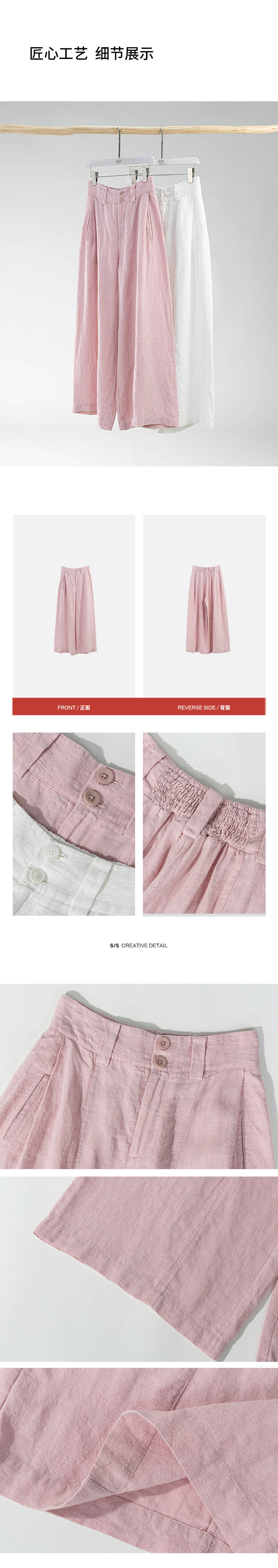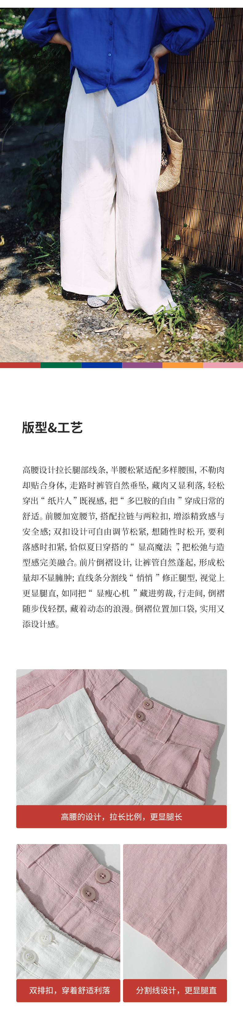 绽放402朵/【多巴胺系列】石磨洗亚麻半腰松紧捏褶分割直筒长裤女