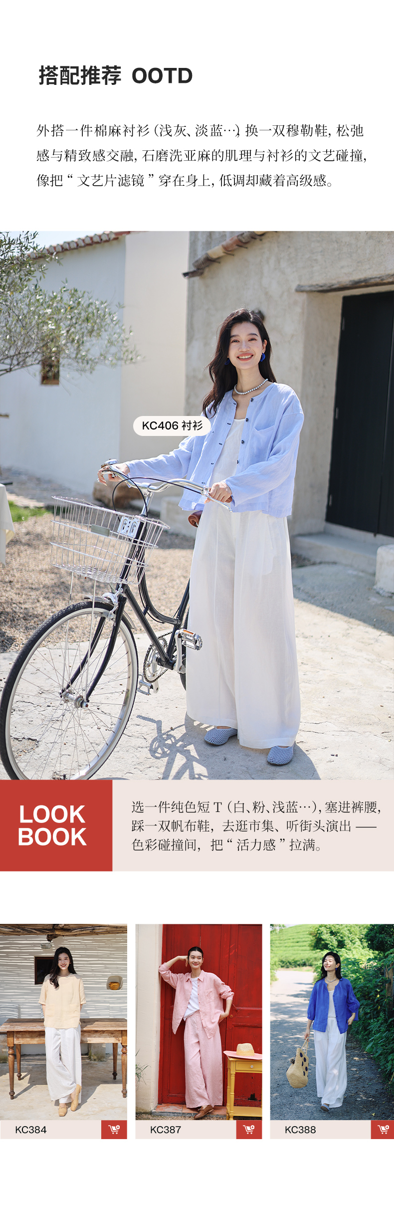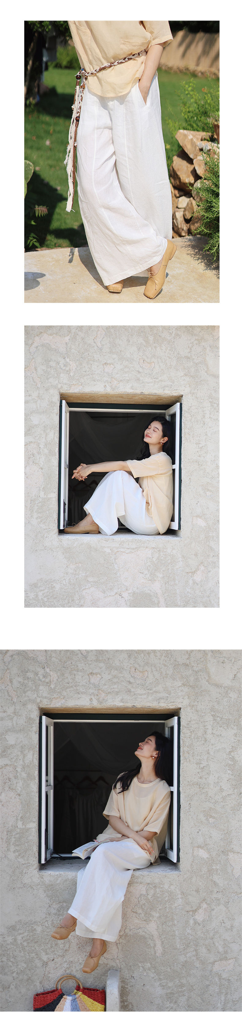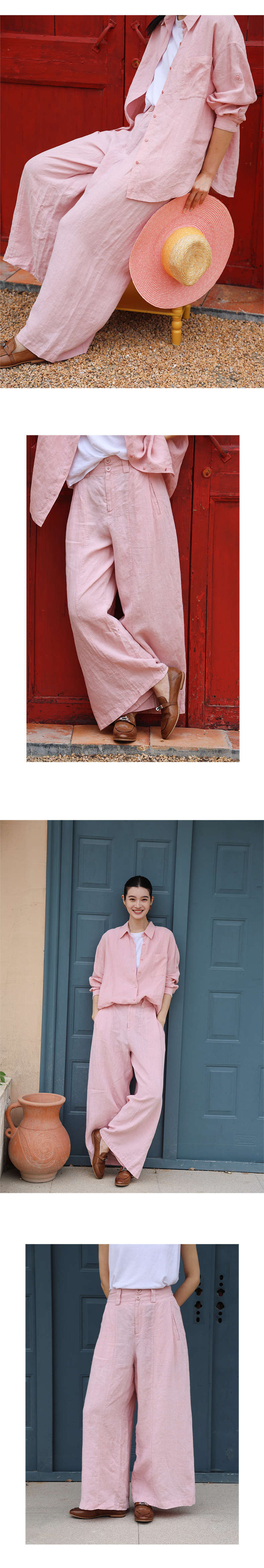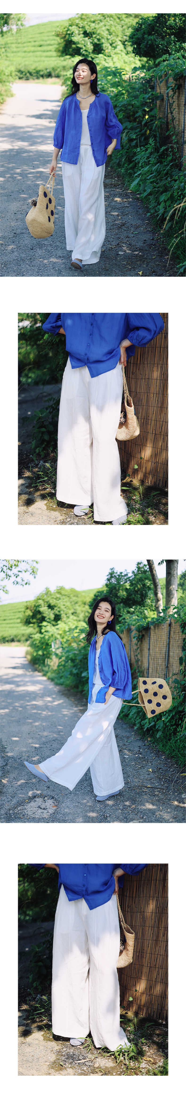 绽放402朵/【多巴胺系列】石磨洗亚麻半腰松紧捏褶分割直筒长裤女