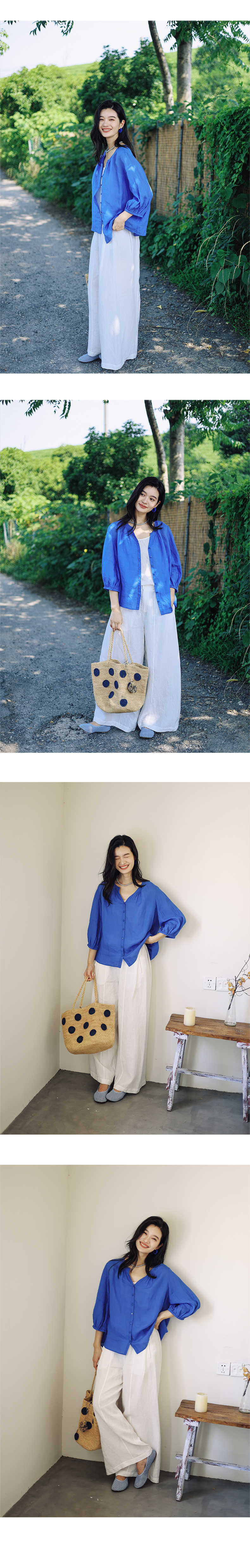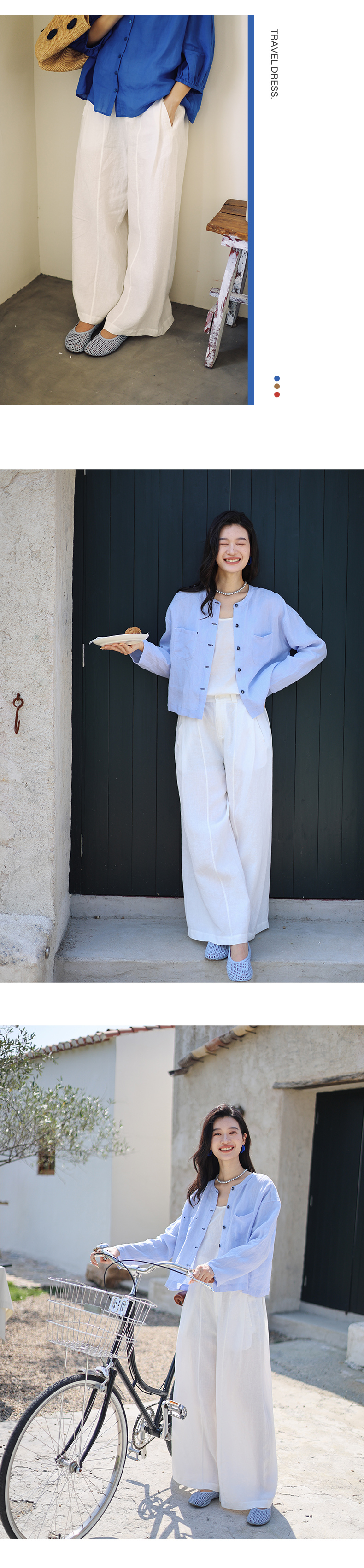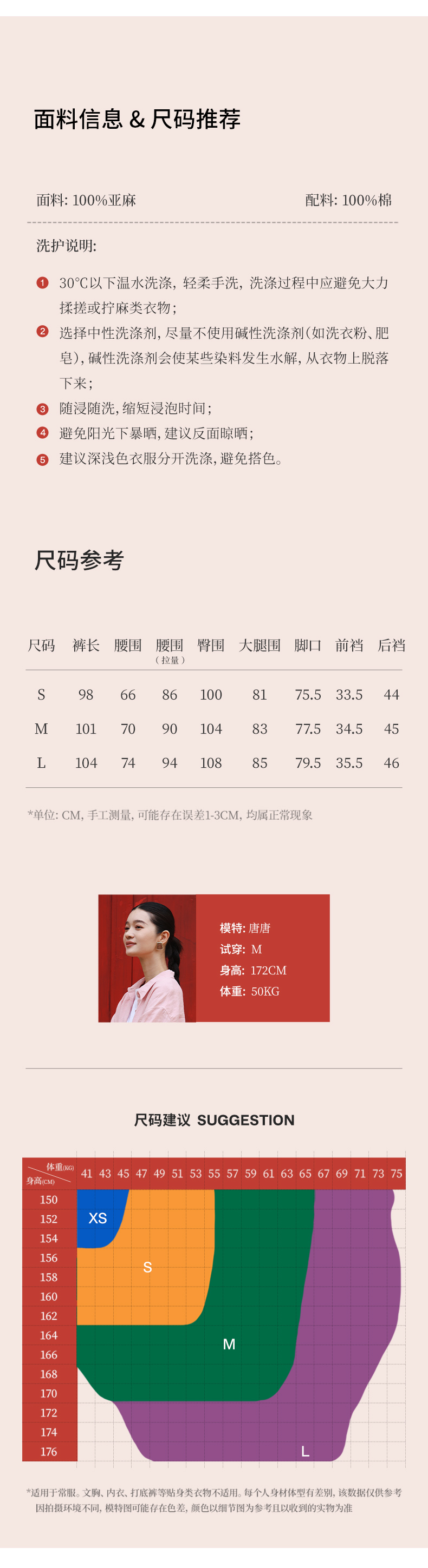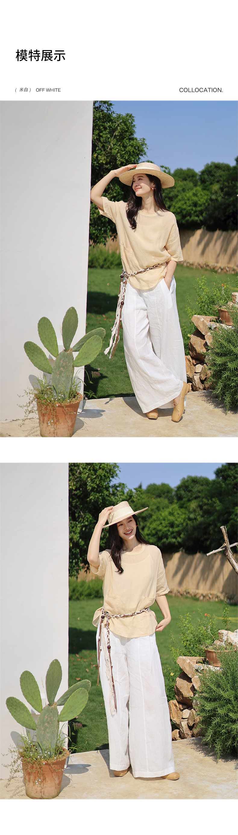 绽放402朵/【多巴胺系列】石磨洗亚麻半腰松紧捏褶分割直筒长裤女