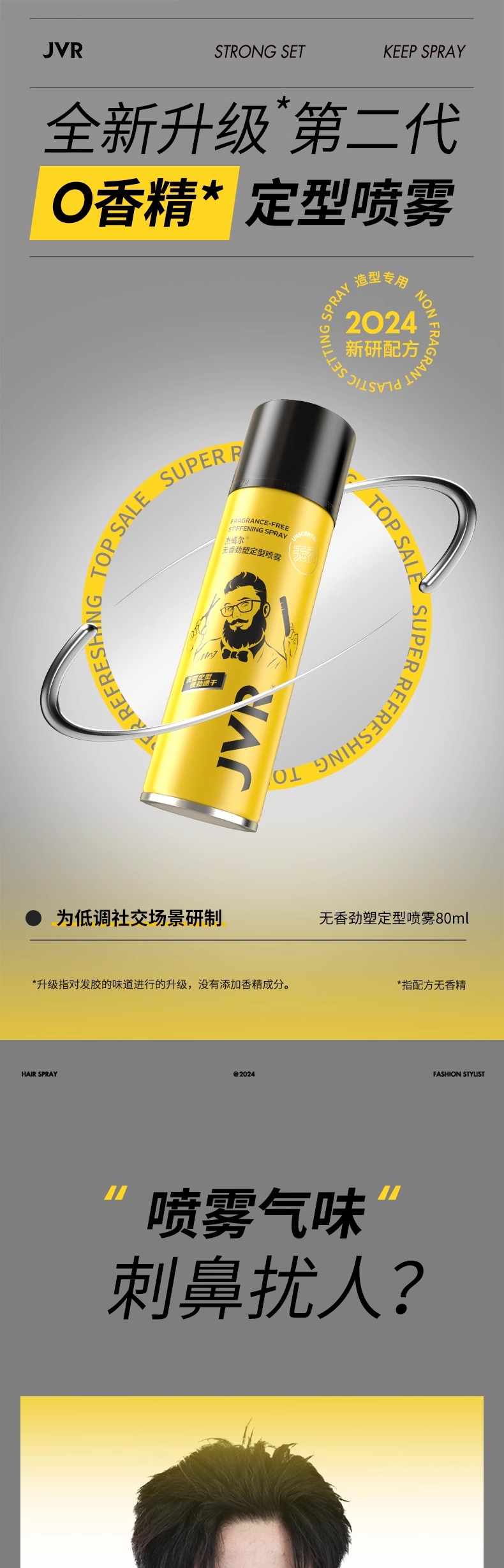 杰威尔无香发胶可上飞机定型喷雾持久强力塑型自然蓬松便携造型干胶