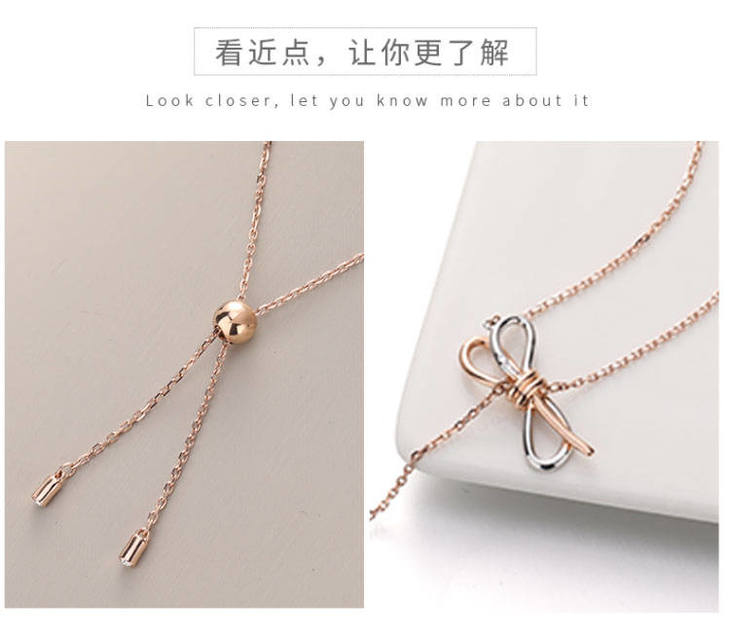 【网红暴款 925银气质蝴蝶结锁骨链】S925纯银蝴蝶结项链女流苏玫瑰金锁骨链颈链