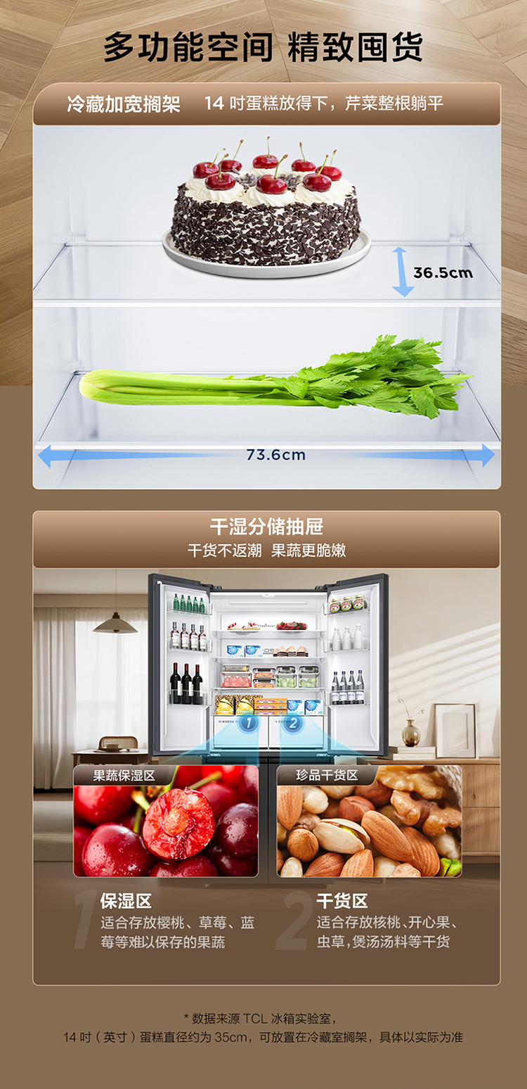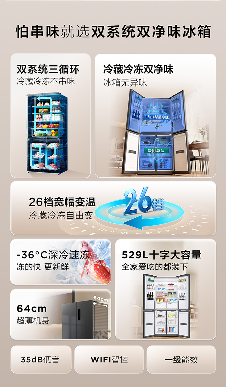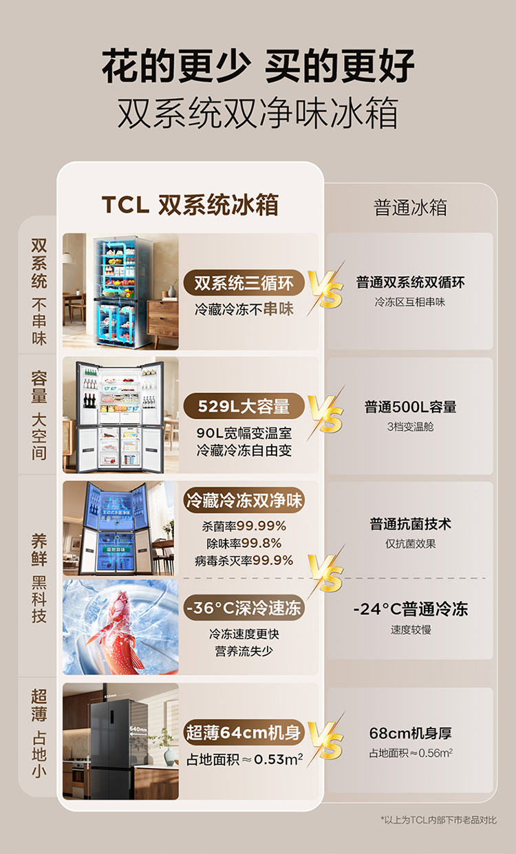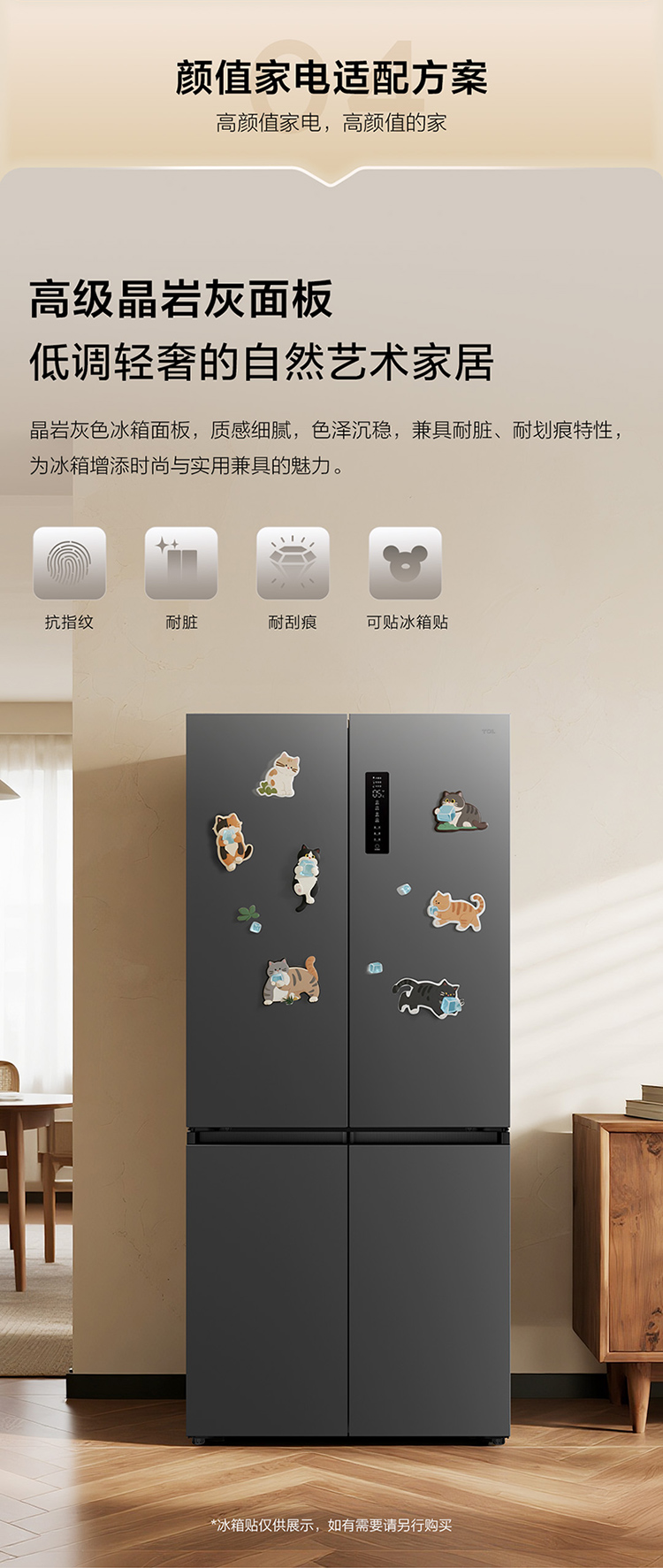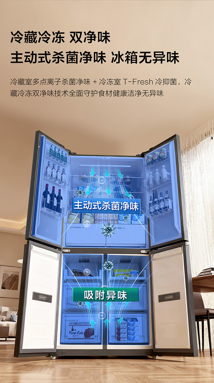 【新品上市】TCL 小清柠529升十字对开四开门双系统双净味大容量宽幅变温冰箱 R529V7-US