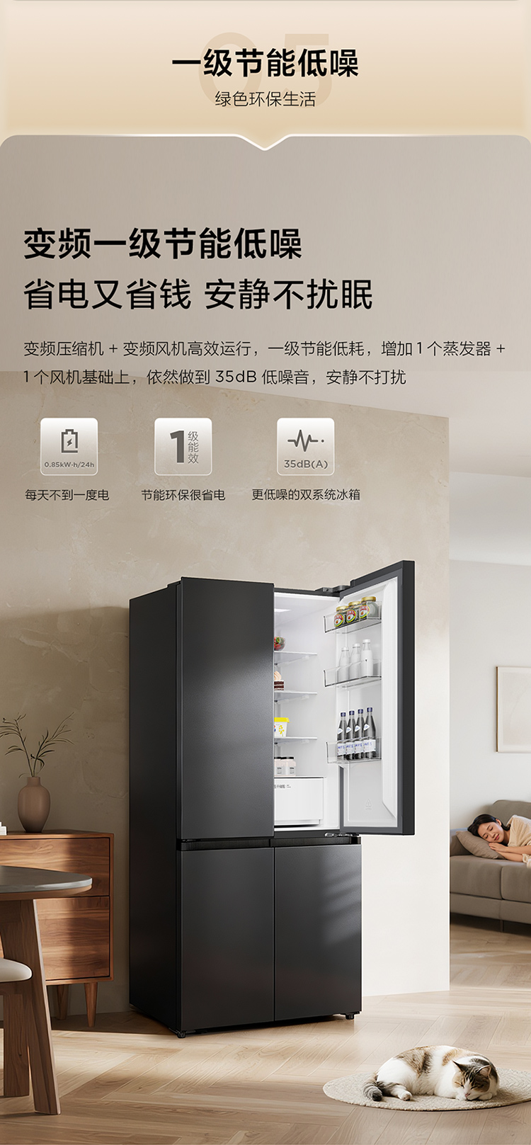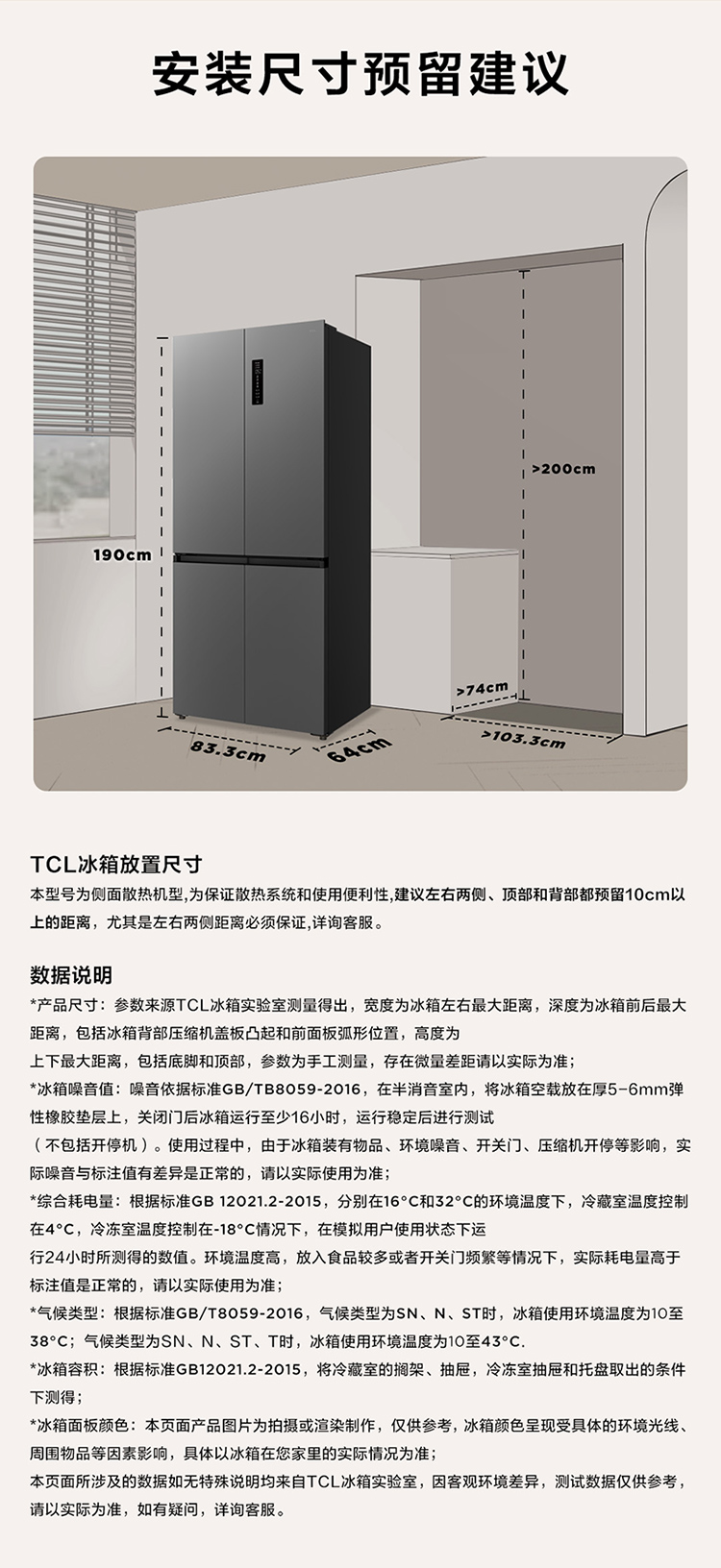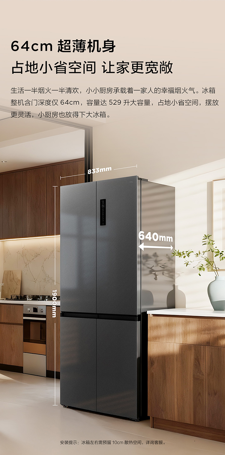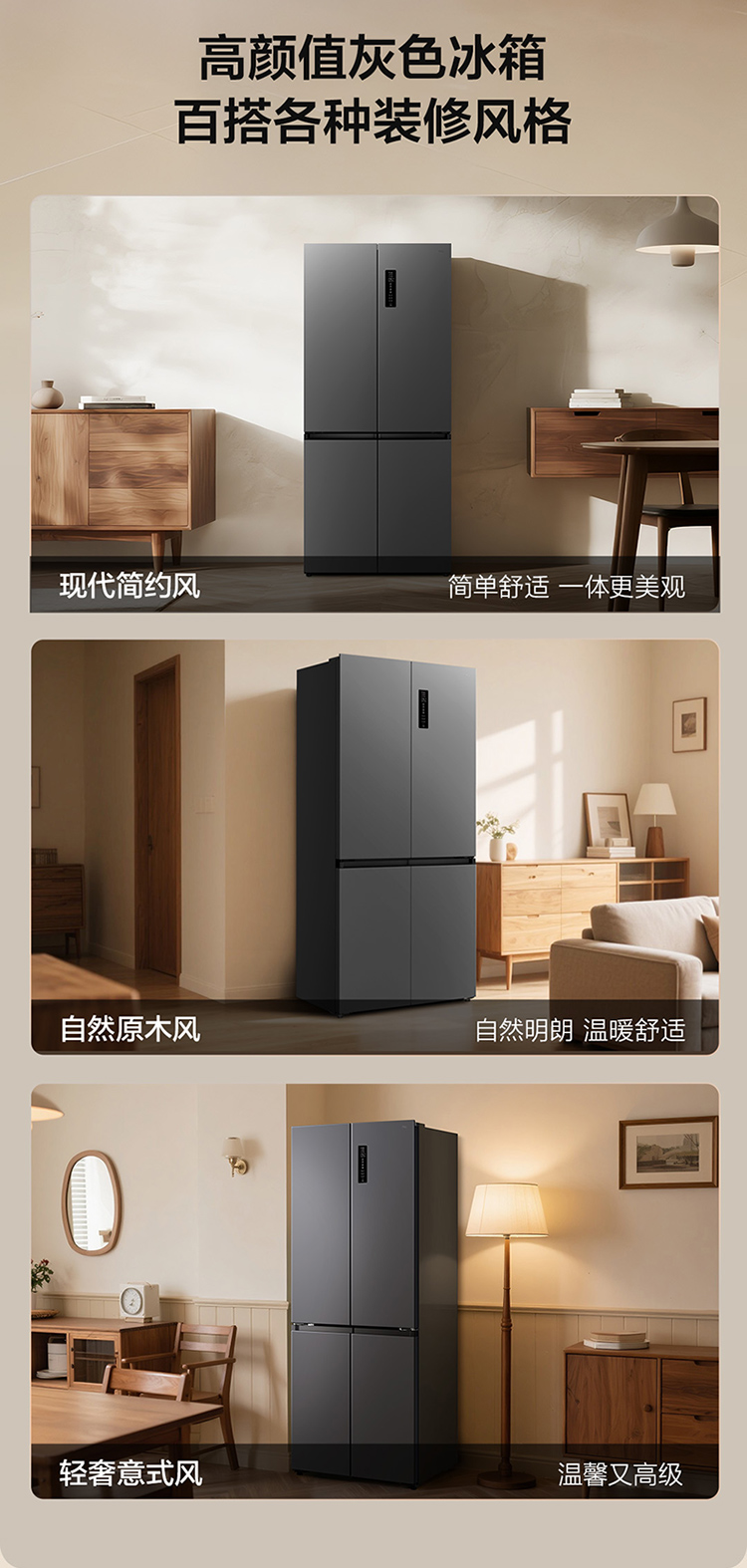 【新品上市】TCL 小清柠529升十字对开四开门双系统双净味大容量宽幅变温冰箱 R529V7-US