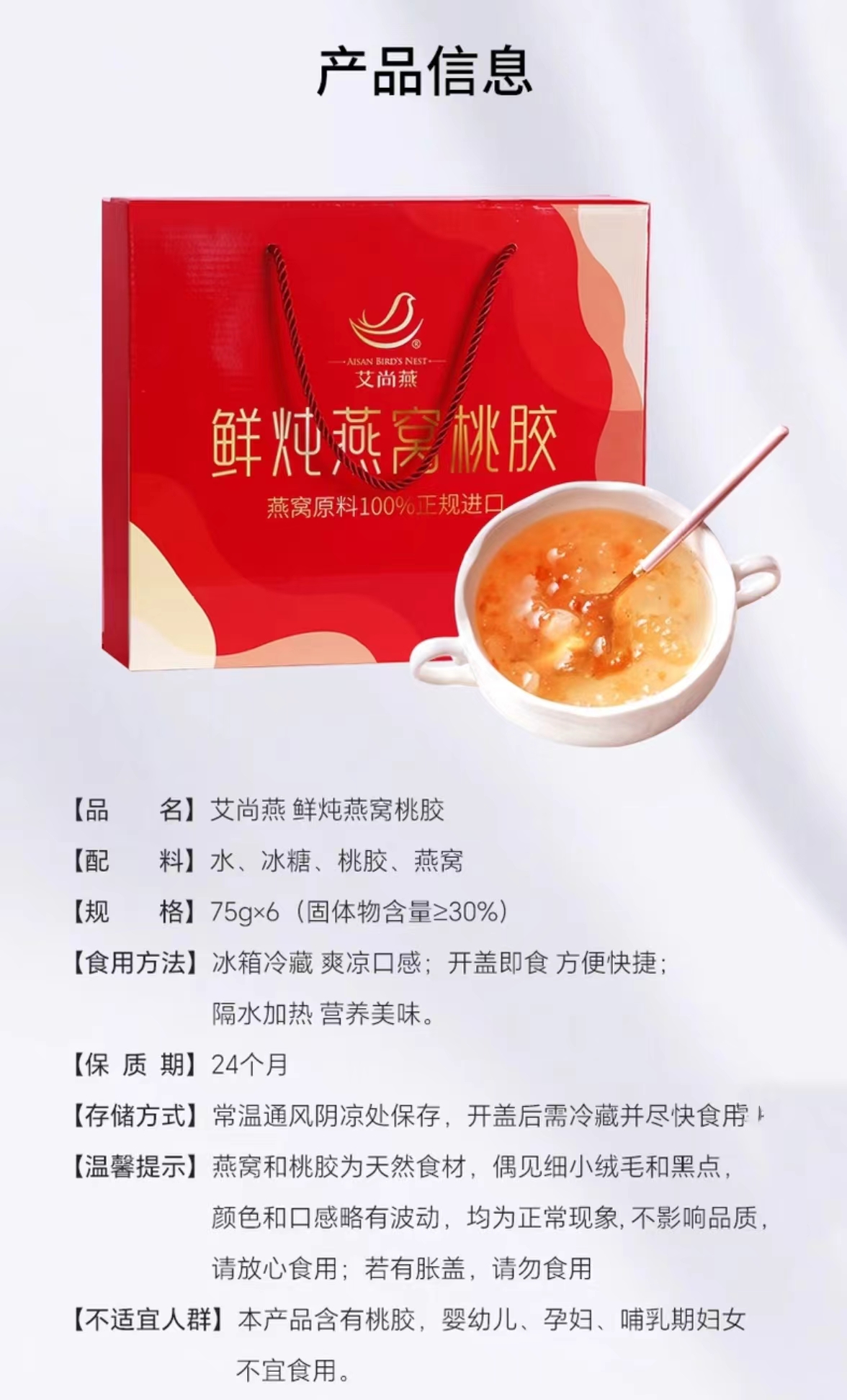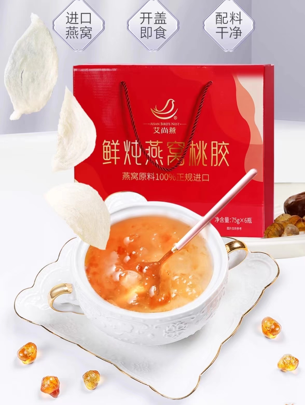 艾尚燕鲜炖桃胶燕窝75g*30%*6瓶