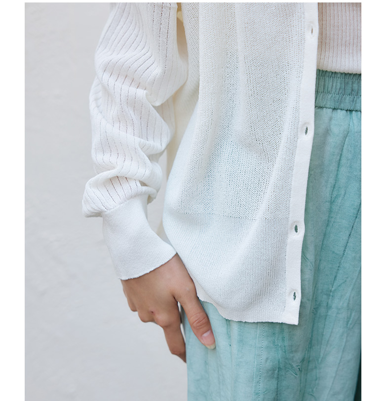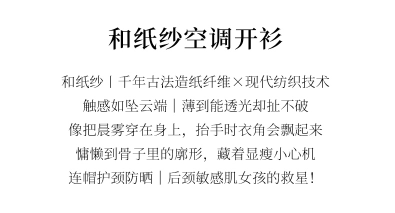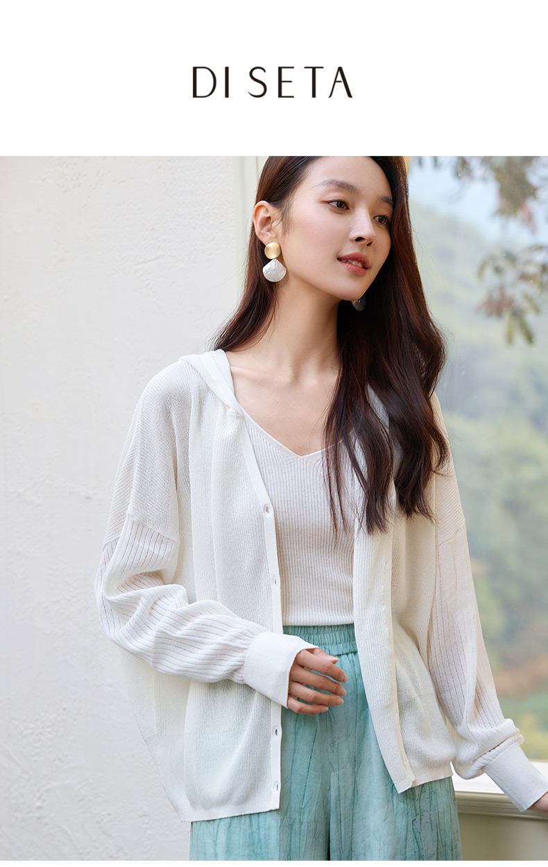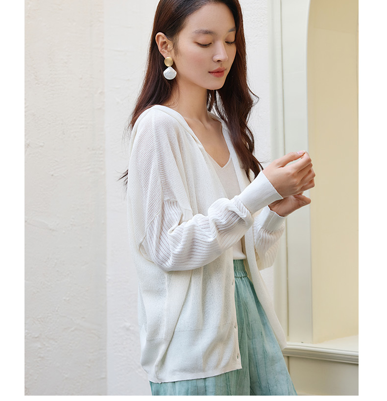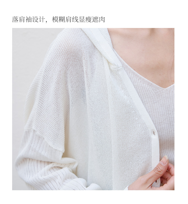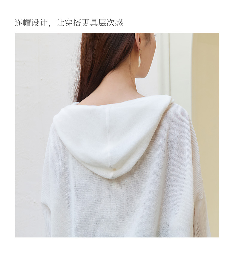 玳莎和纸纱连帽针织开衫女2025夏季新款轻薄透气简约空调衫披肩 FB33301