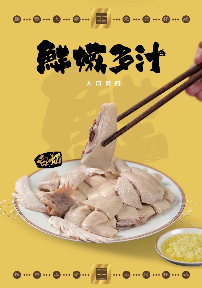 这款盐焗鸡和白切鸡,食材均来自自有养鸡场的走地土鸡。