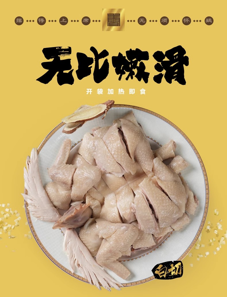 2.白切鸡,900g/袋,1袋装(1只),原价89元,优享价75元。2袋装(2只),原价158元,优享价130元。