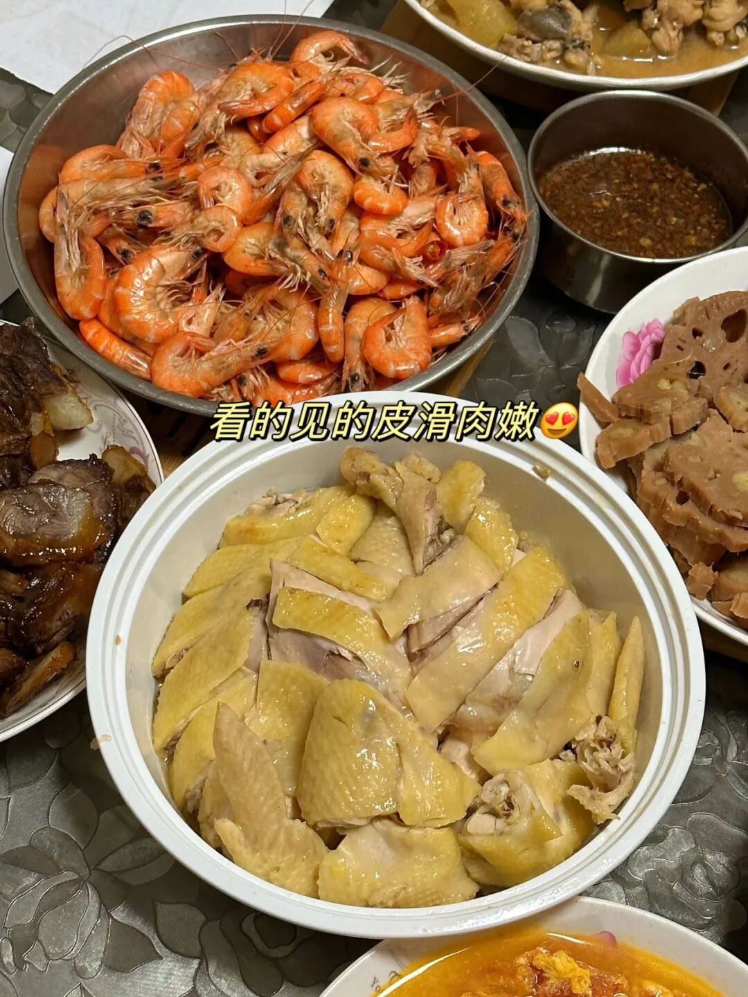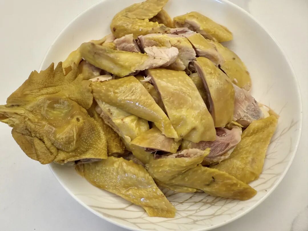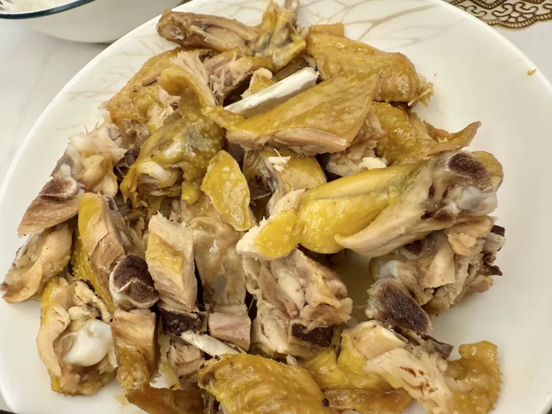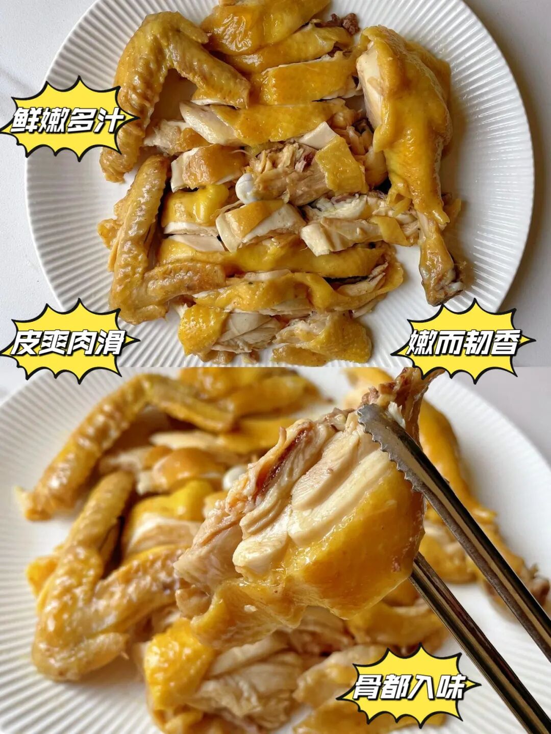 鸡肉鲜嫩滑润,不用过多调味,简单蘸一点酱油就足够好吃,咸鲜之间,全是鸡肉本身的香、嫩与本味主导,清爽不腻,百吃不厌。