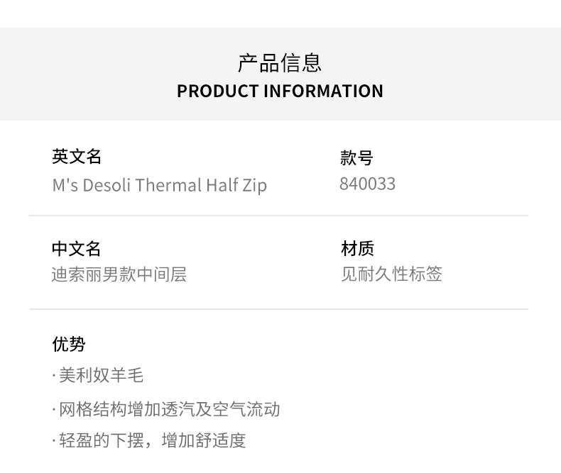 HOUDINI胡丁尼 Desoli 迪索丽 男款户外保暖半开长袖840033