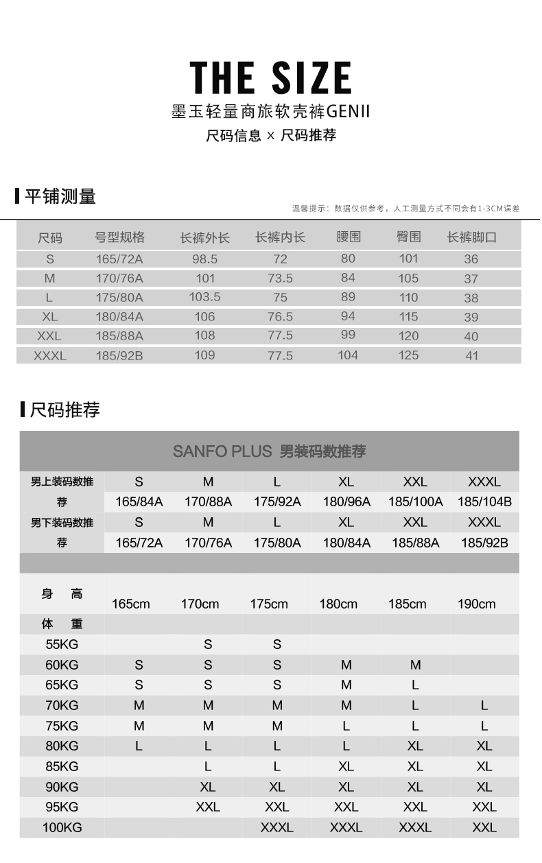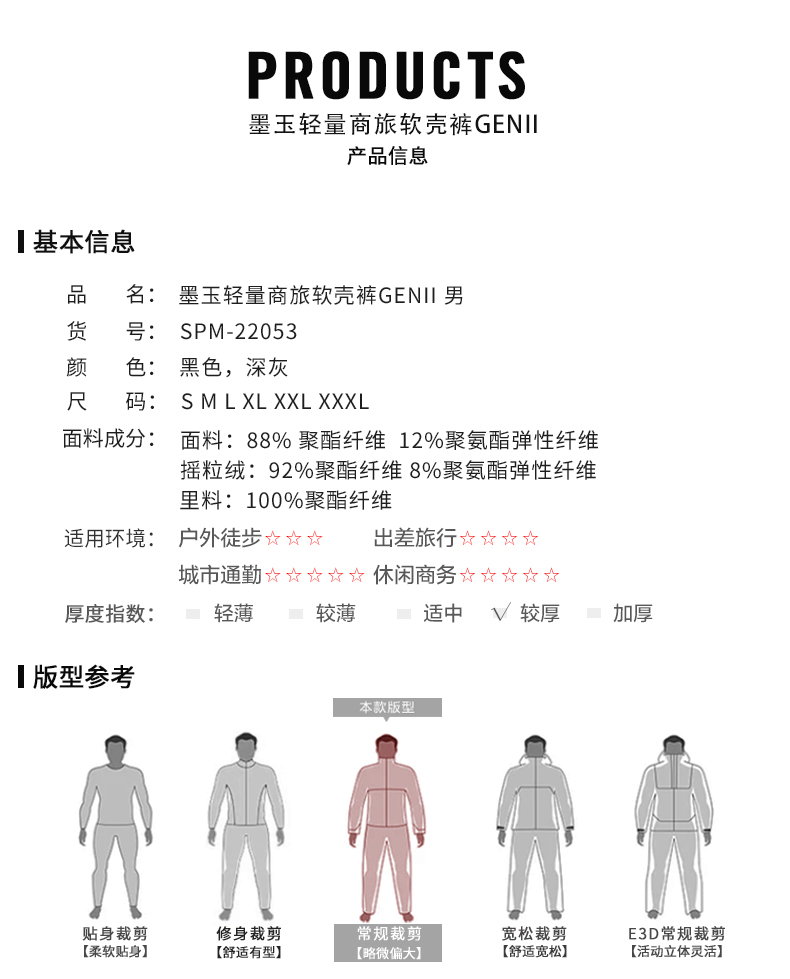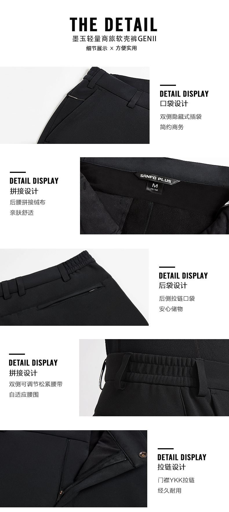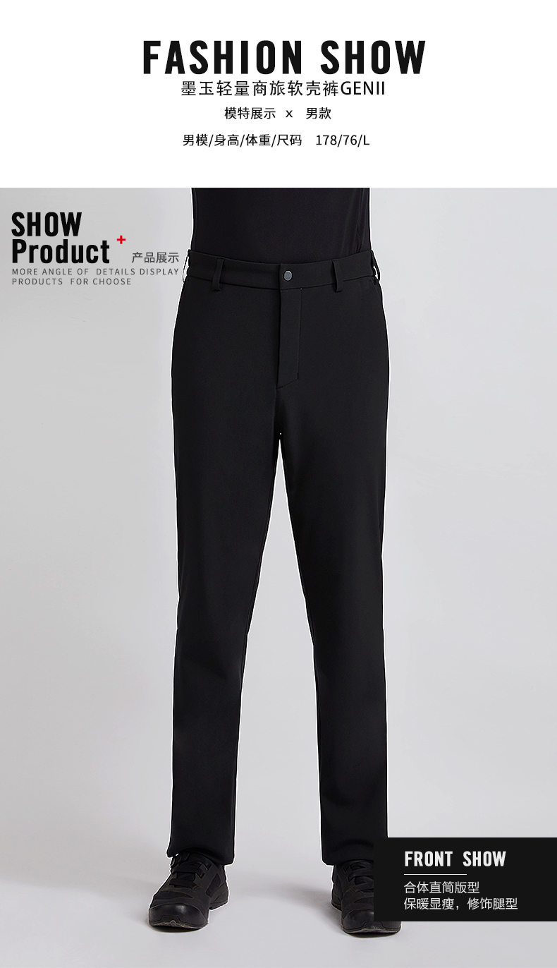 SANFO PLUS墨玉轻量商旅软壳裤户外微绒保暖弹力防风 22053