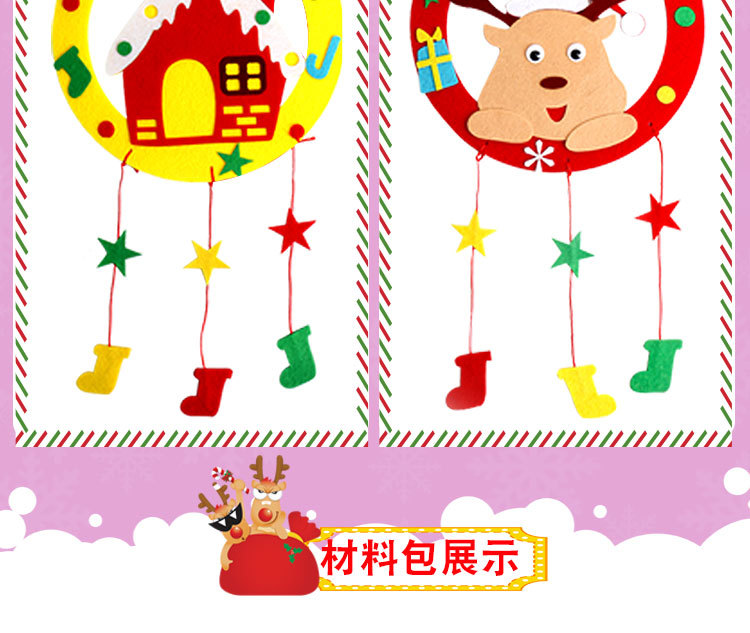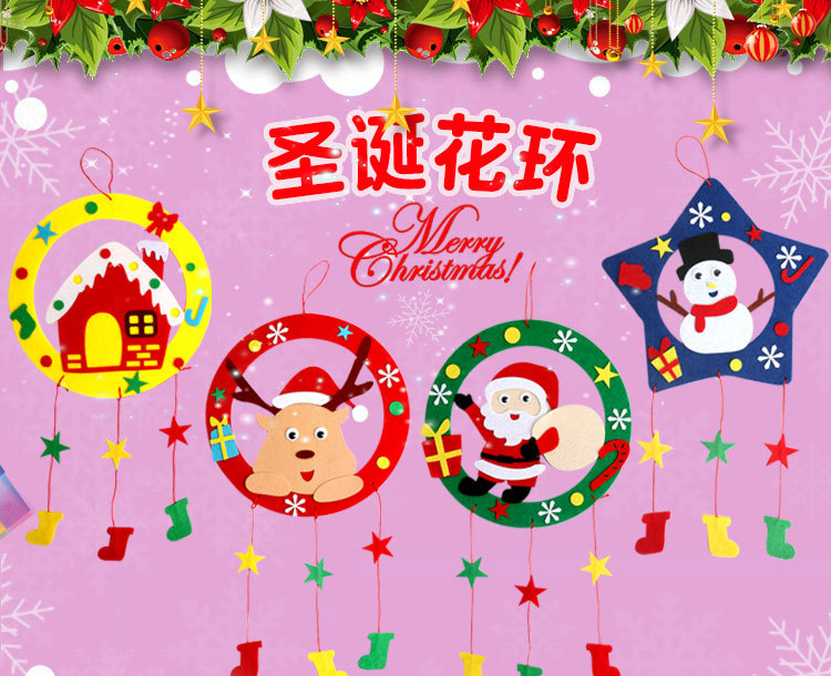 【3个装 手作圣诞花环】不织布花环挂饰幼儿园DIY手工制作材料包儿童圣诞节礼物