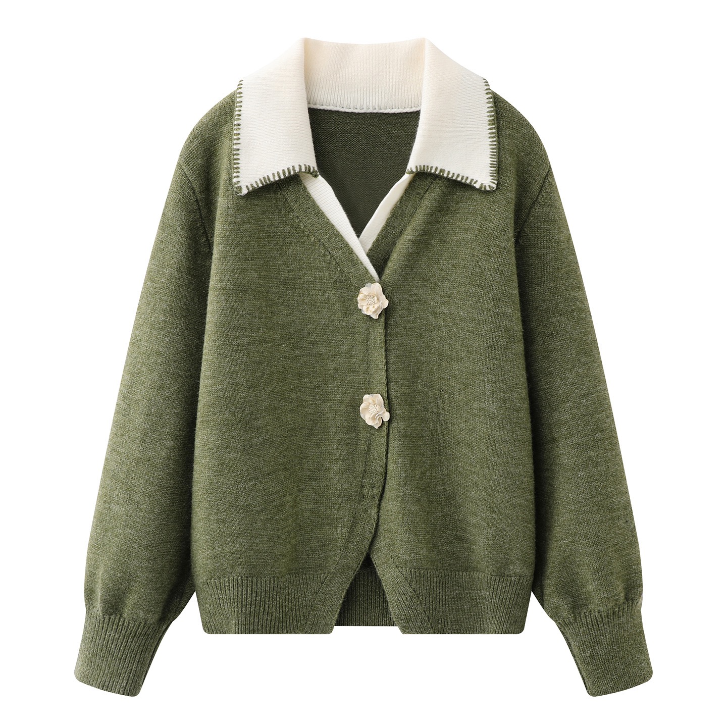 2025新款现货假两件拼接针织衫毛衣女秋冬季新款宽松上衣