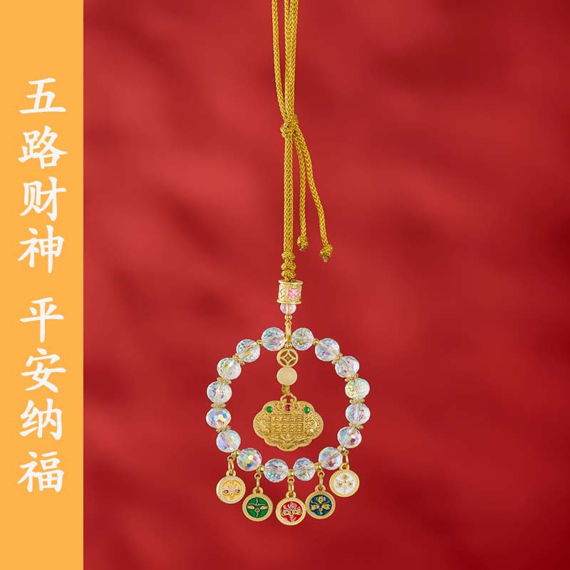 【平安纳福❗五路财神水晶挂件】纳福开运,增添一抹瑞气,开业礼品汽车装饰家居年货礼盒套装L
