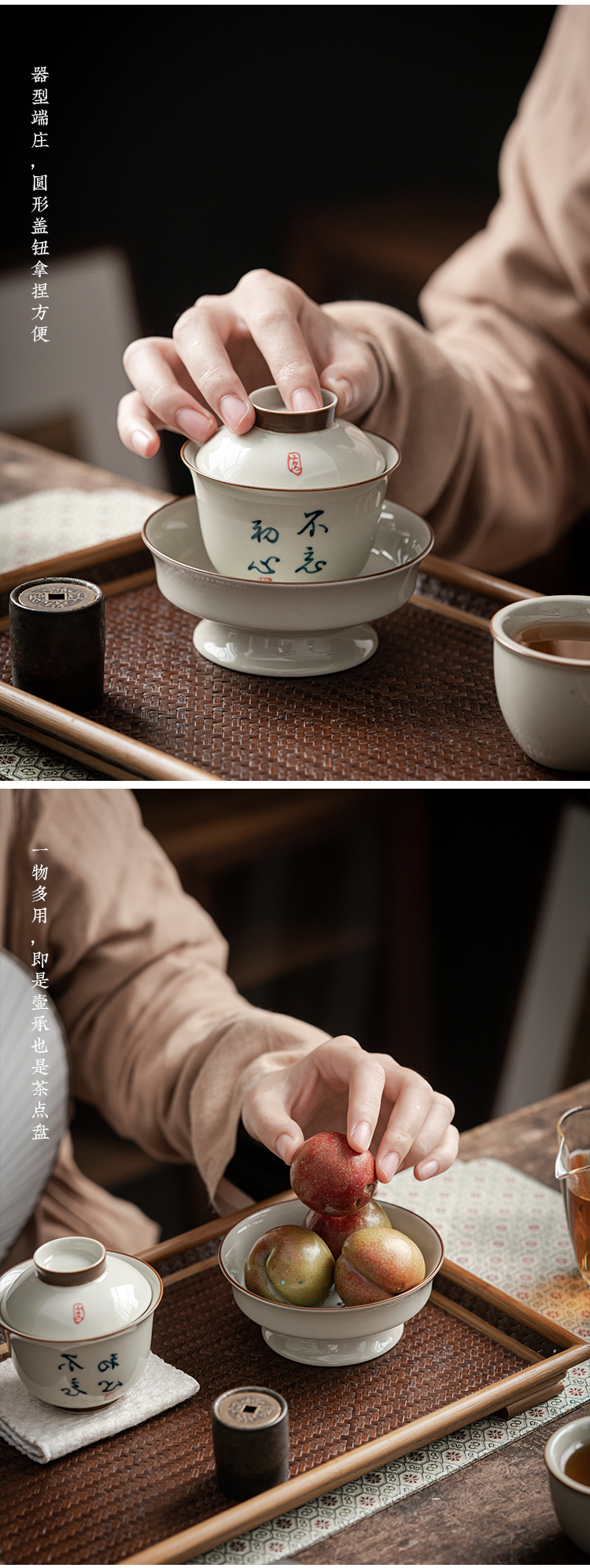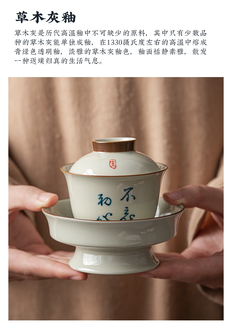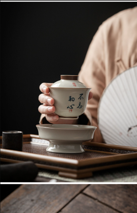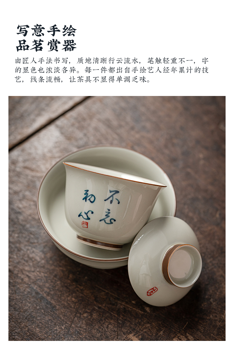 永利汇三才盖碗茶杯复古绘画单人女陶瓷功夫茶具高端带盖泡茶碗