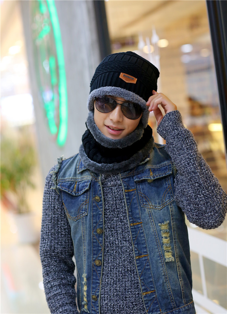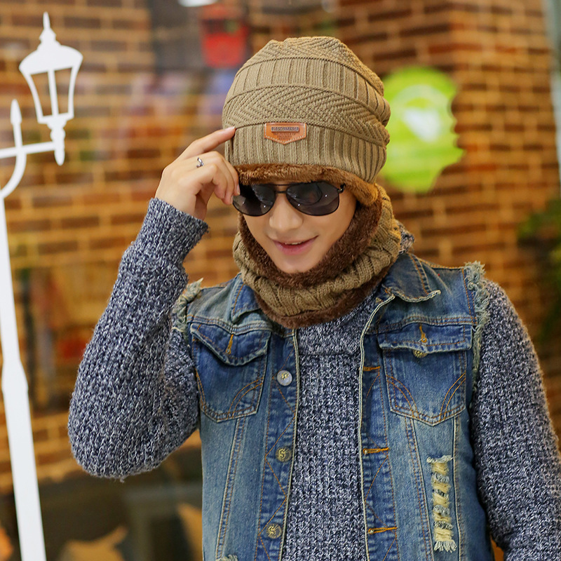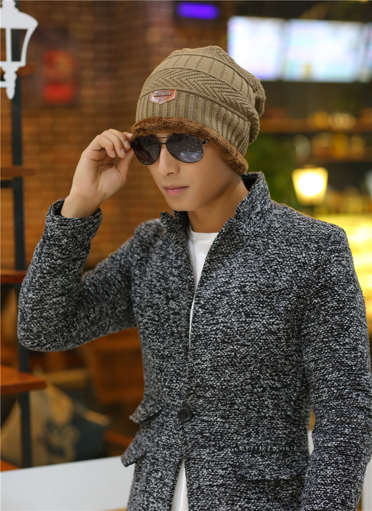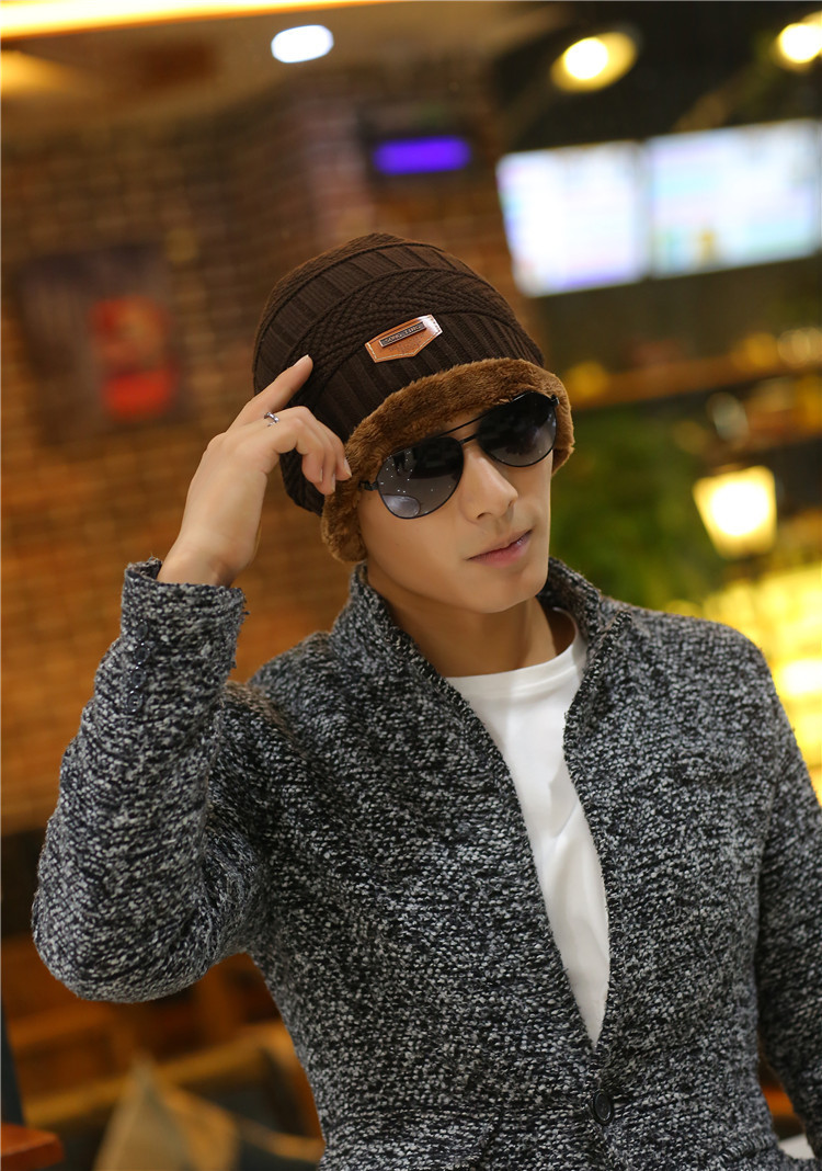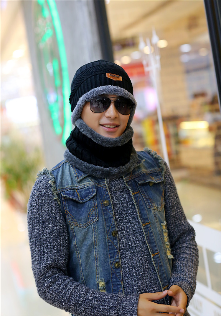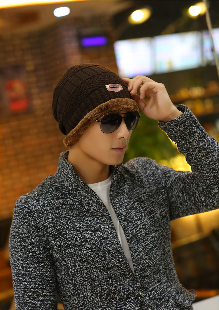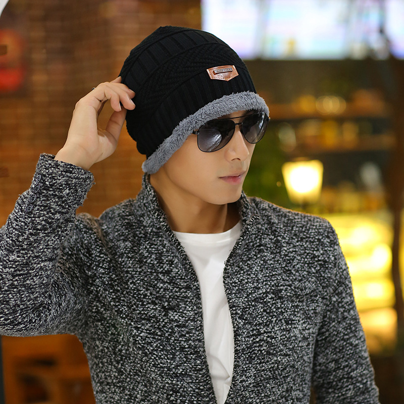 【针织帽男】冬季韩版毛线帽 加绒保暖针织帽套头帽男 男士围脖帽子潮