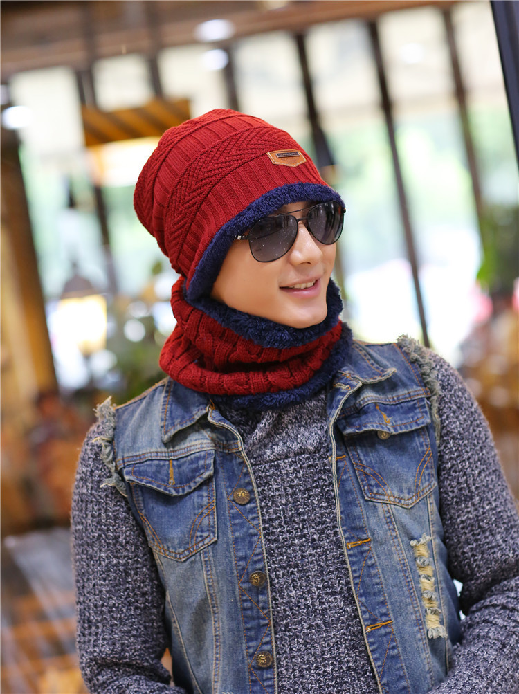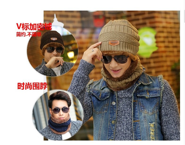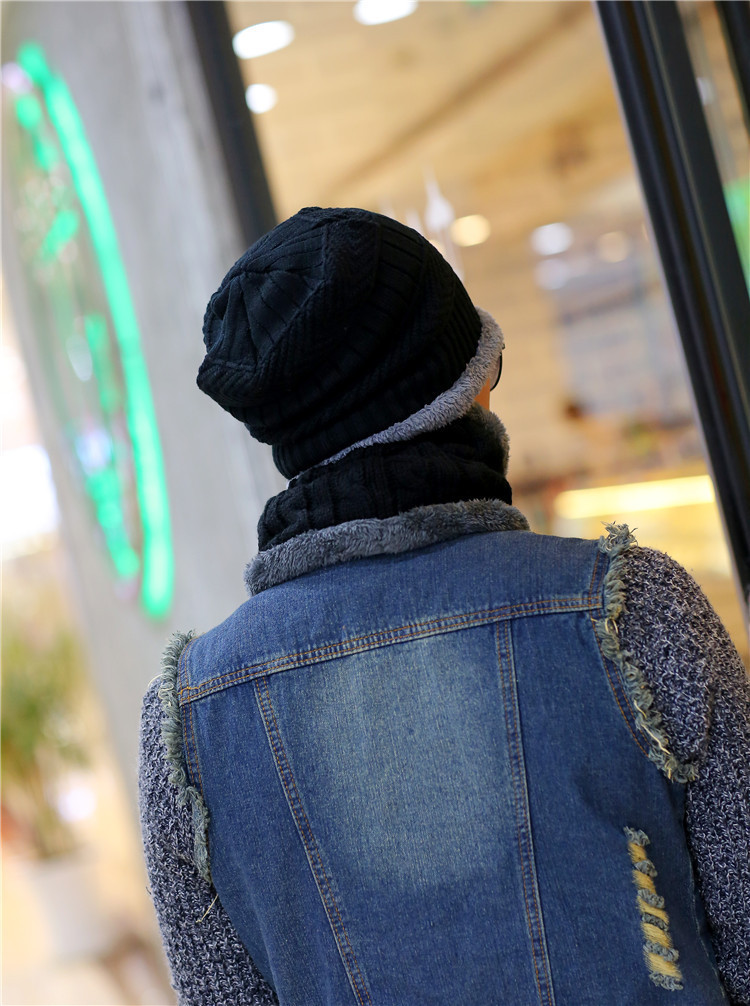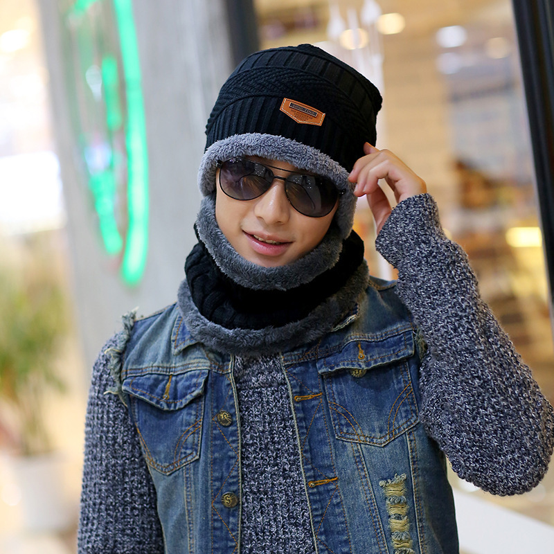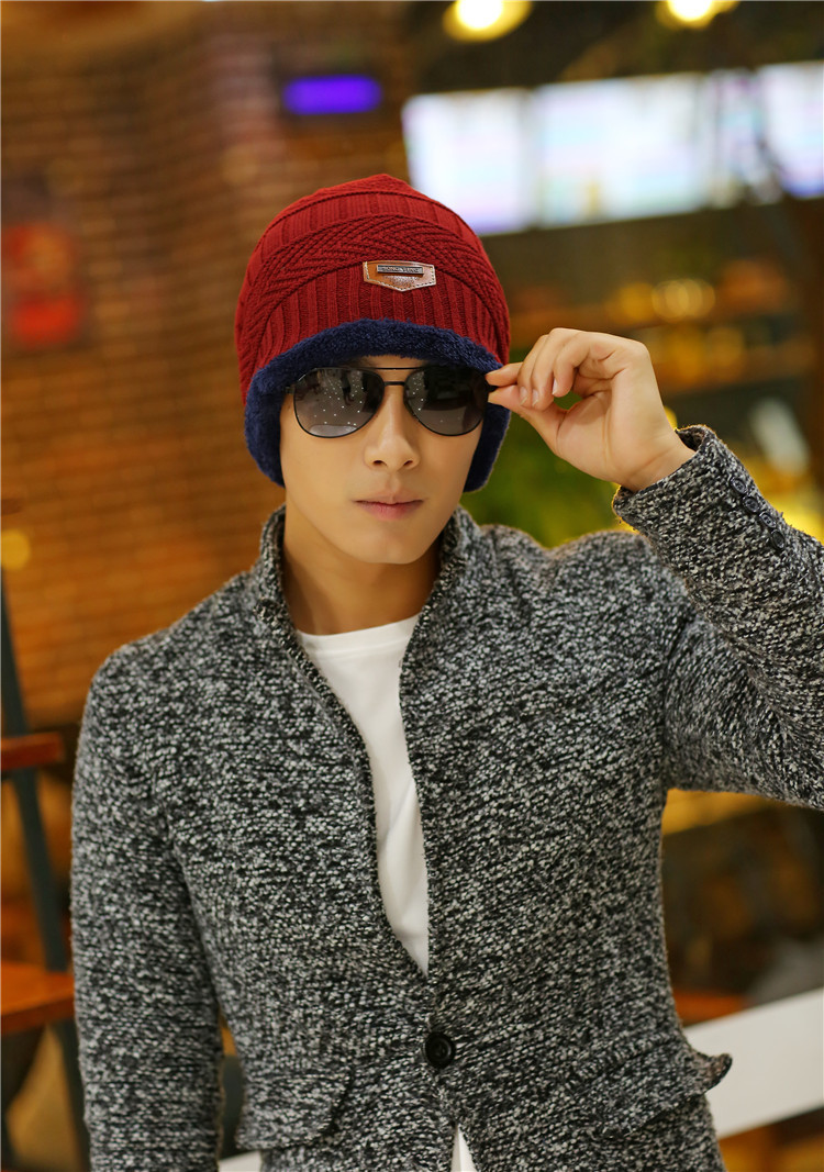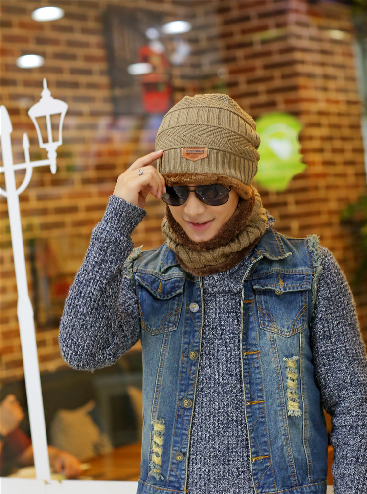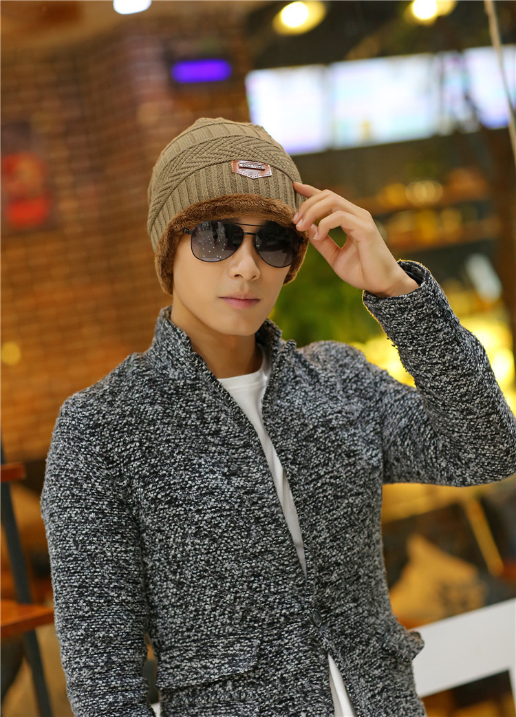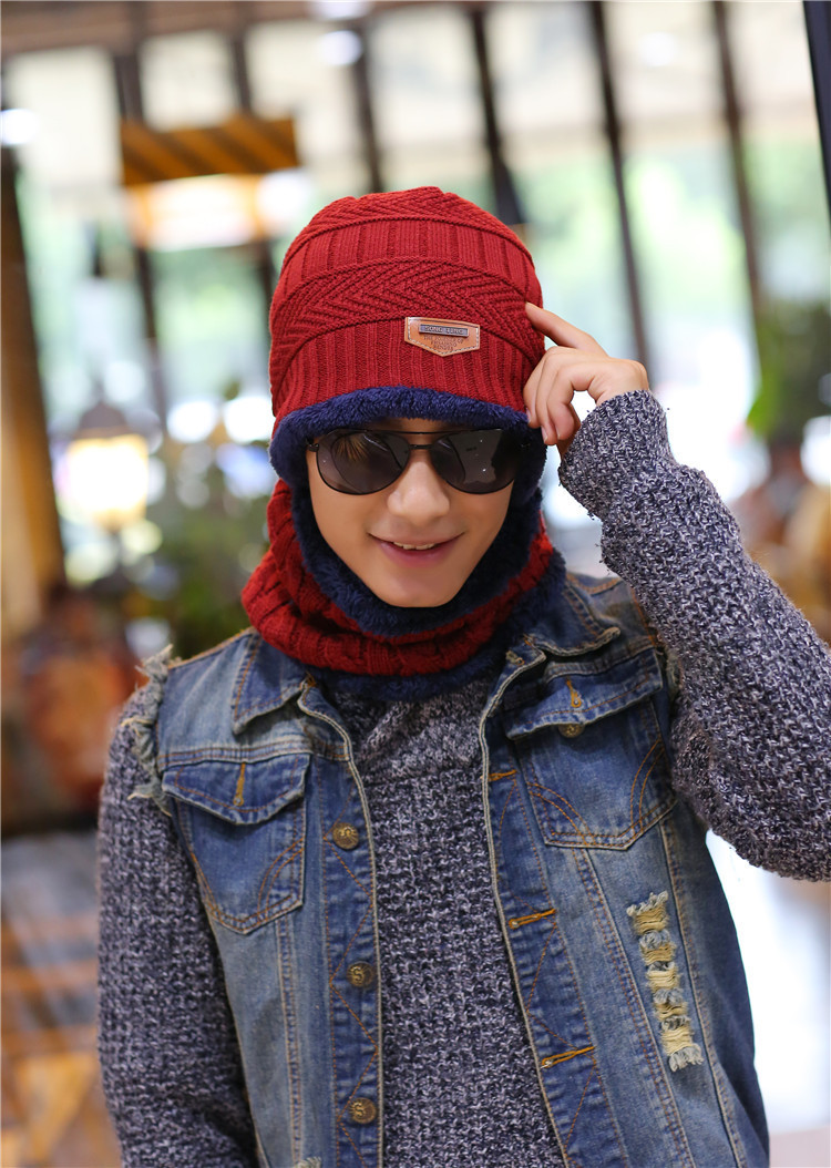 【针织帽男】冬季韩版毛线帽 加绒保暖针织帽套头帽男 男士围脖帽子潮