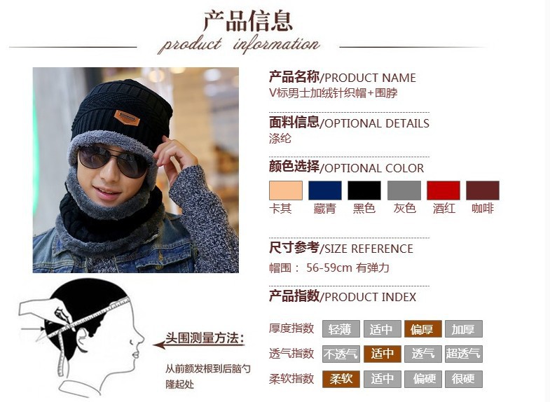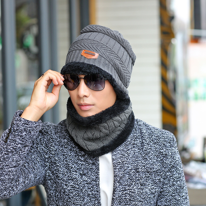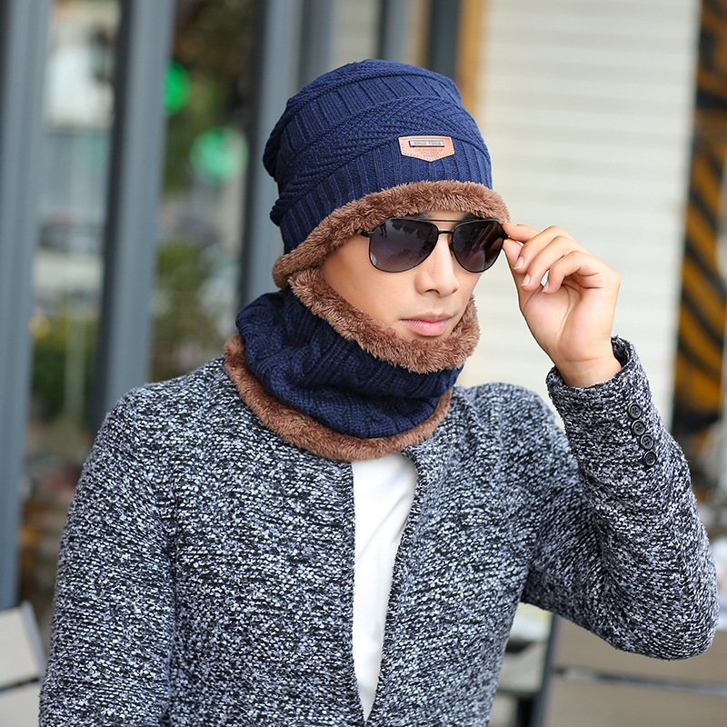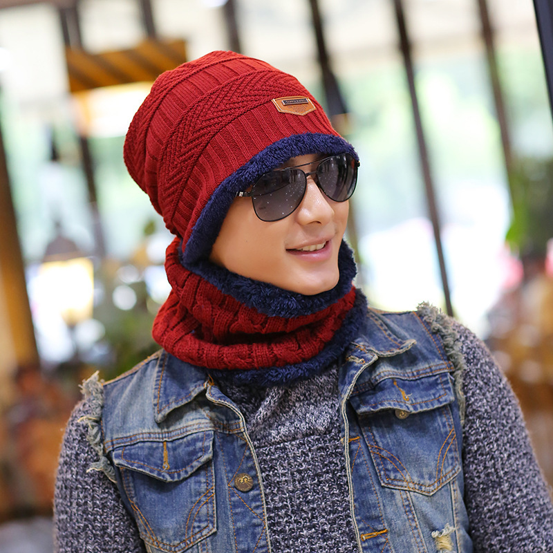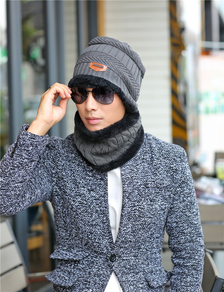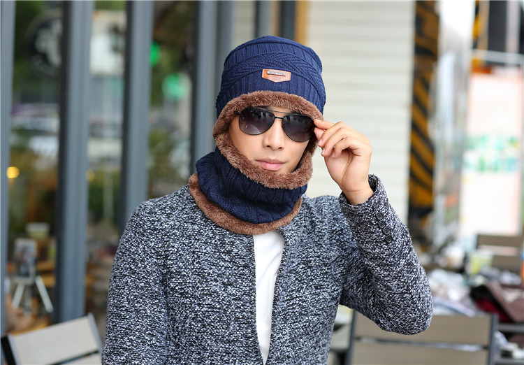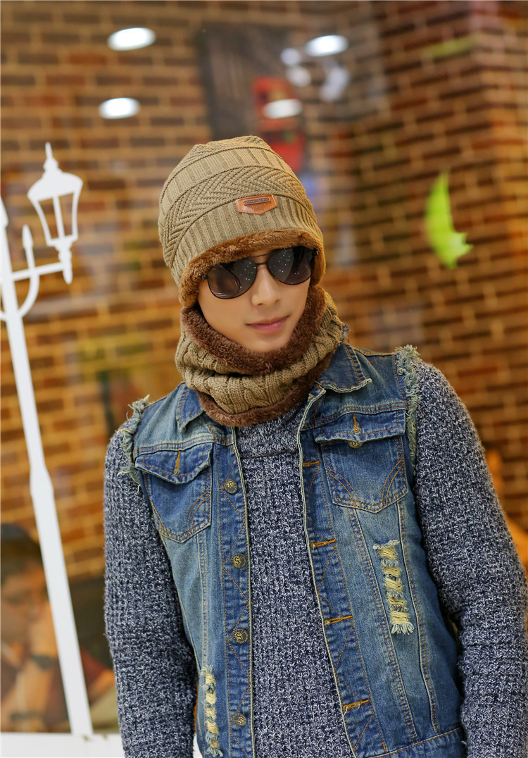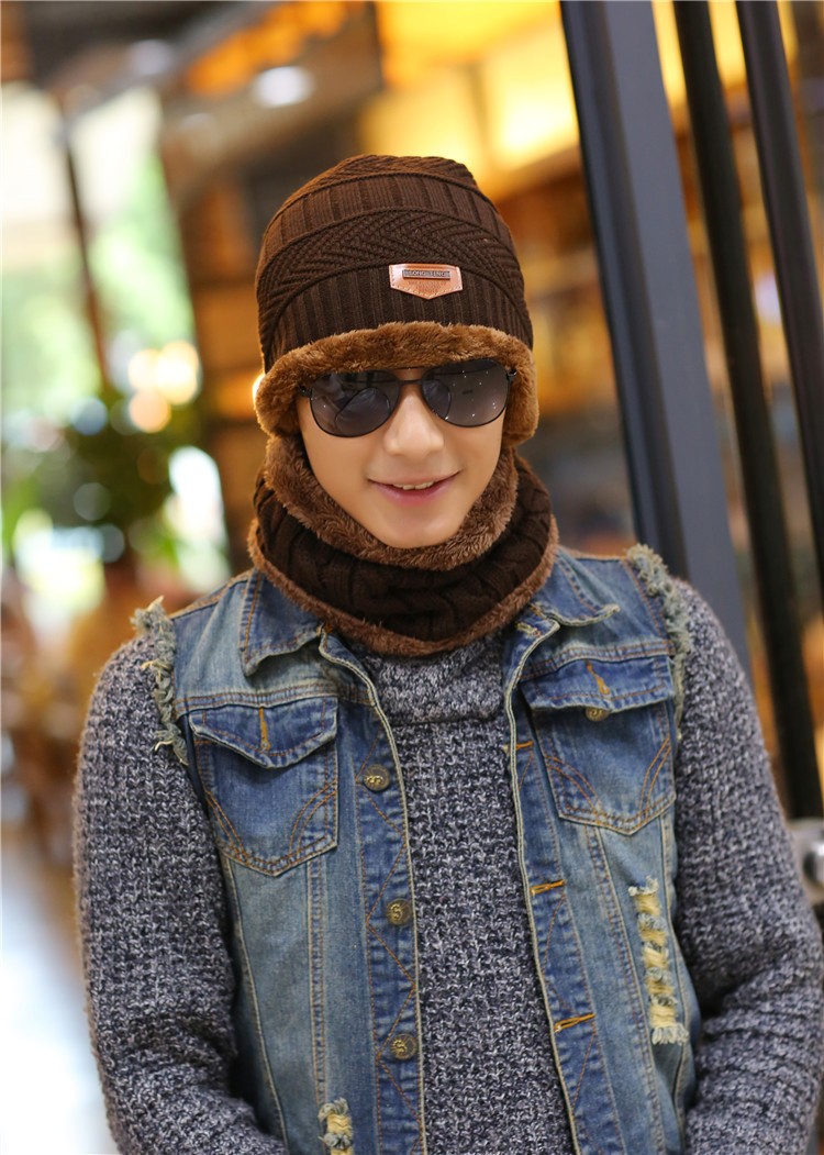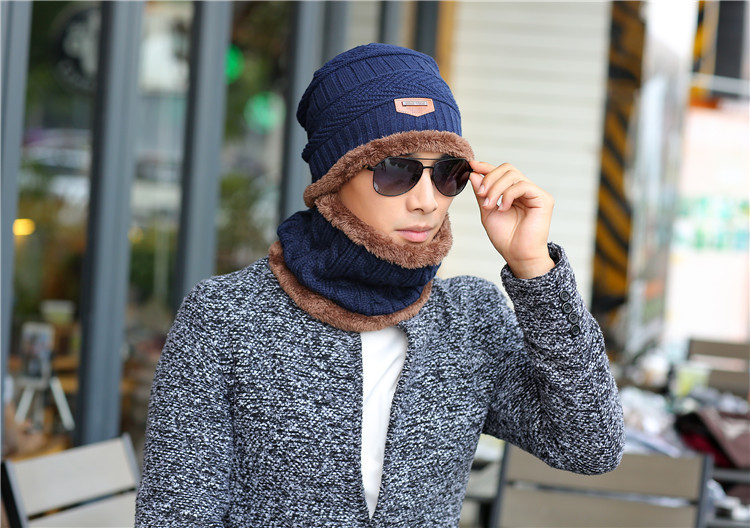 【针织帽男】冬季韩版毛线帽 加绒保暖针织帽套头帽男 男士围脖帽子潮