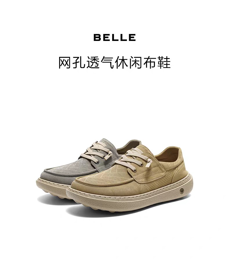 BF楼百丽男鞋厚底增高一脚蹬透气休闲布鞋男士26夏新商场款8WK02BM6