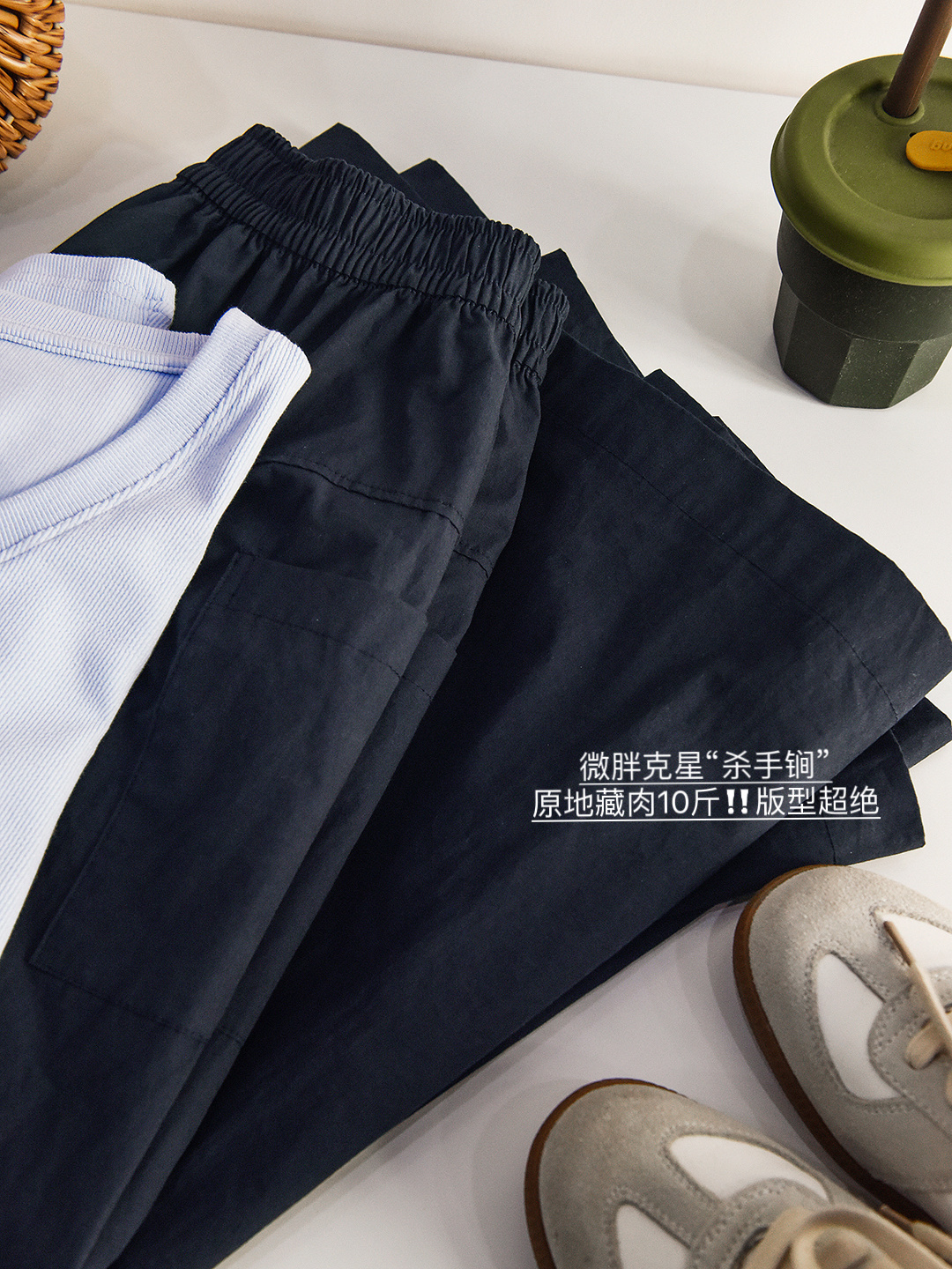 定织梭织超太棉面料,超轻薄经雾化水洗,自带肌理褶皱,0负重不吸腿挺括有型!!