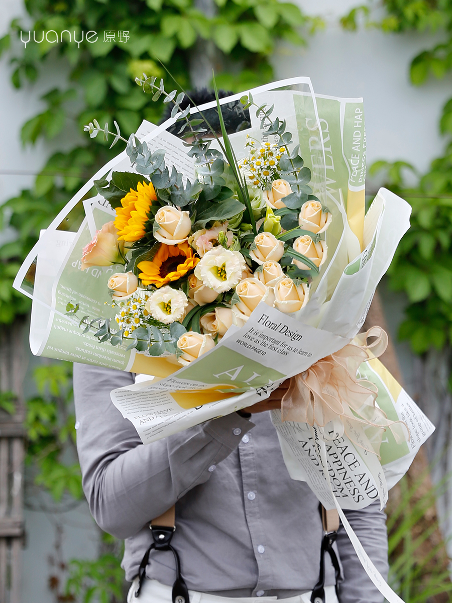 毕业高考花束【一举夺”魁“】向日葵香槟玫瑰桔梗韩式混搭花束