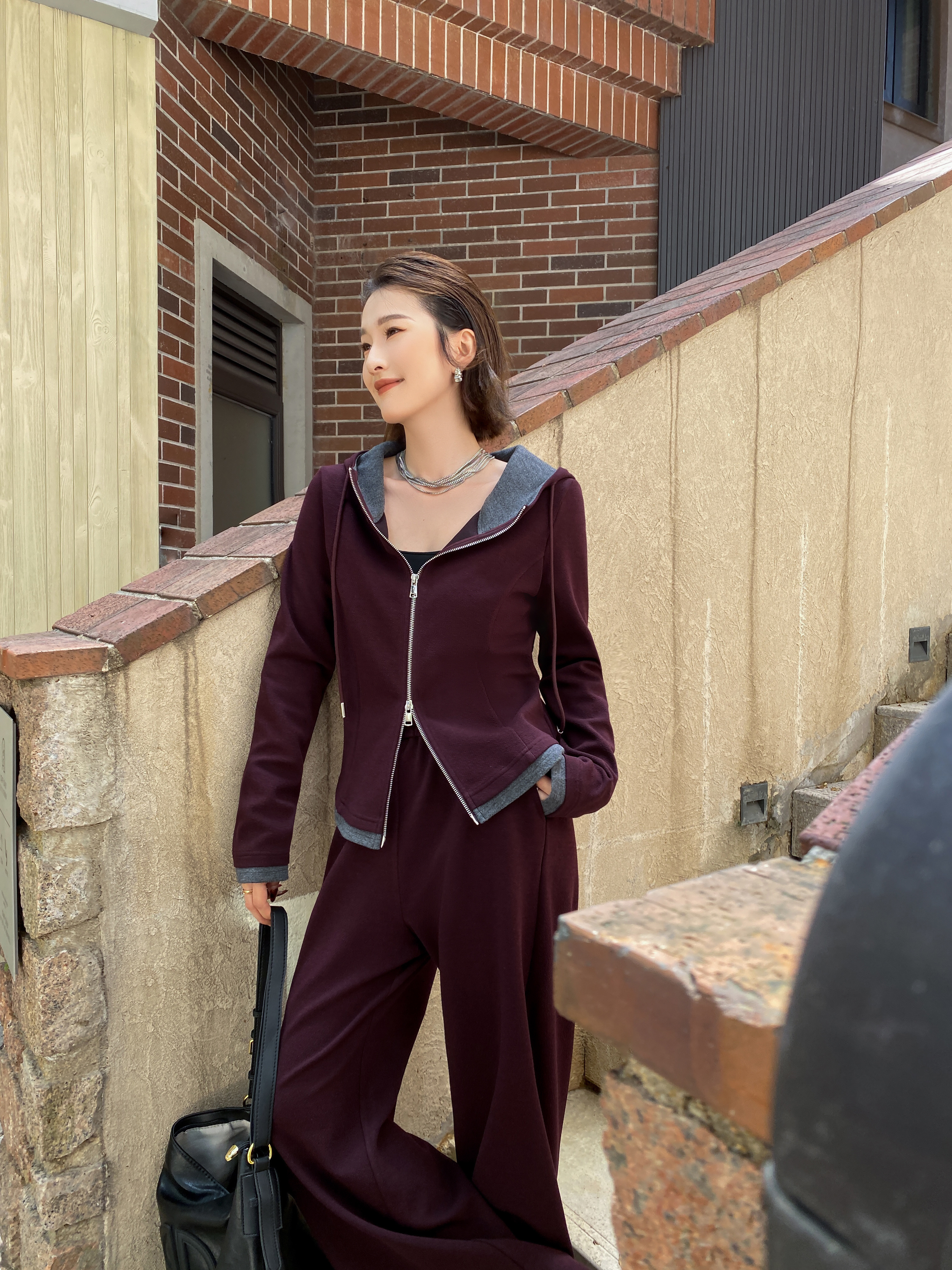 SZ3AL69_魏紫色_上衣_秋季_连帽半拉链宽松休闲长袖卫衣_高级女装_BERNIEELEN 伯妮斯茵