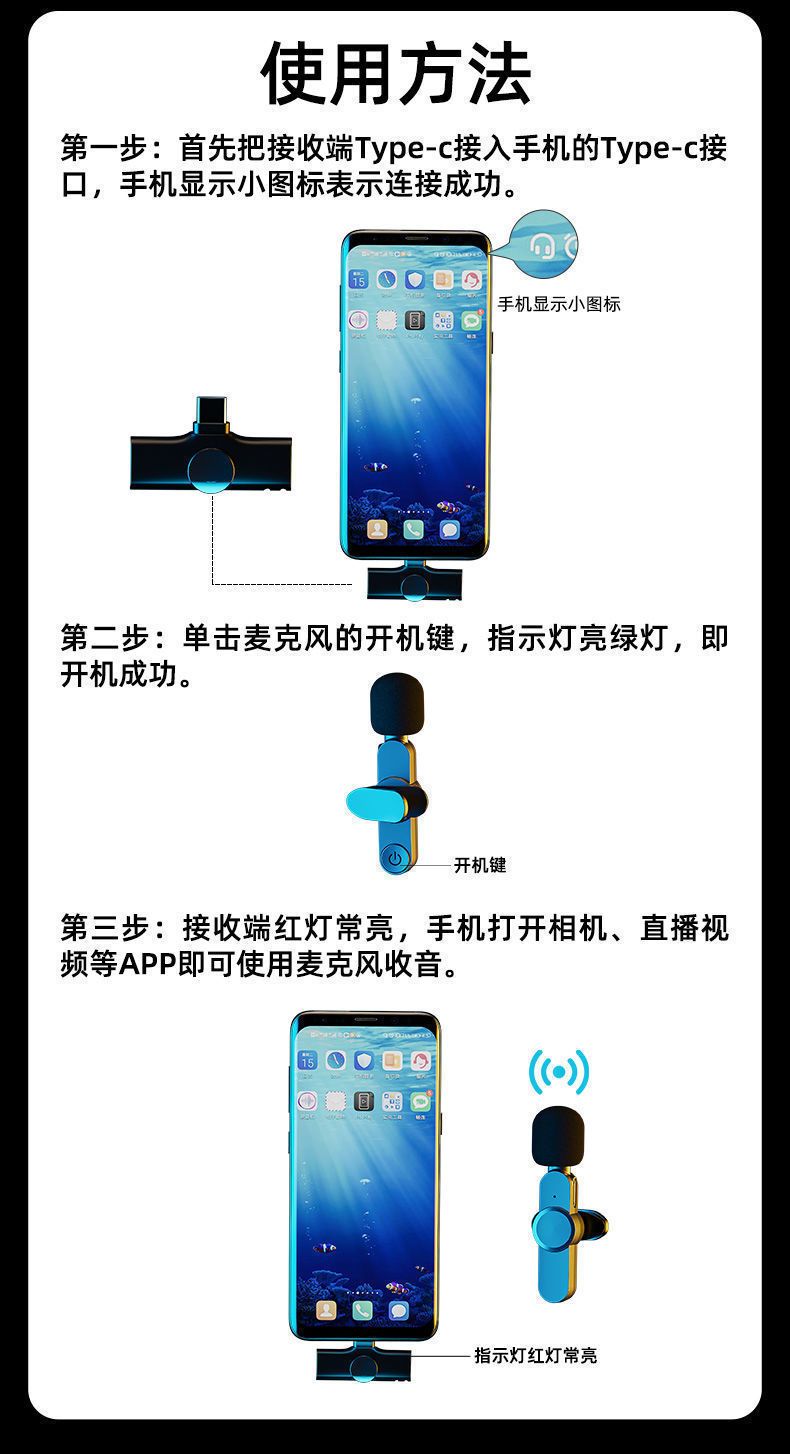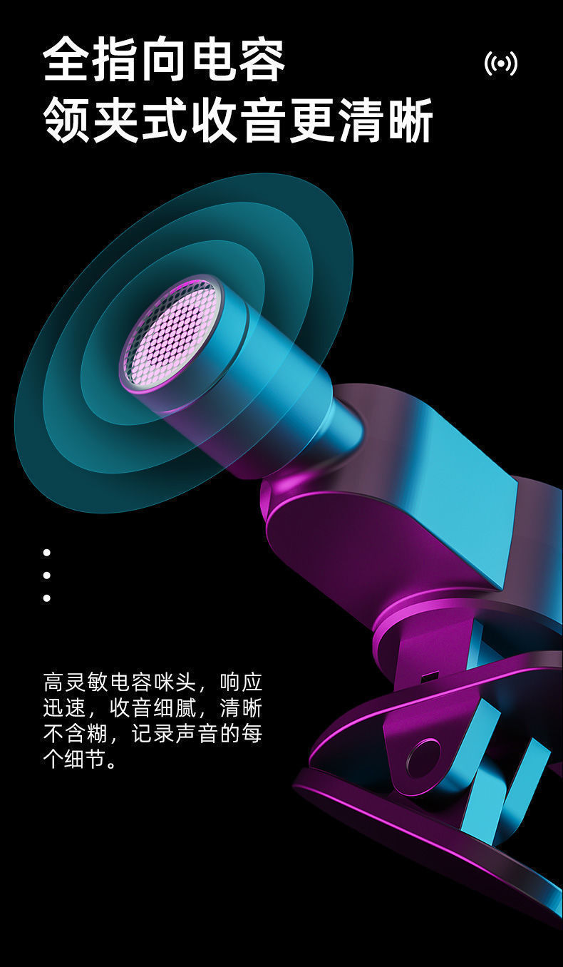 无线麦克风领夹式收音麦器直播主播录音设备夹领式网红吃播降噪麦