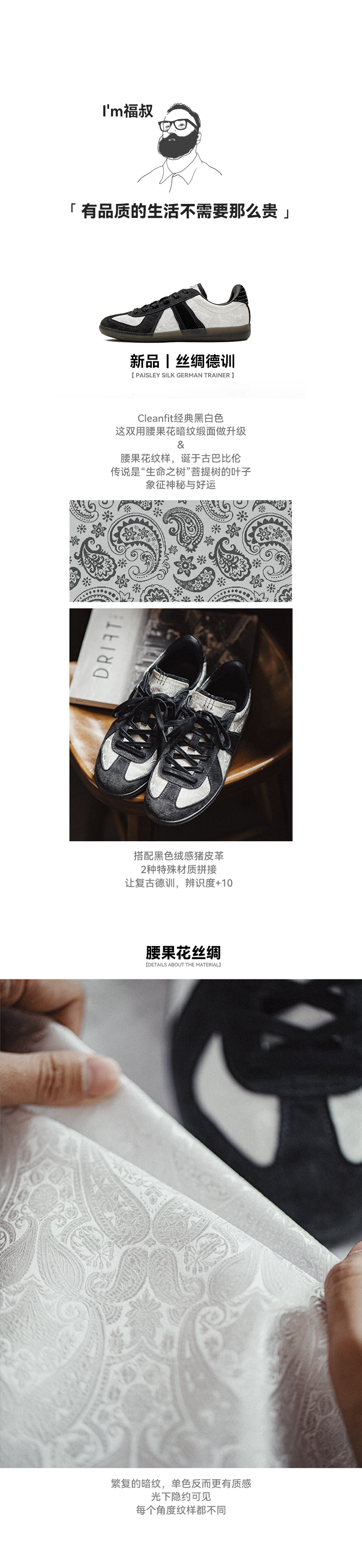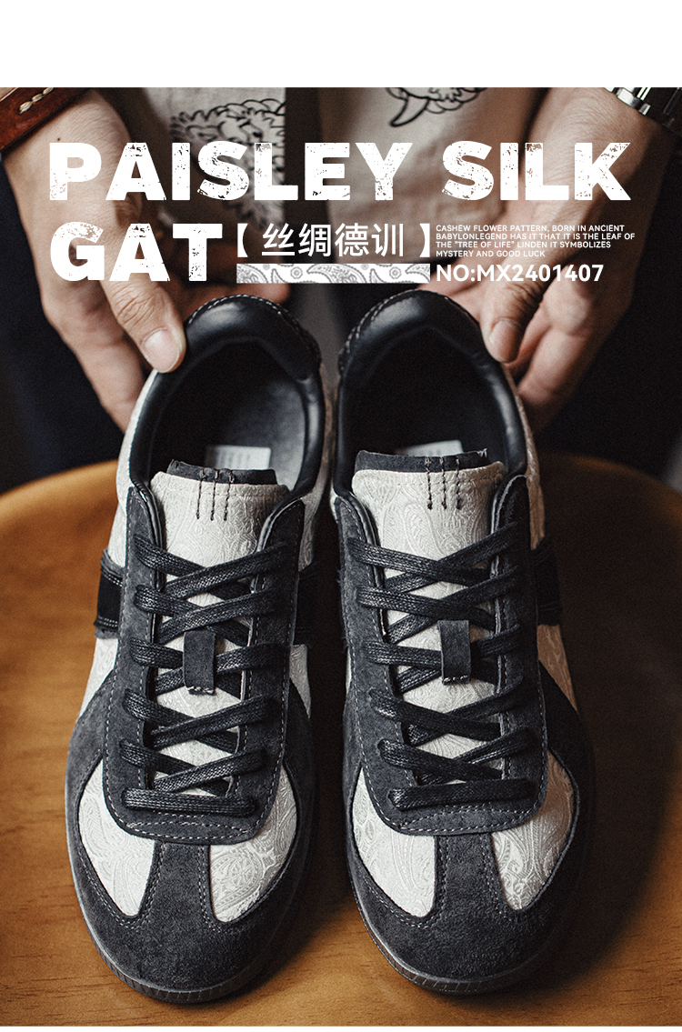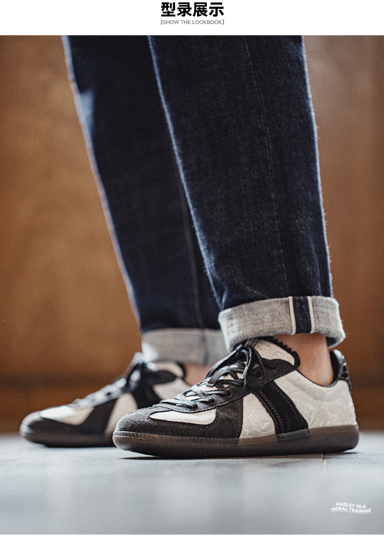 马登丝绸德训男夏季新款小众复古国潮风休闲运动百搭平底低帮板鞋