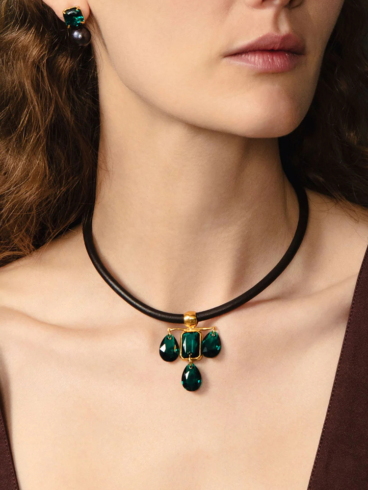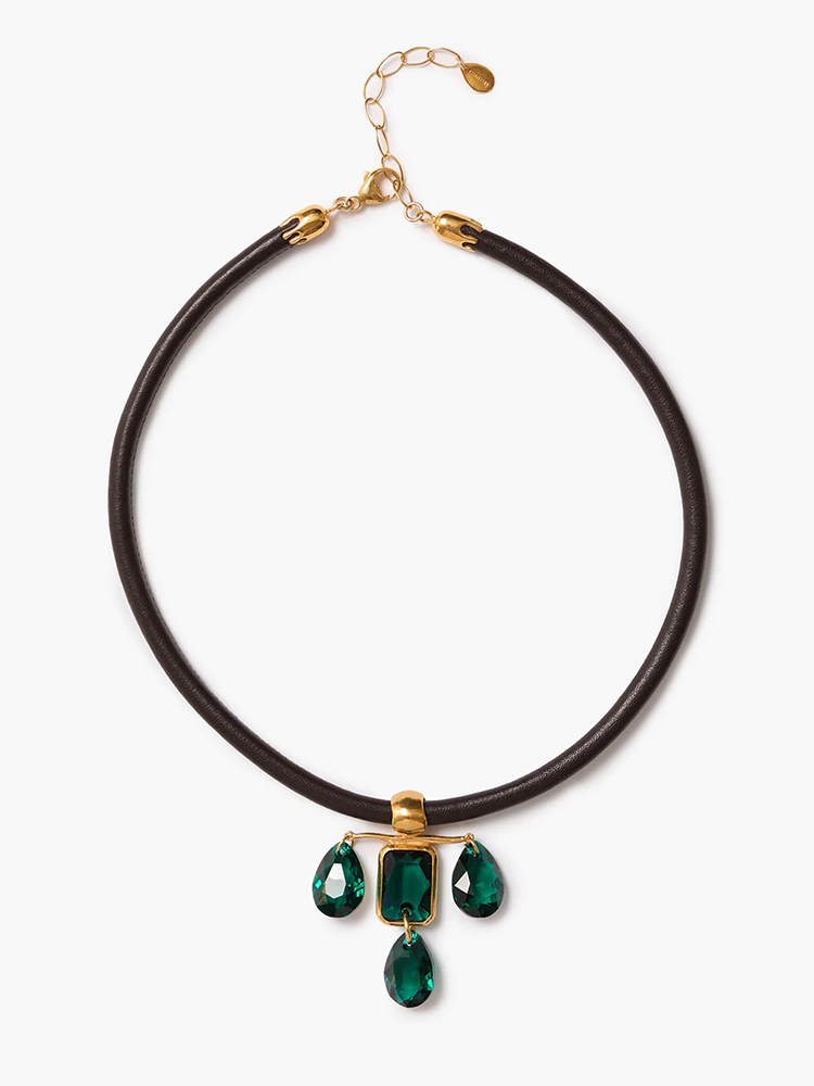 订购6周到|Chan Luu-CAROLINE-吊灯 祖母绿色 皮革 吊坠 项链[美国设计师]