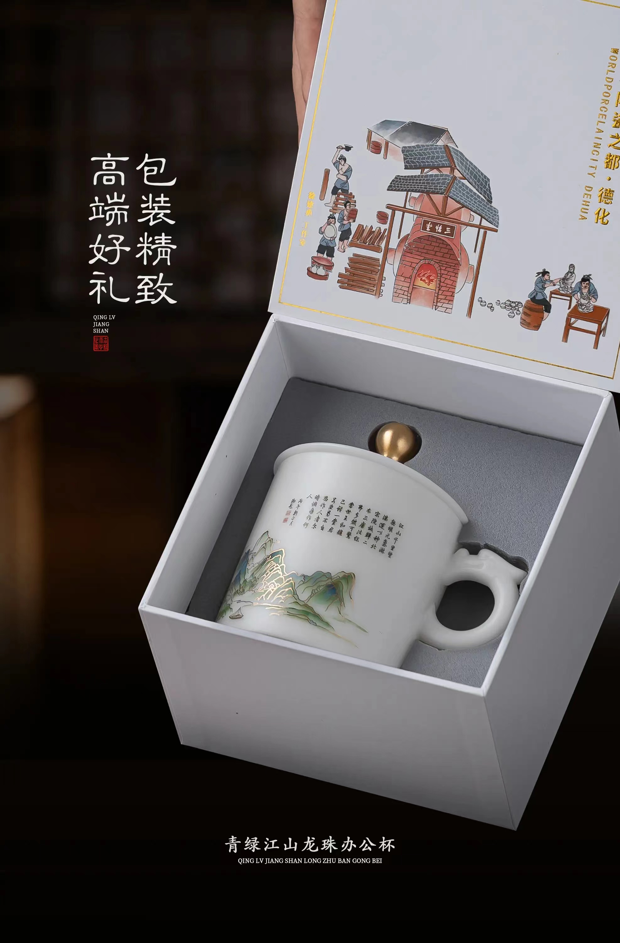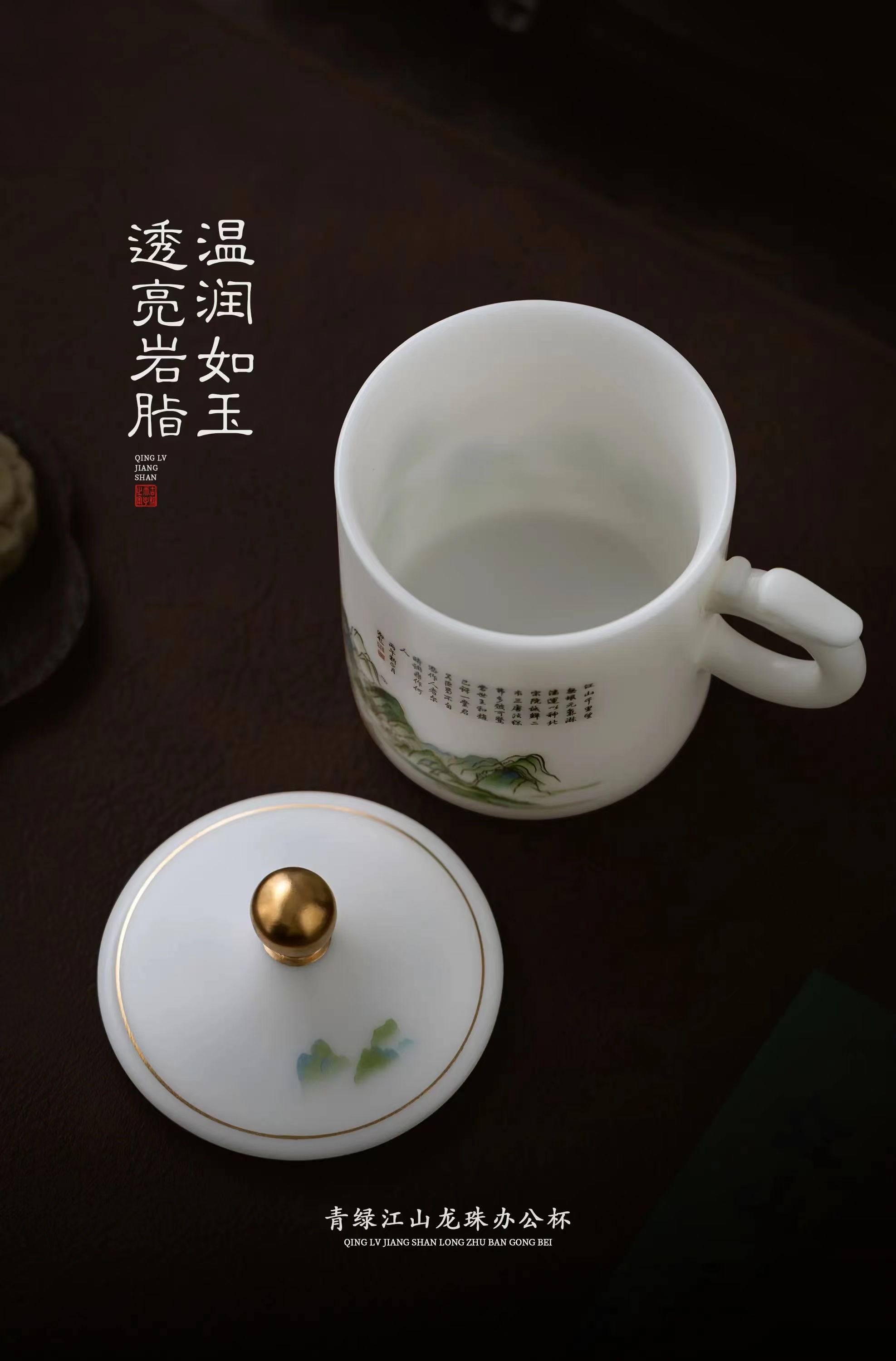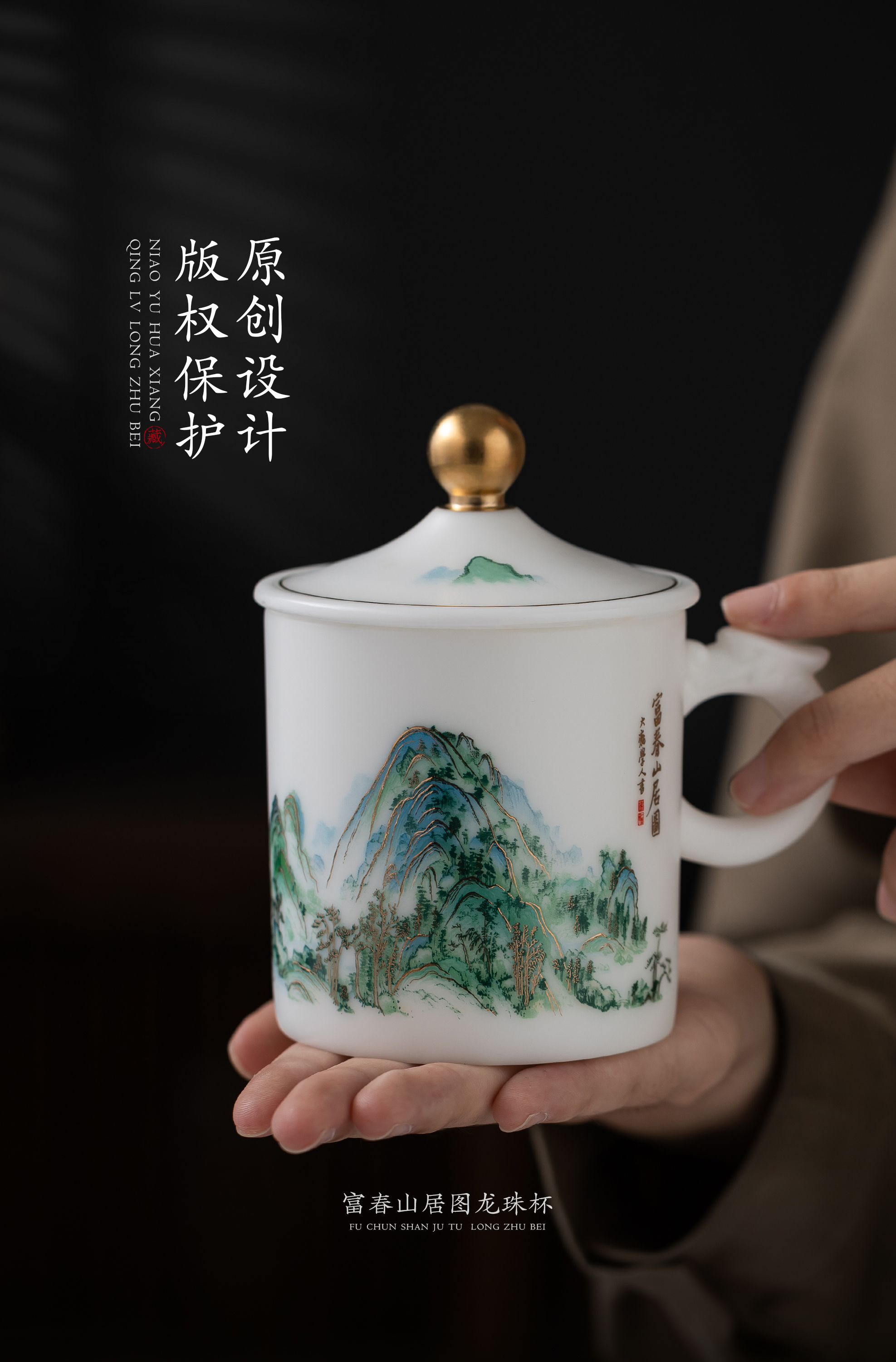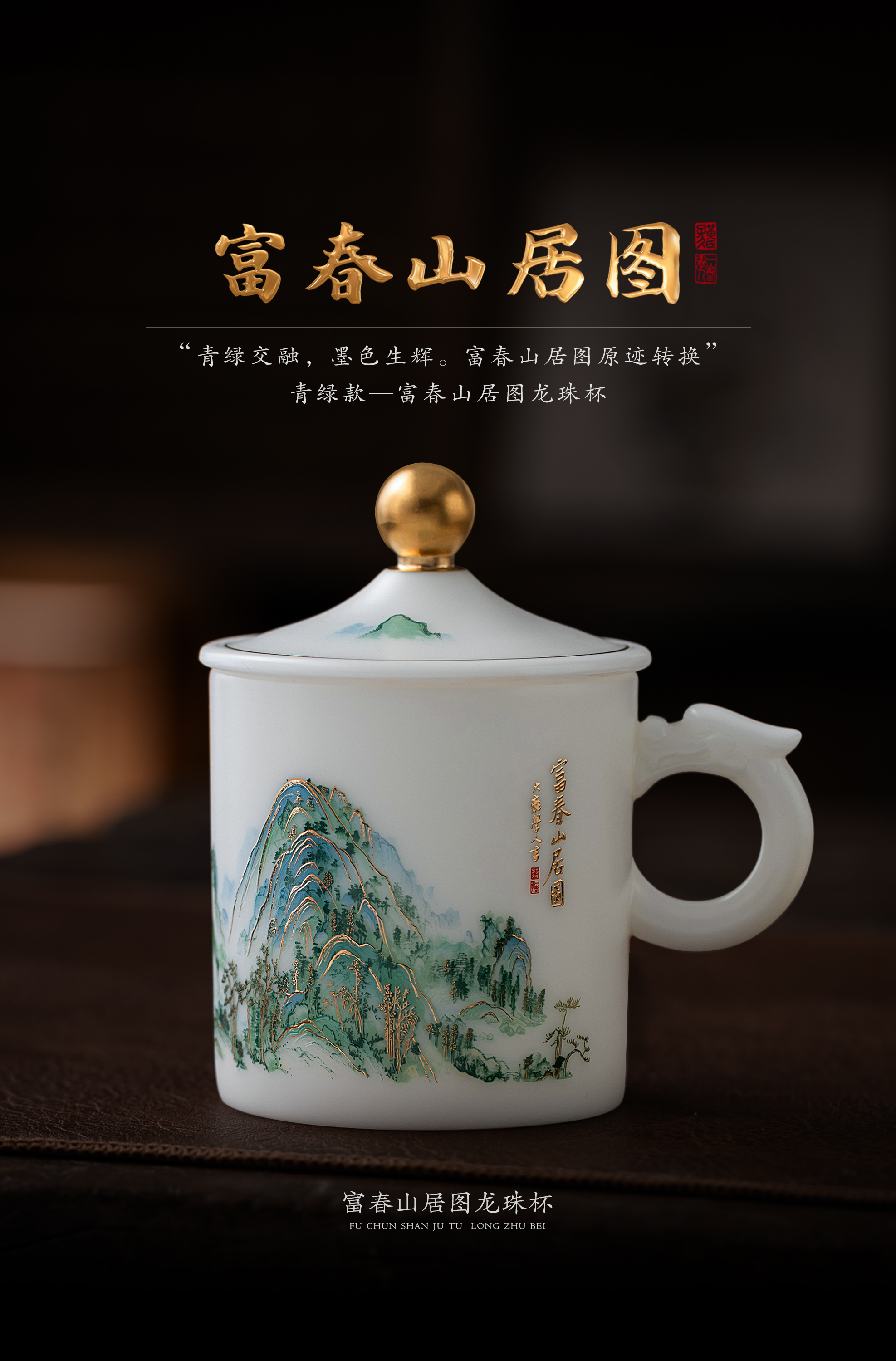 【千里江山图VS富春山居图】冰种玉瓷龙珠办公杯,堆金工艺 触感立体,温润通透 精工复刻,包装精致 gao端好礼