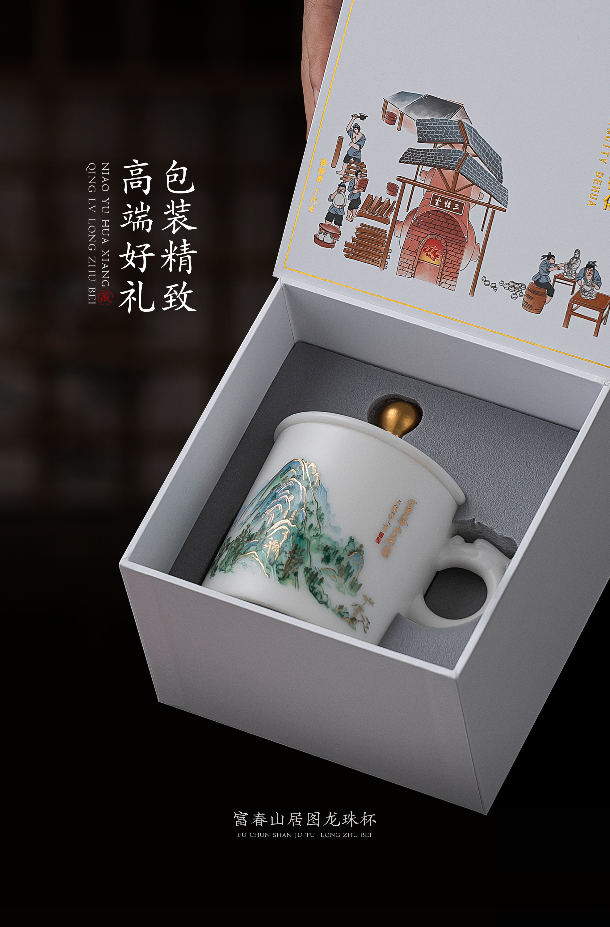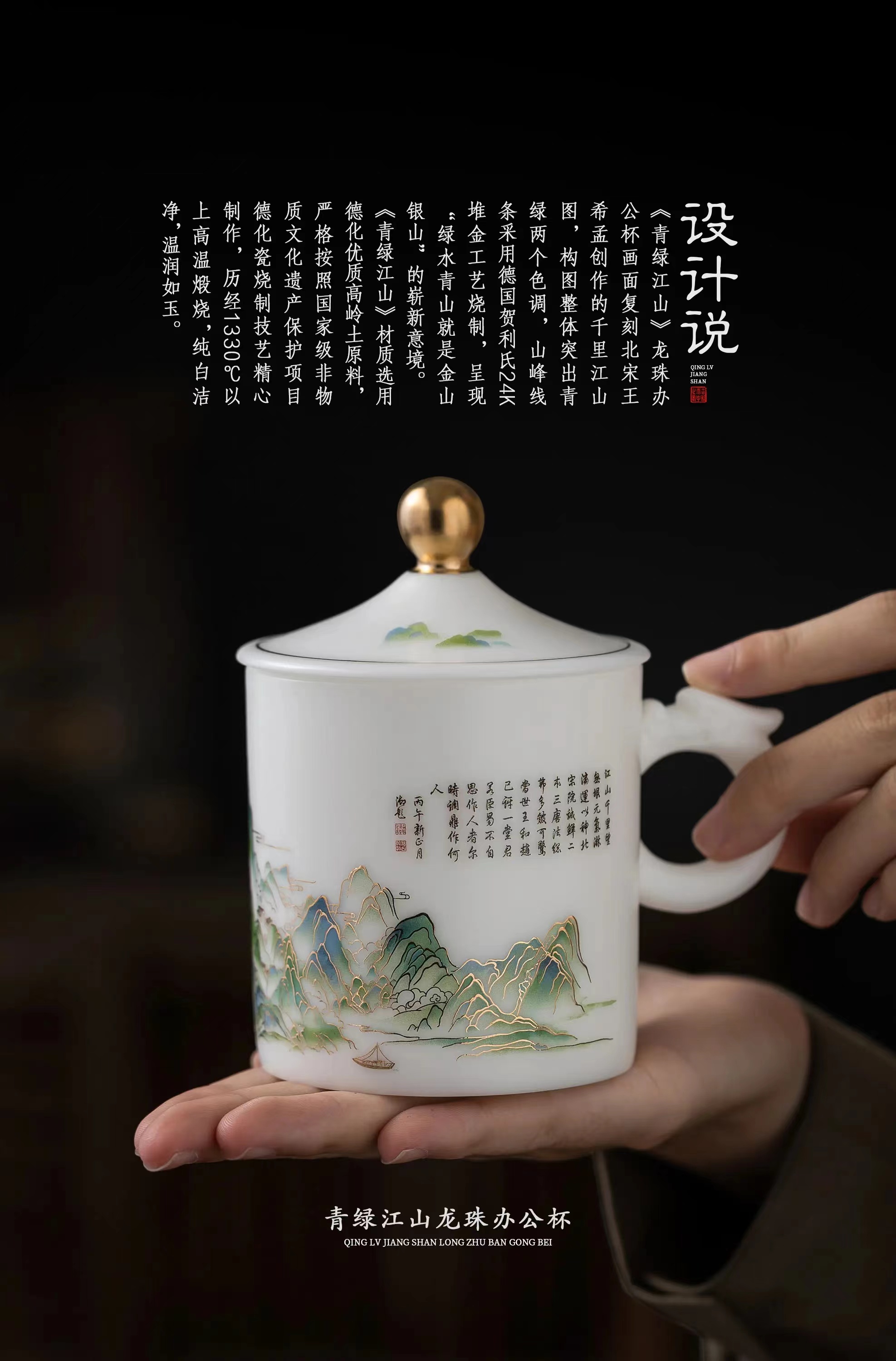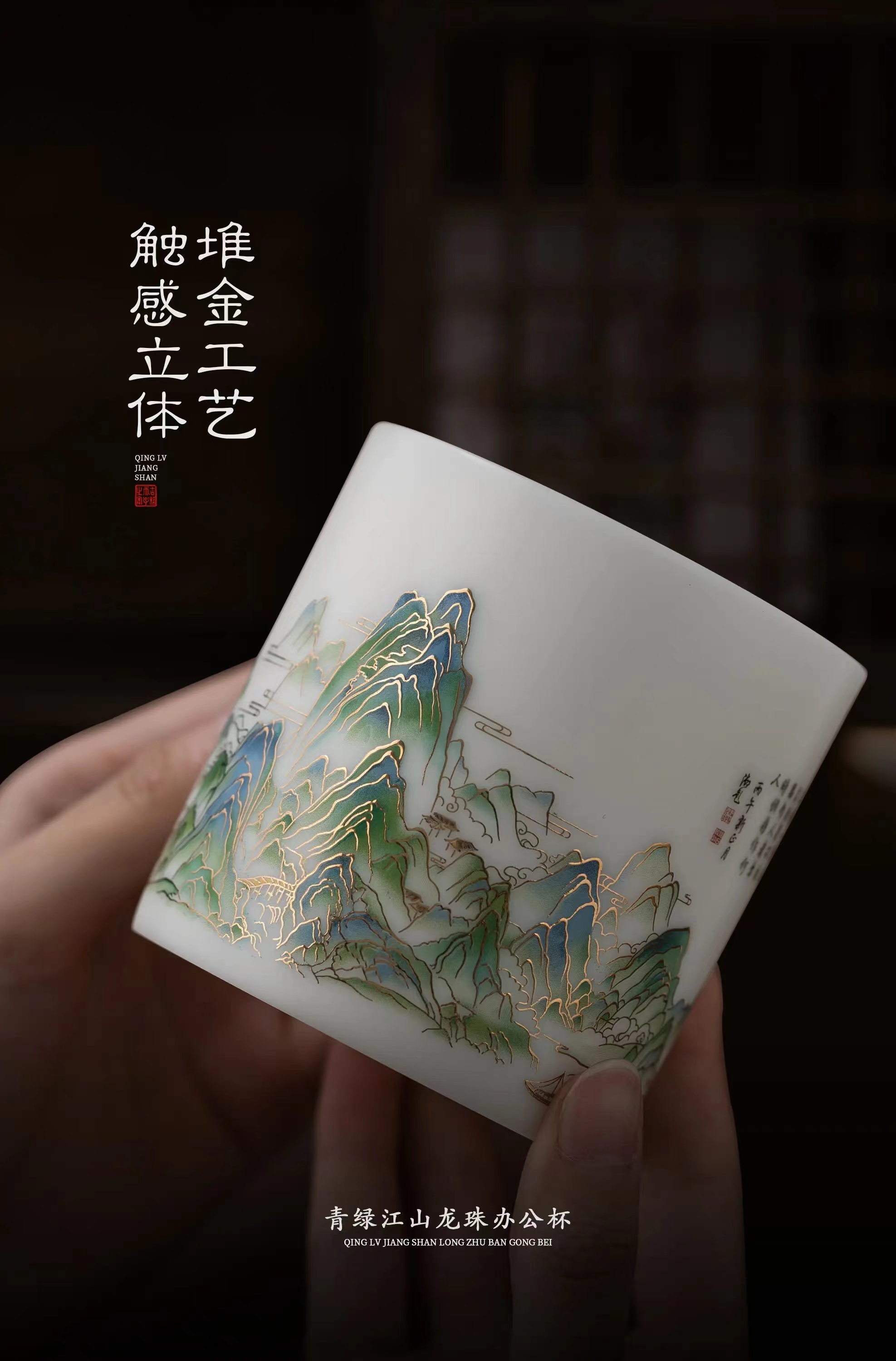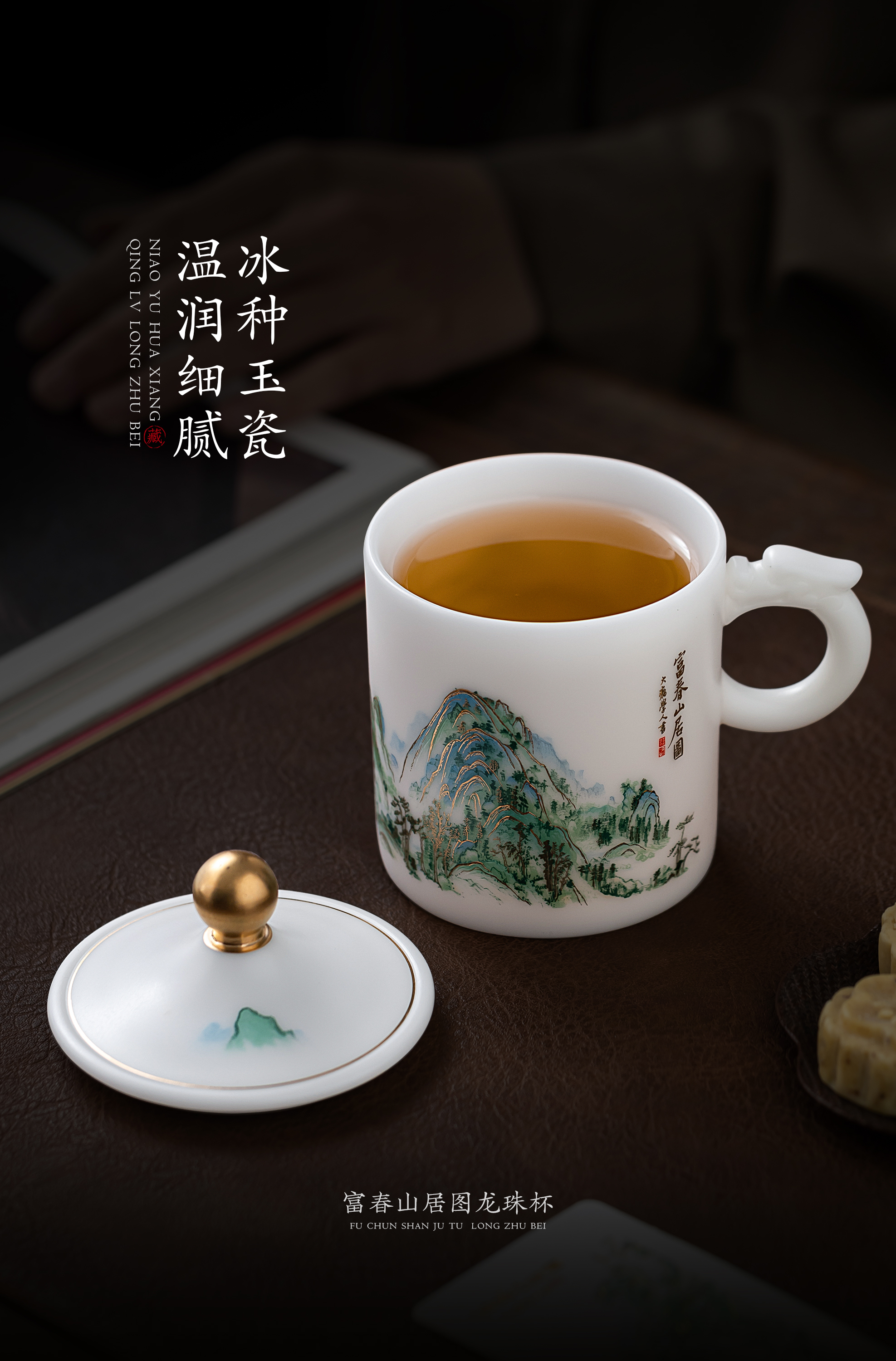 【千里江山图VS富春山居图】冰种玉瓷龙珠办公杯,堆金工艺 触感立体,温润通透 精工复刻,包装精致 gao端好礼