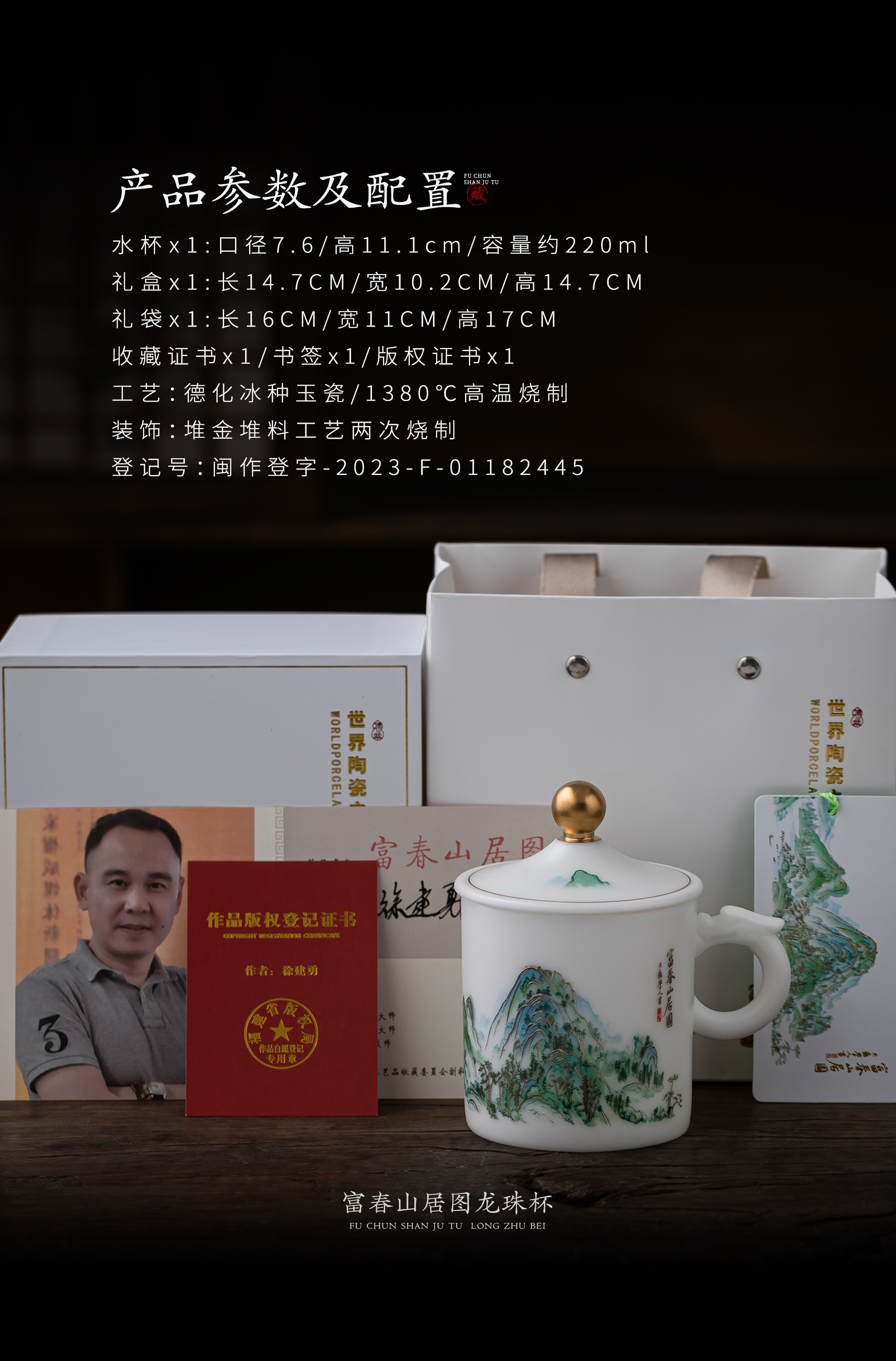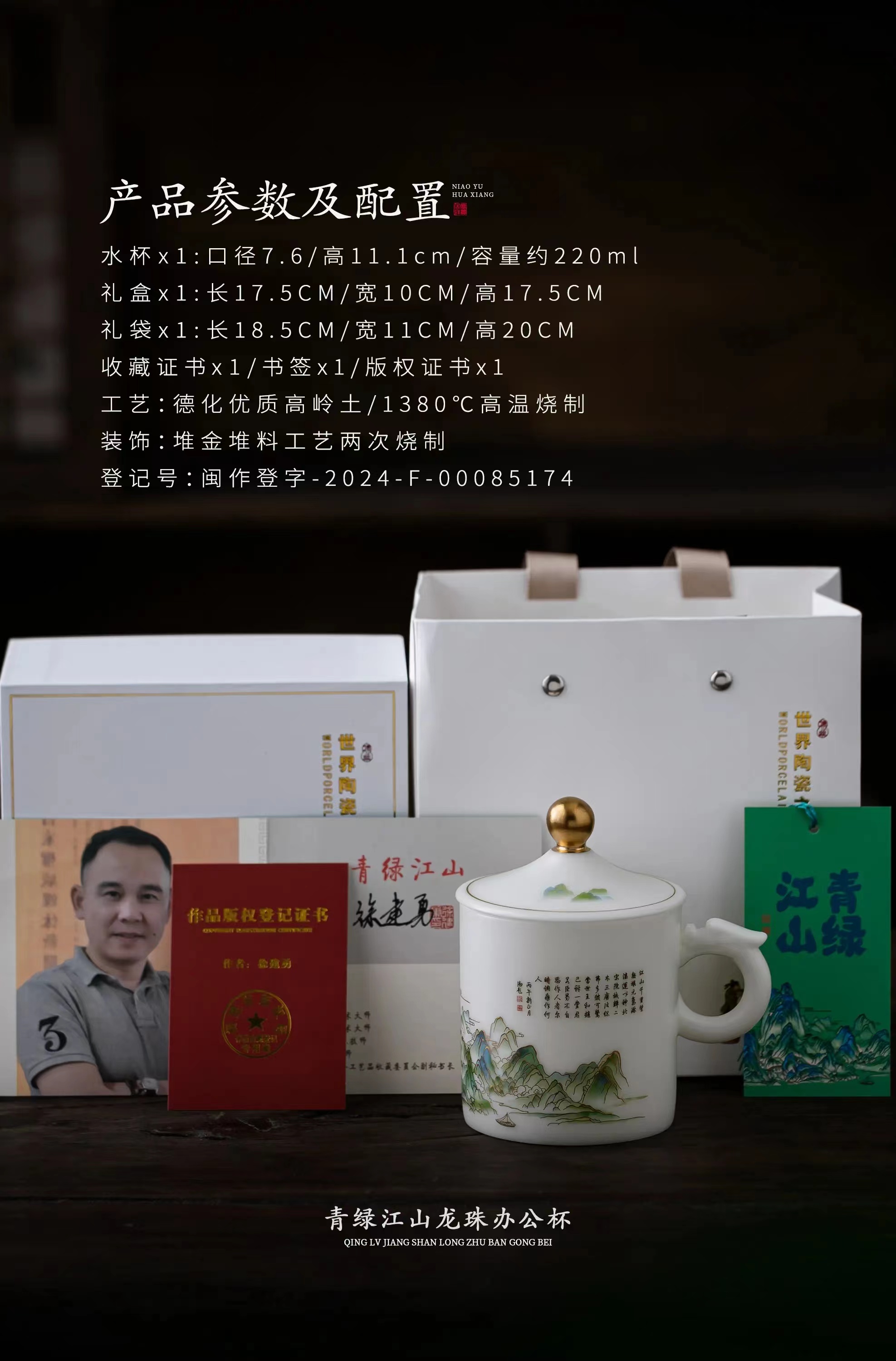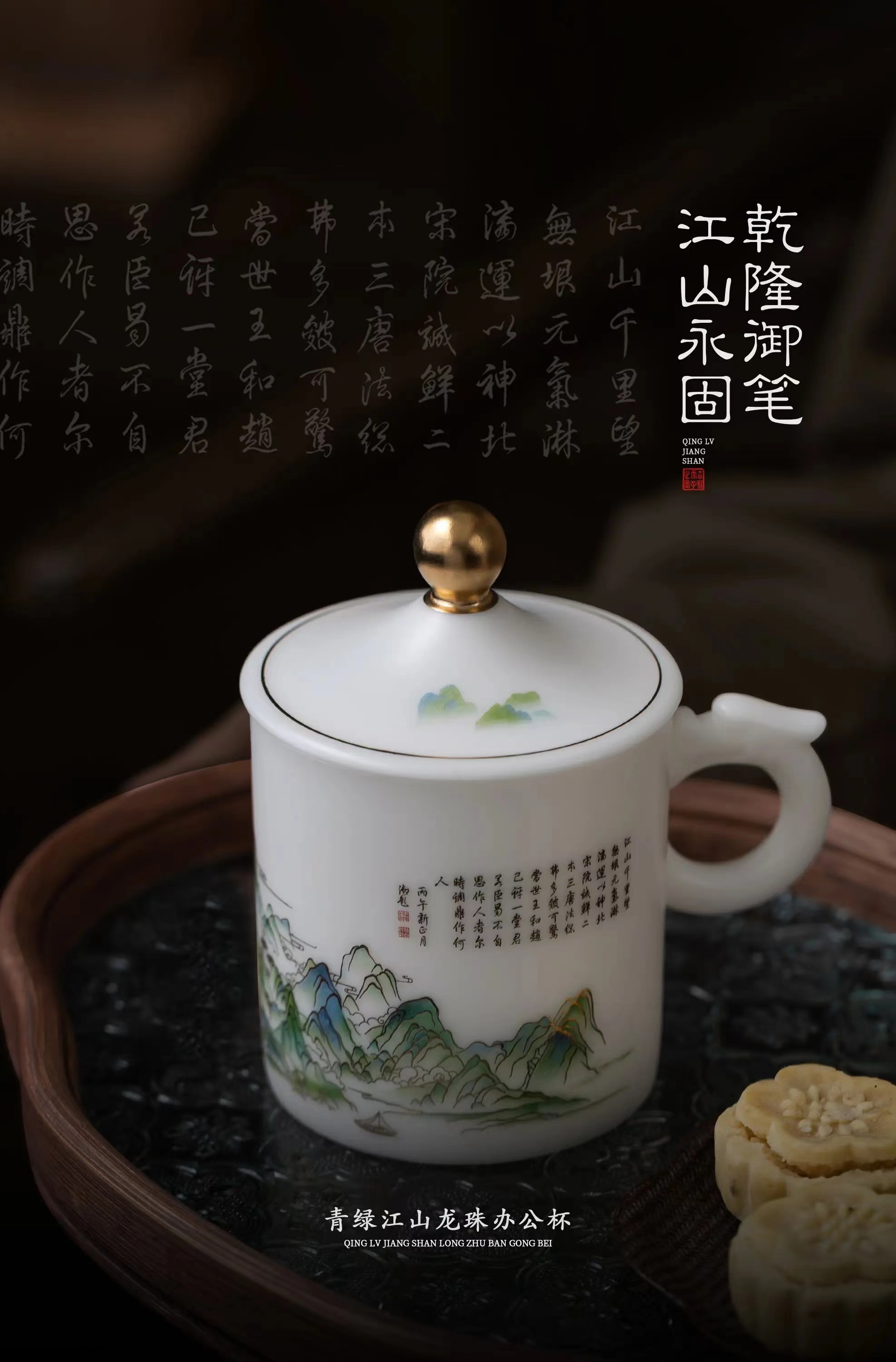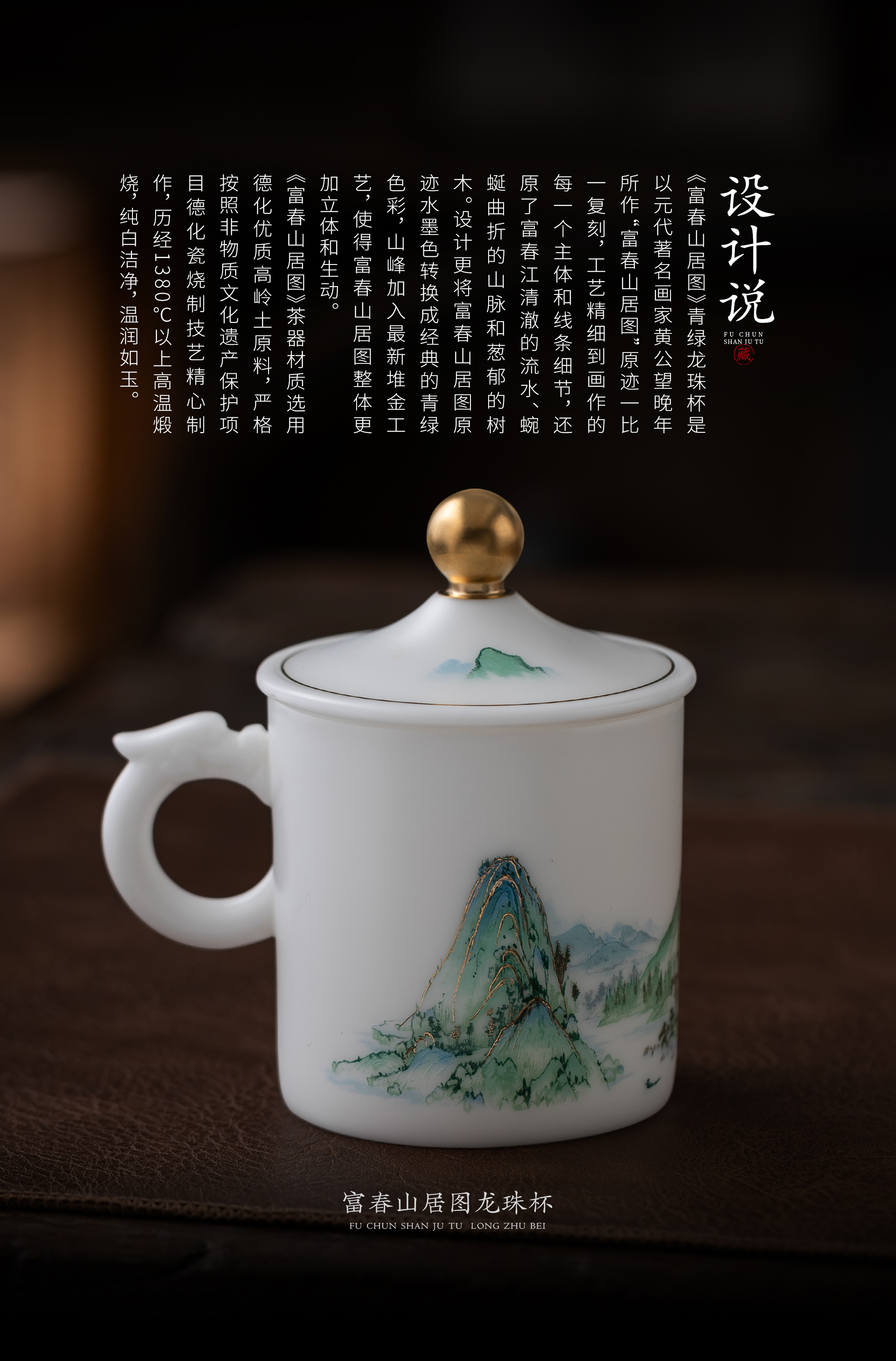 【千里江山图VS富春山居图】冰种玉瓷龙珠办公杯,堆金工艺 触感立体,温润通透 精工复刻,包装精致 gao端好礼