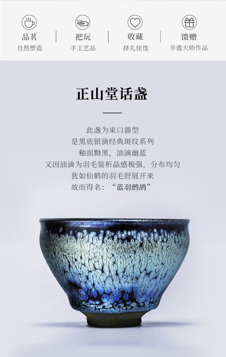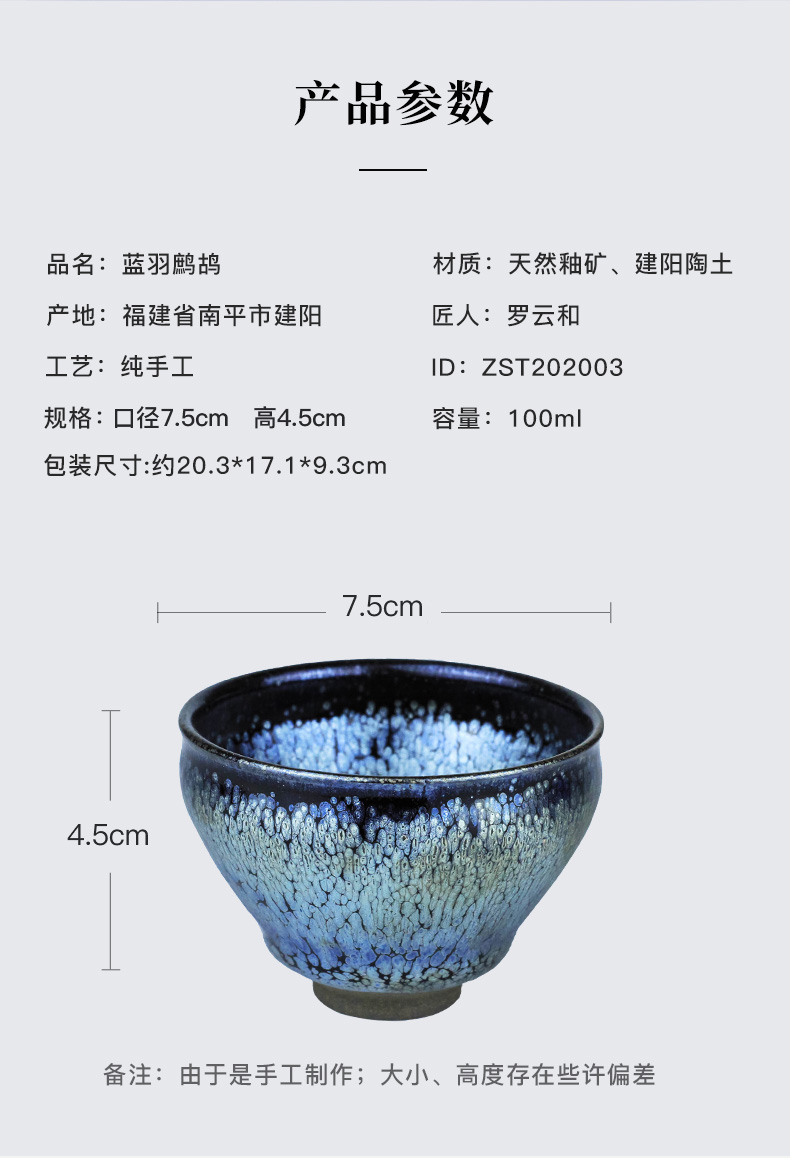 正山堂蓝羽鹧鸪建盏纯手工100ml 品茗杯 茶杯 主人杯 建阳茶具