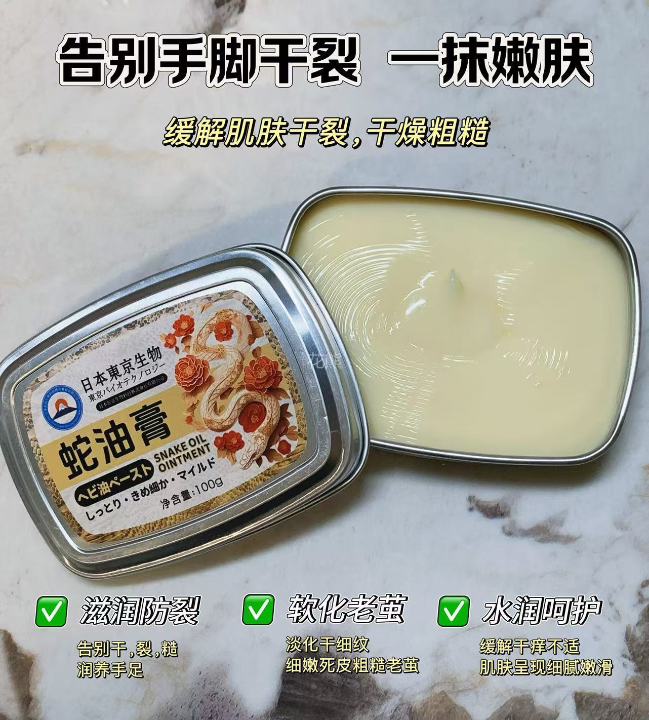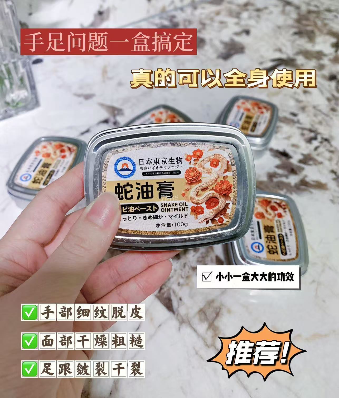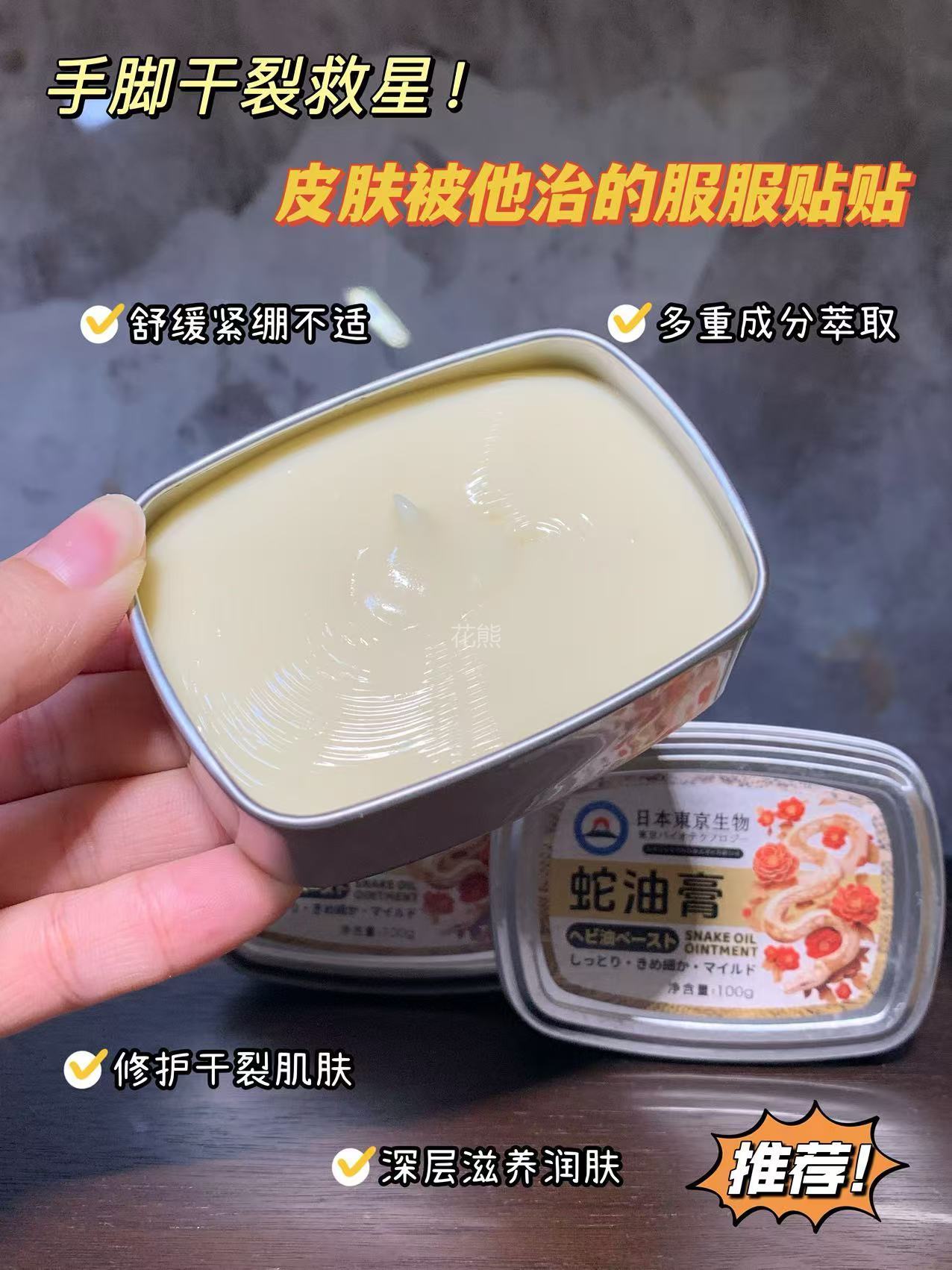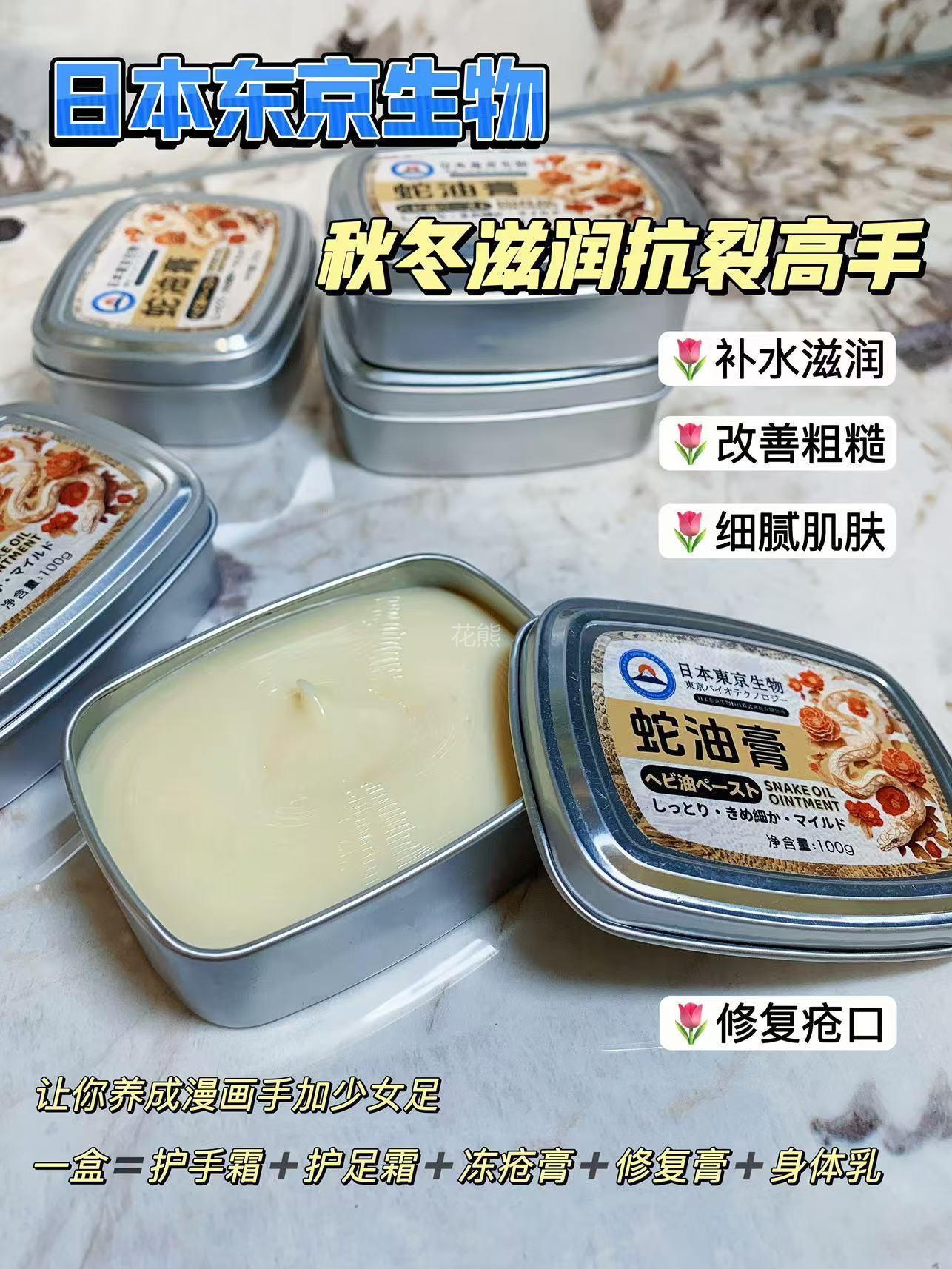 秋冬抗裂扛把子【日本東京生物蛇油 膏】 手脚容易干裂、皴裂、长冻疮的,一定要用!1罐=身体乳十护手霜“护足霜-冻疮膏精粹蛇油多重植物配方,温和不刺激!奶油霜状质地,味道清新,好推开好吸收