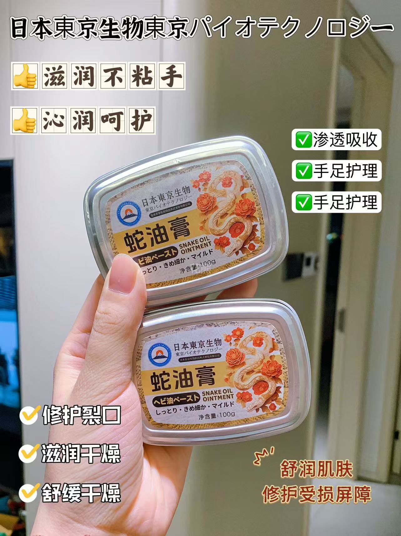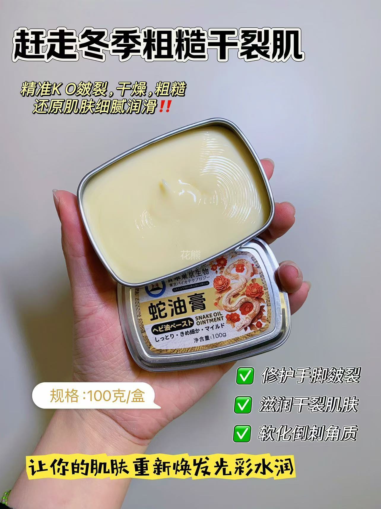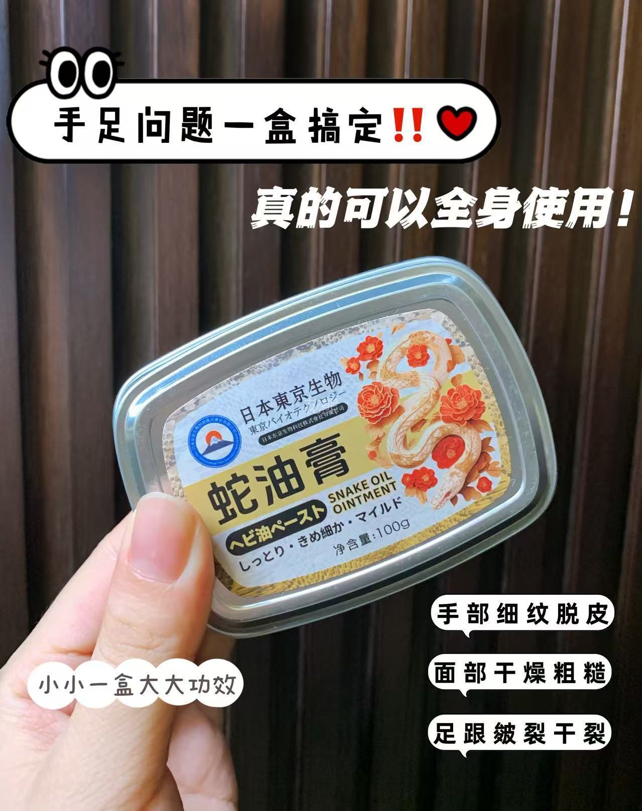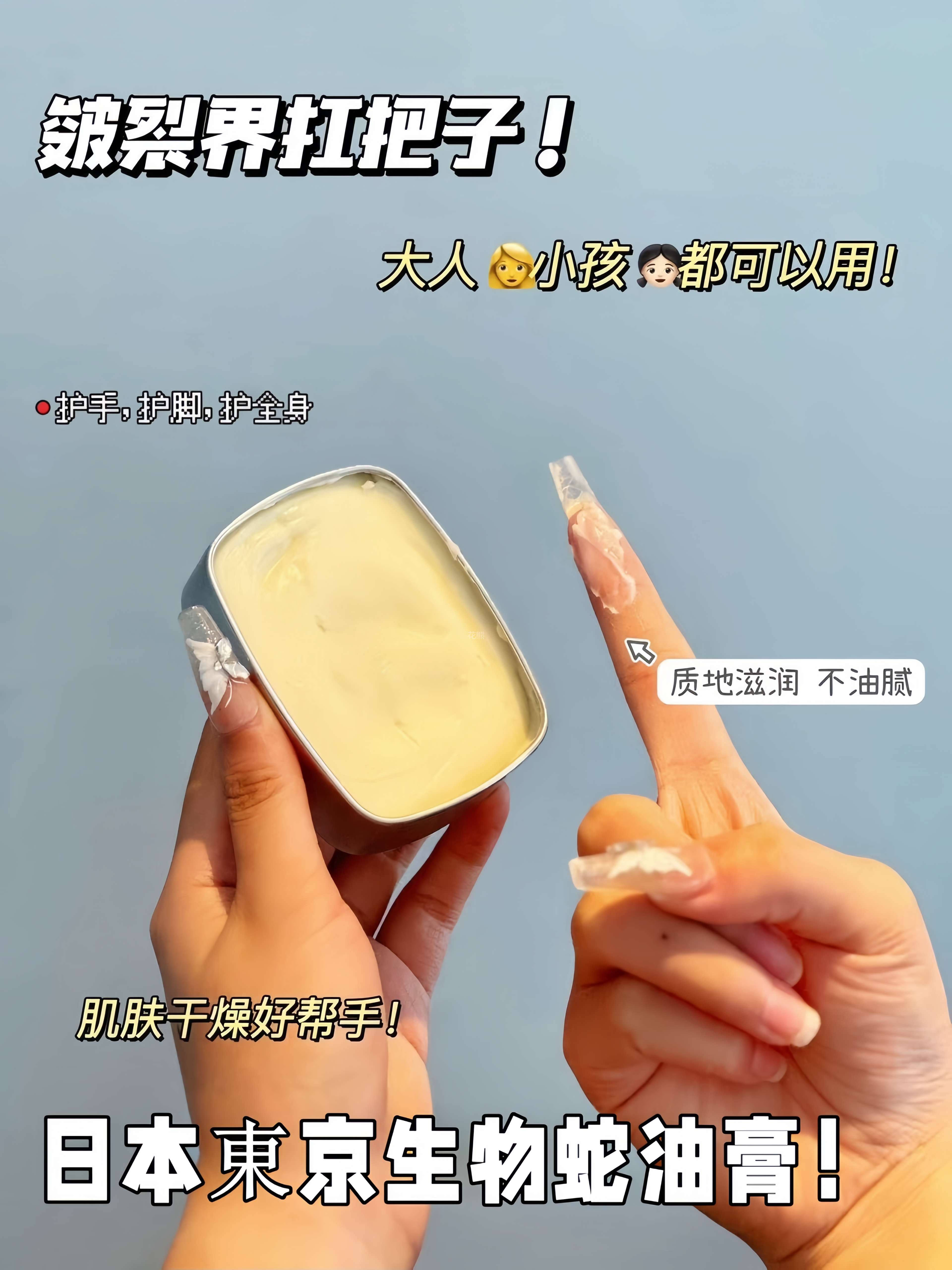秋冬抗裂扛把子【日本東京生物蛇油 膏】 手脚容易干裂、皴裂、长冻疮的,一定要用!1罐=身体乳十护手霜“护足霜-冻疮膏精粹蛇油多重植物配方,温和不刺激!奶油霜状质地,味道清新,好推开好吸收