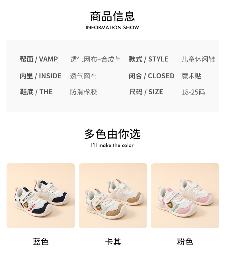 G.DUCK.HAL小黄鸭女童机能鞋幼儿园宝宝鞋子软底防滑轻便网面透气男童学步鞋QCSM008.18-25