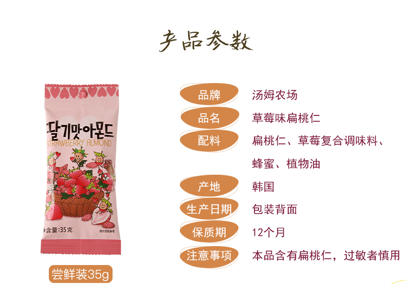 汤姆农场草莓味扁桃仁35g