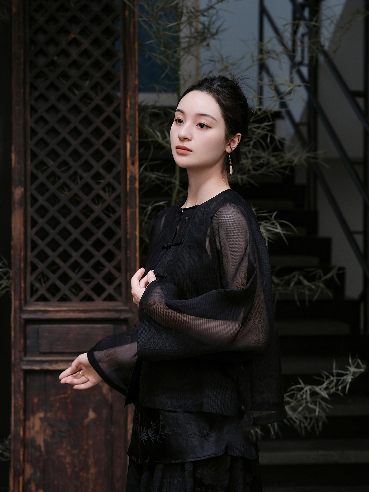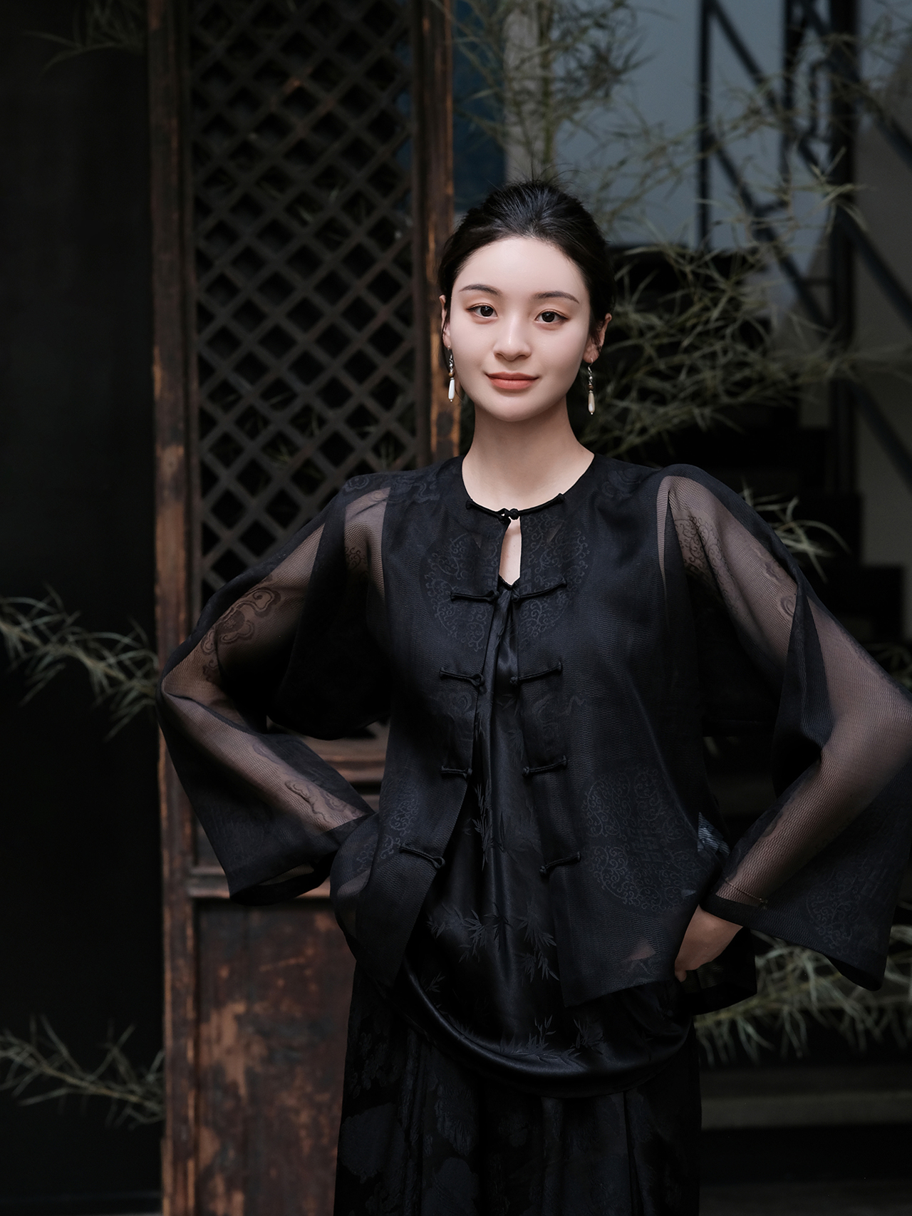 盛唐牡丹 |古法四经绞罗对襟圆领外套
