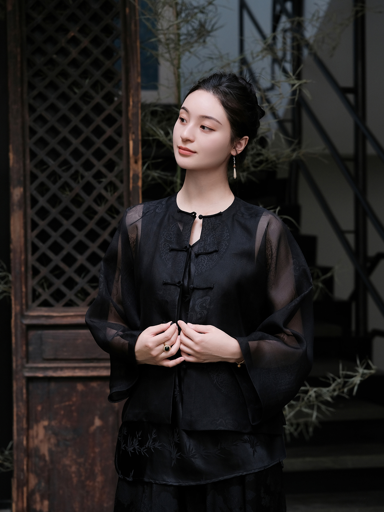 盛唐牡丹 |真丝提花梅兰竹菊外套/可正反两穿
