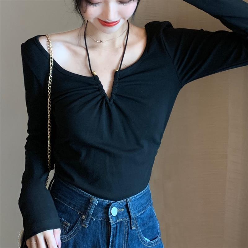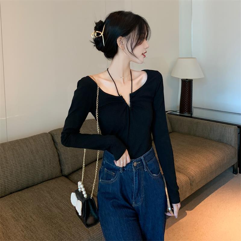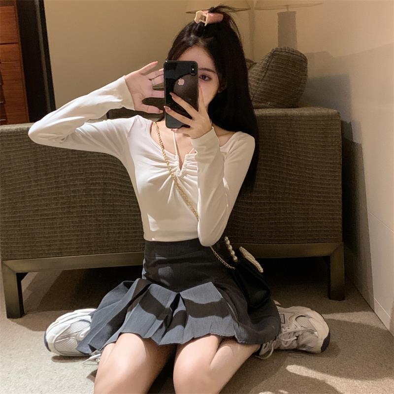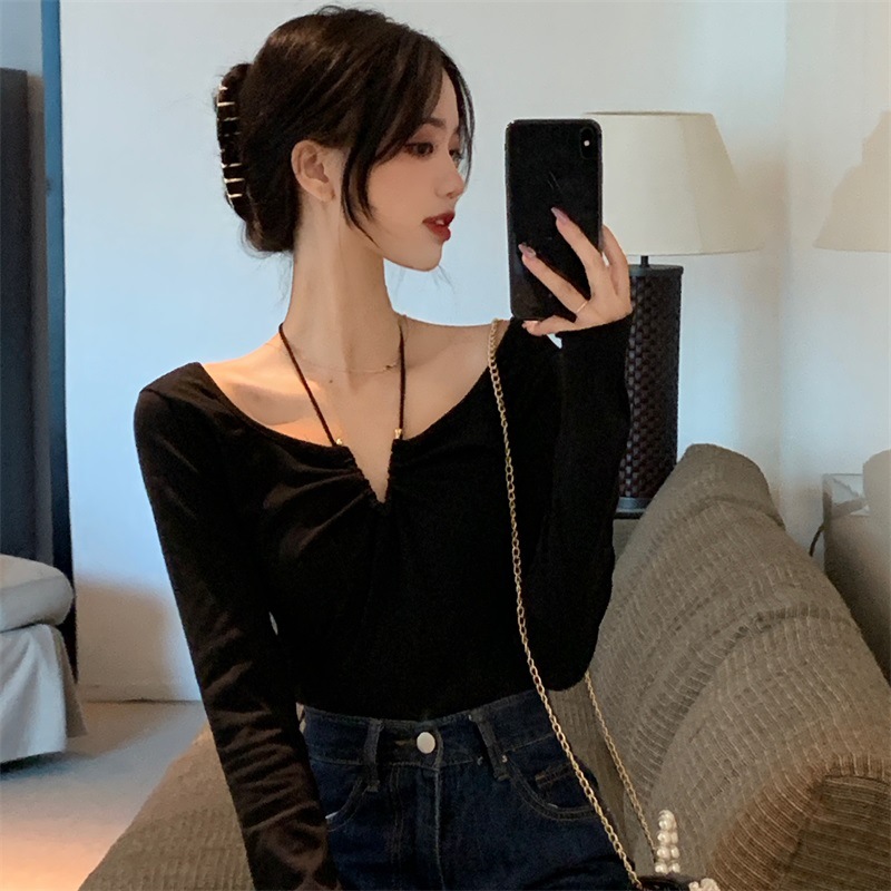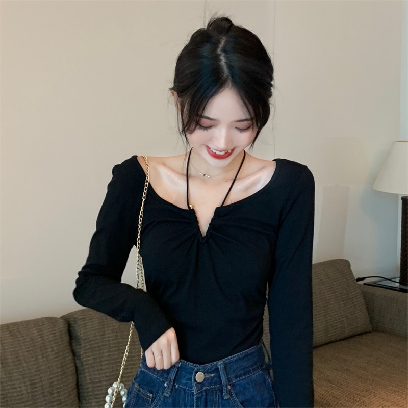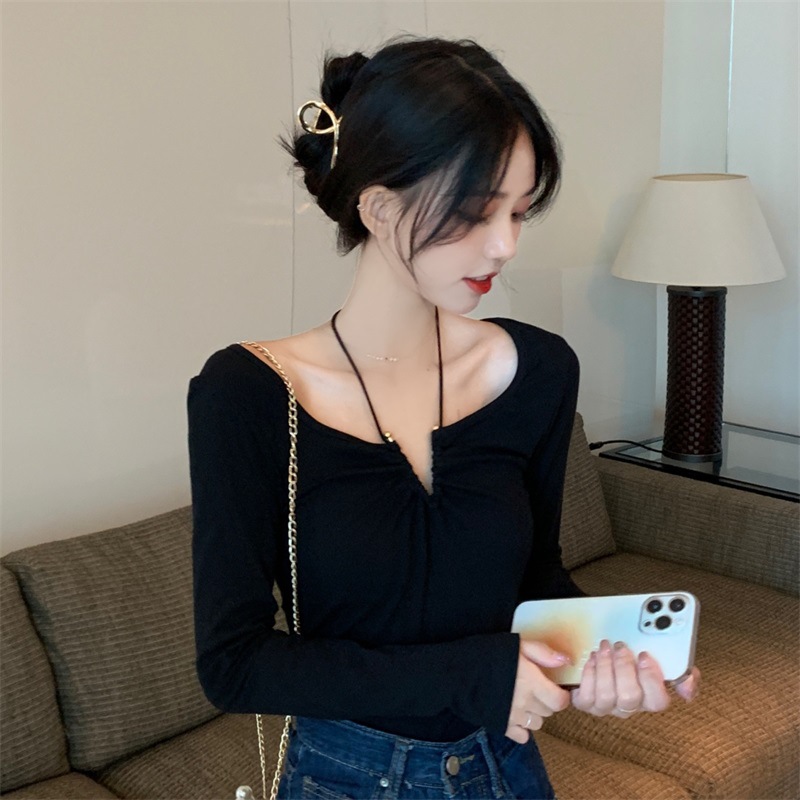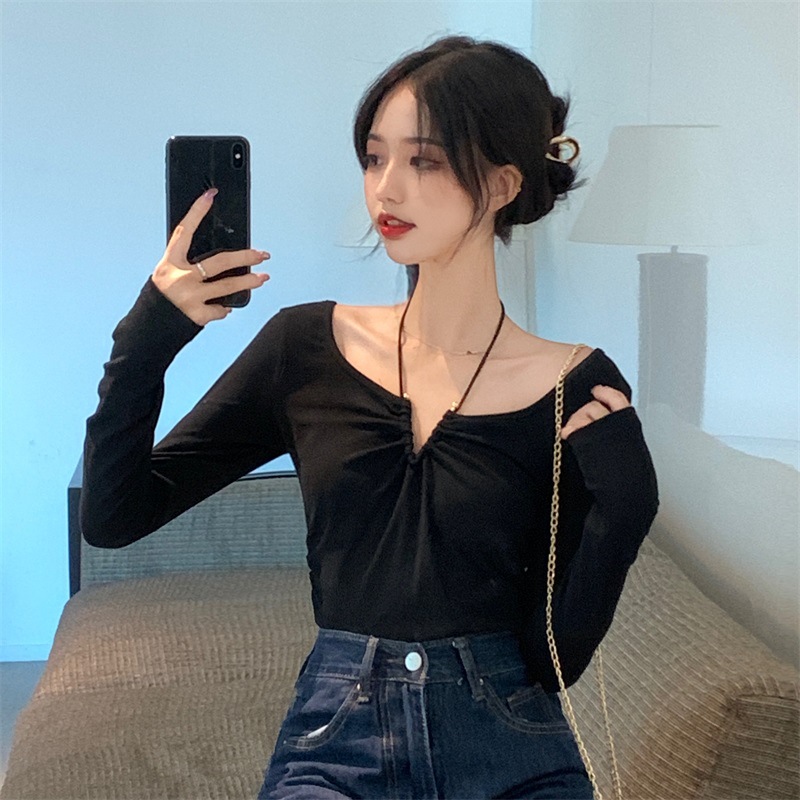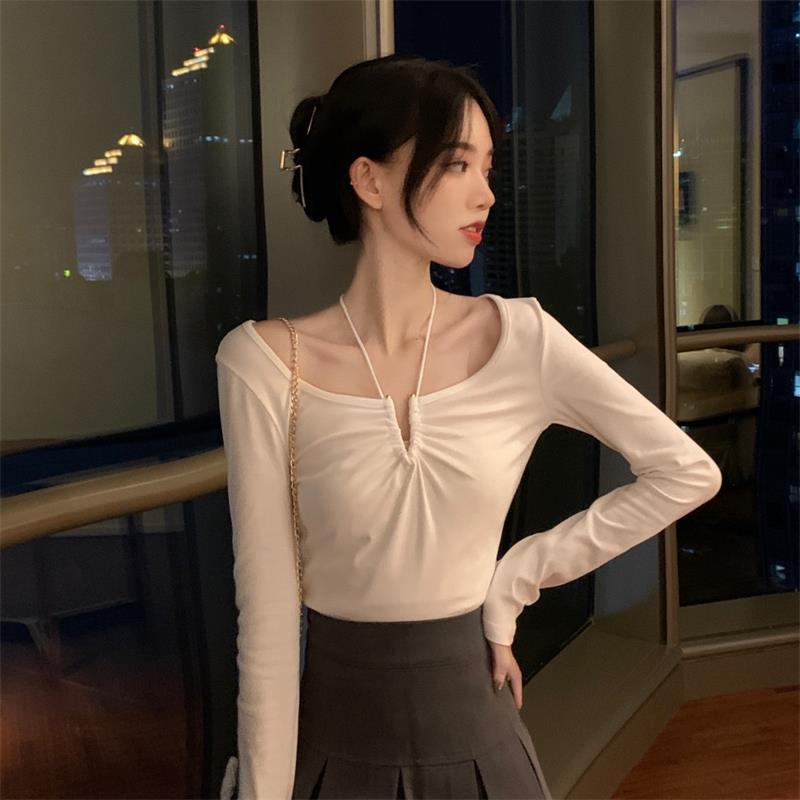 【性感纯欲❗️新款显瘦辣妹T恤】修身显瘦,设计感露锁骨,超美打底长袖女打底上衣女