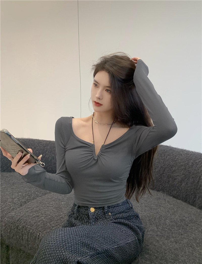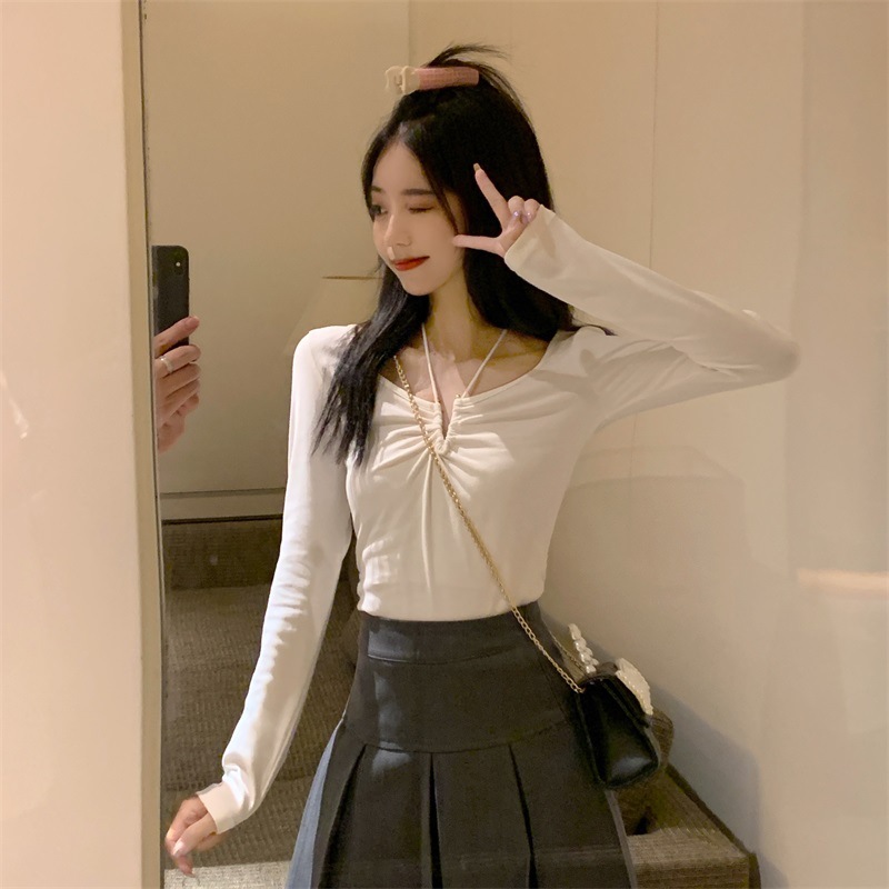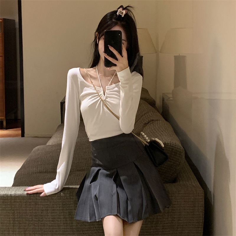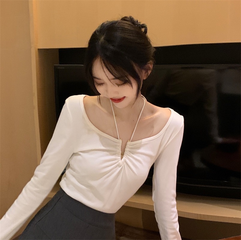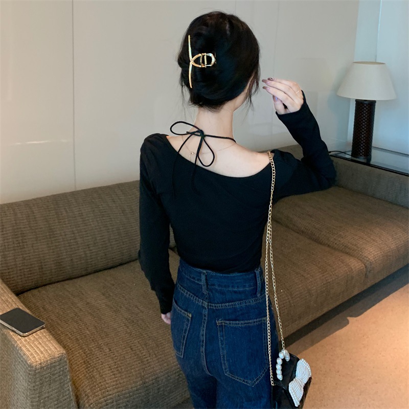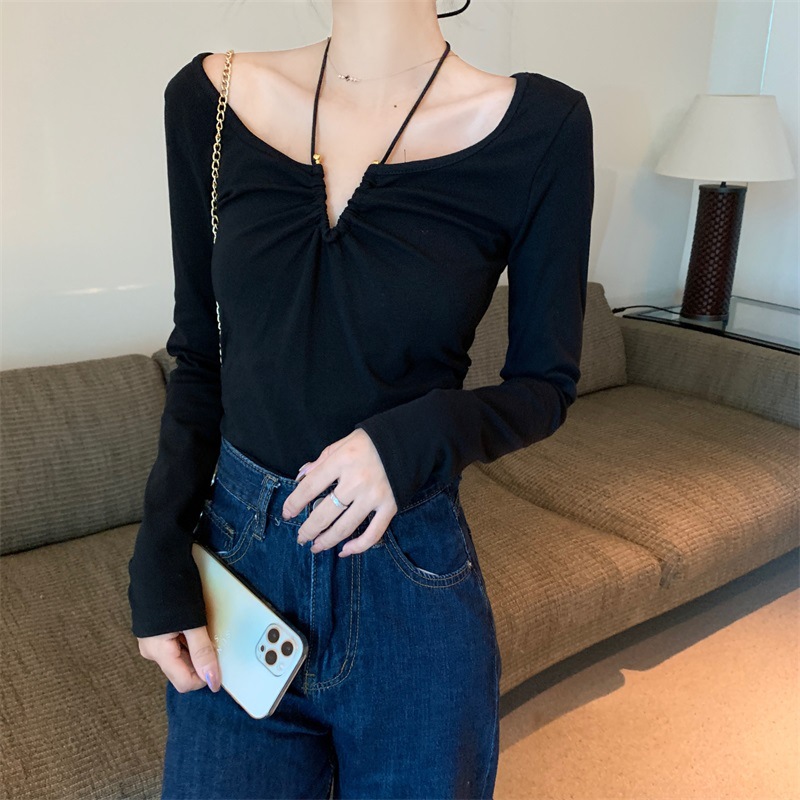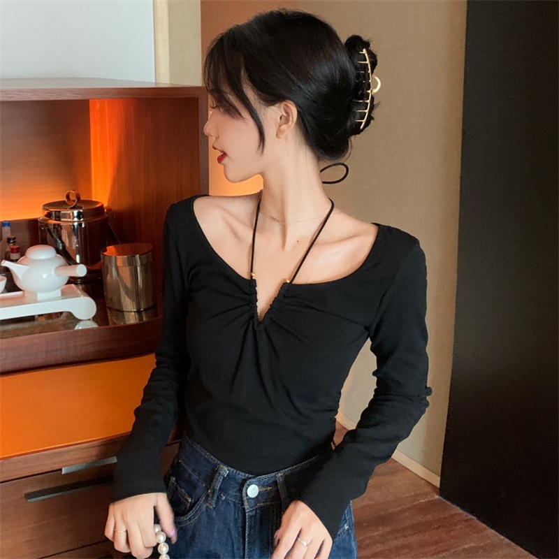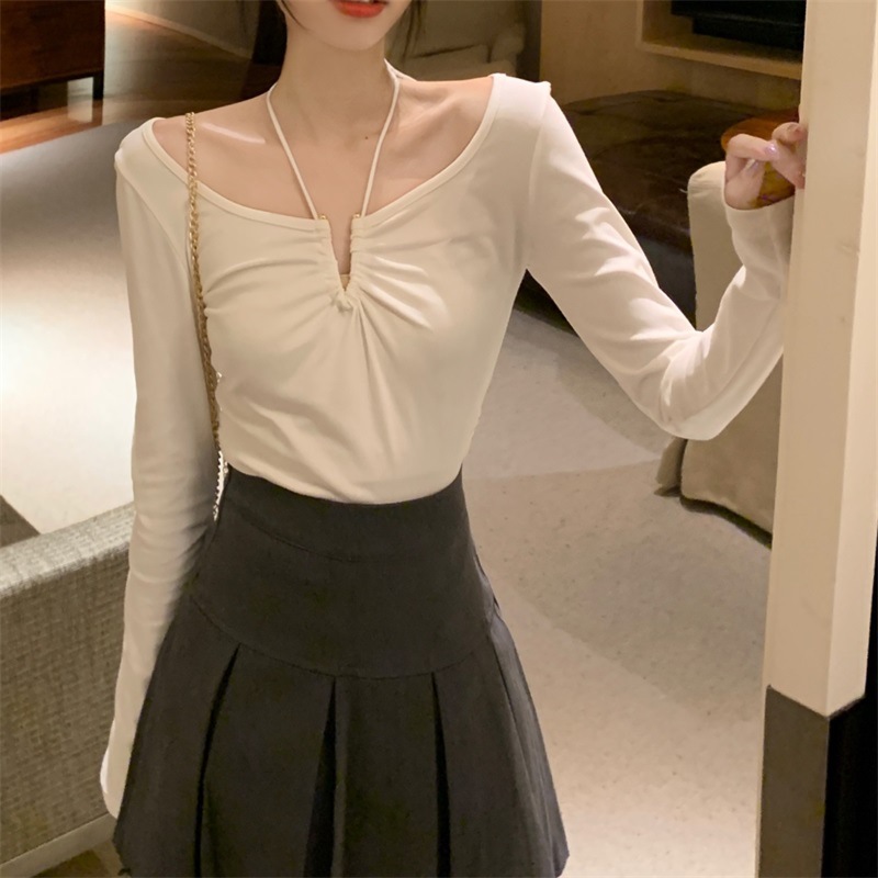 【性感纯欲❗️新款显瘦辣妹T恤】修身显瘦,设计感露锁骨,超美打底长袖女打底上衣女