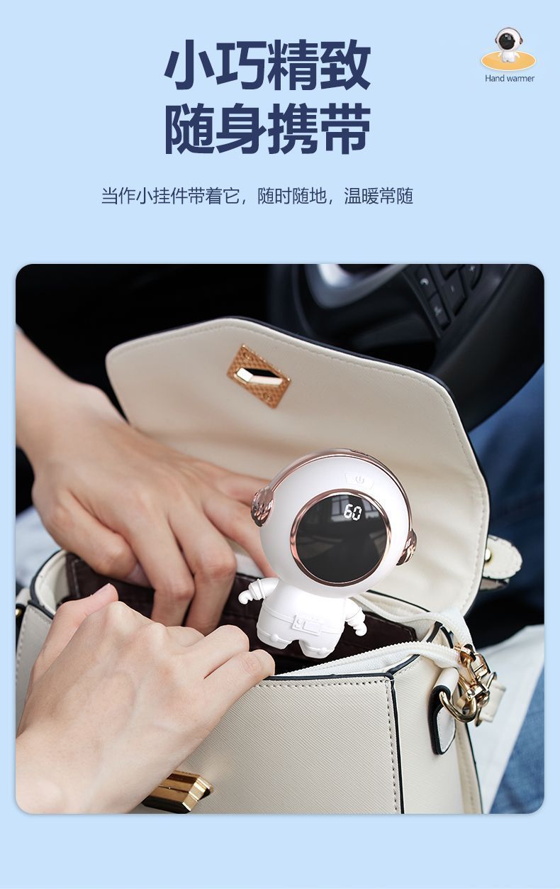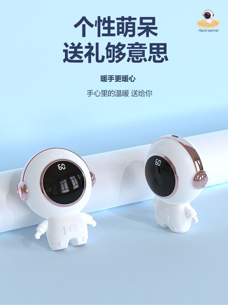【能数显的暖手宝!让你温暖整个寒冬】太空人暖手宝,USB充电迷你超便携,防爆暖宝宝,比暖水袋更好用!迷你宇航员卡通挂件